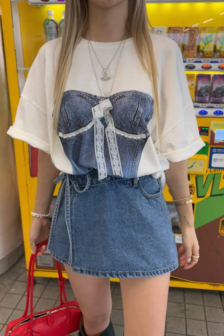 If印刷牛仔馬甲上衣