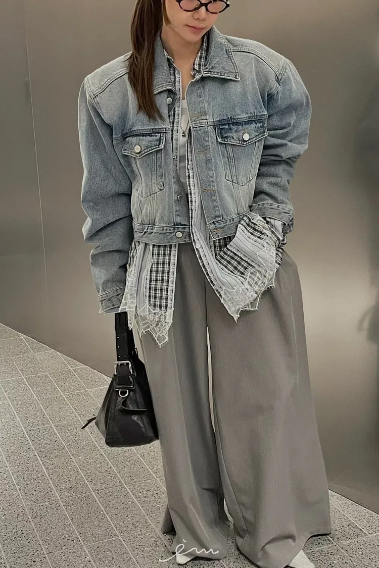 下接蕾絲超美格紋條紋襯衫(墊肩可拆)