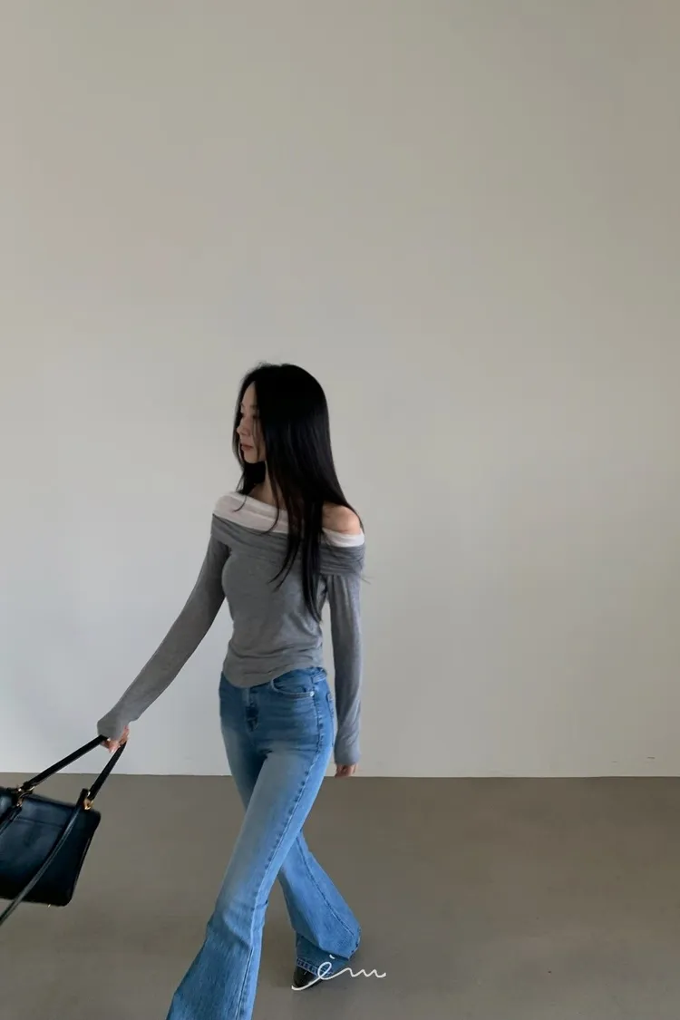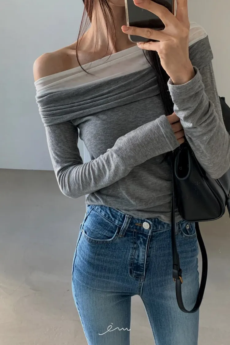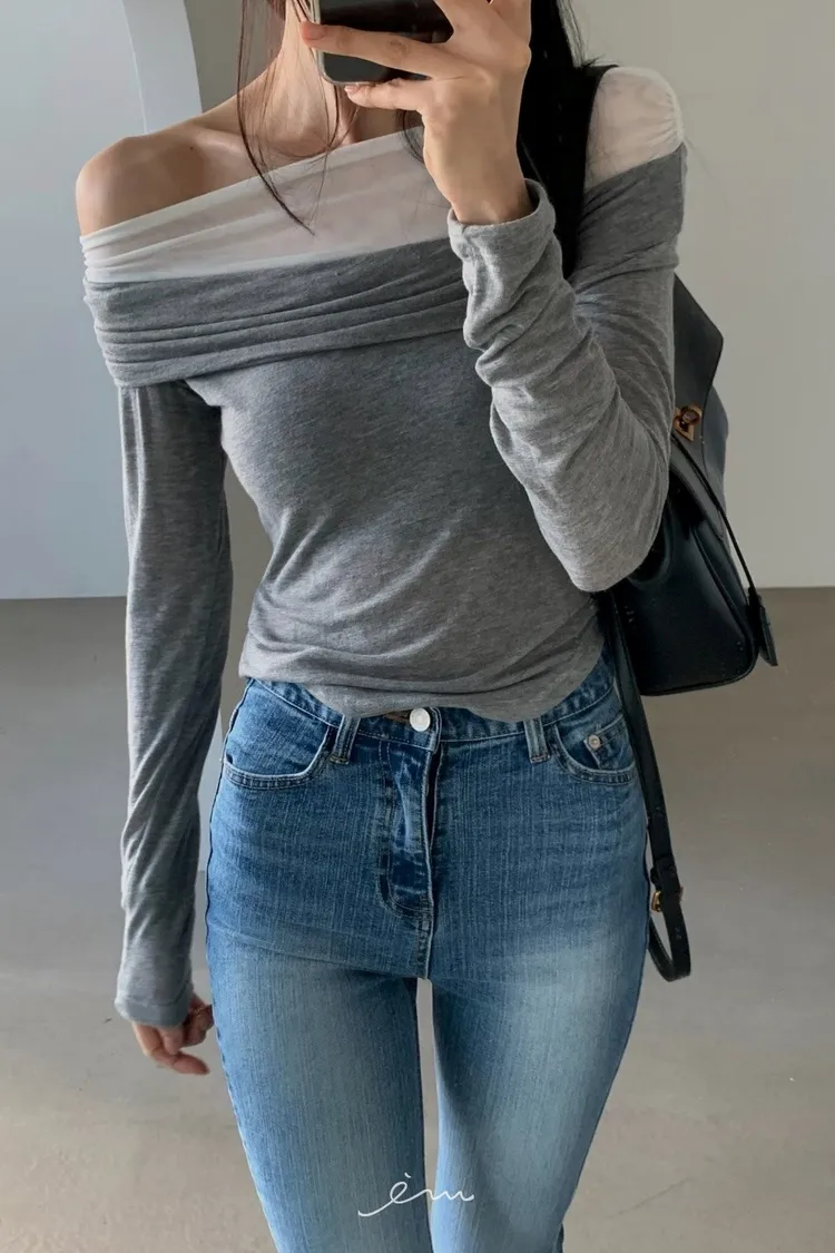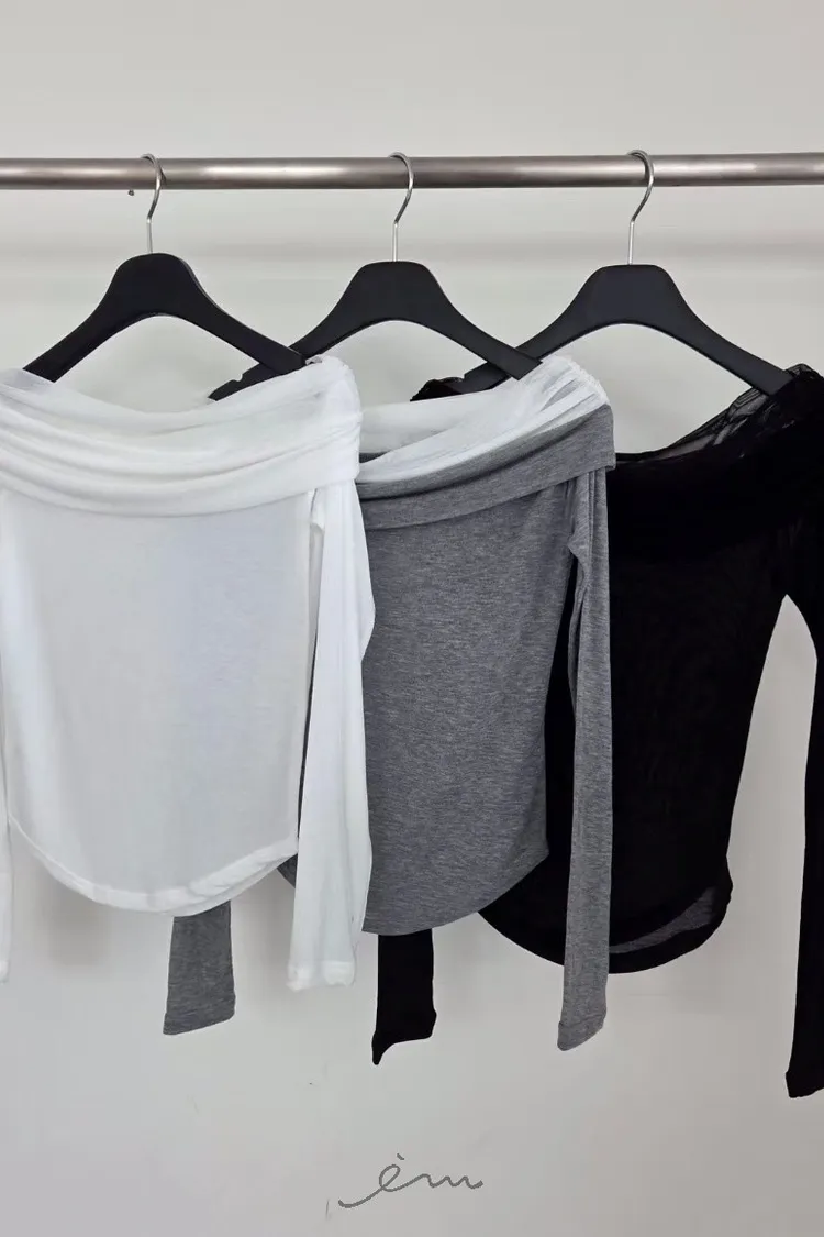 VER一字領網紗層次上衣