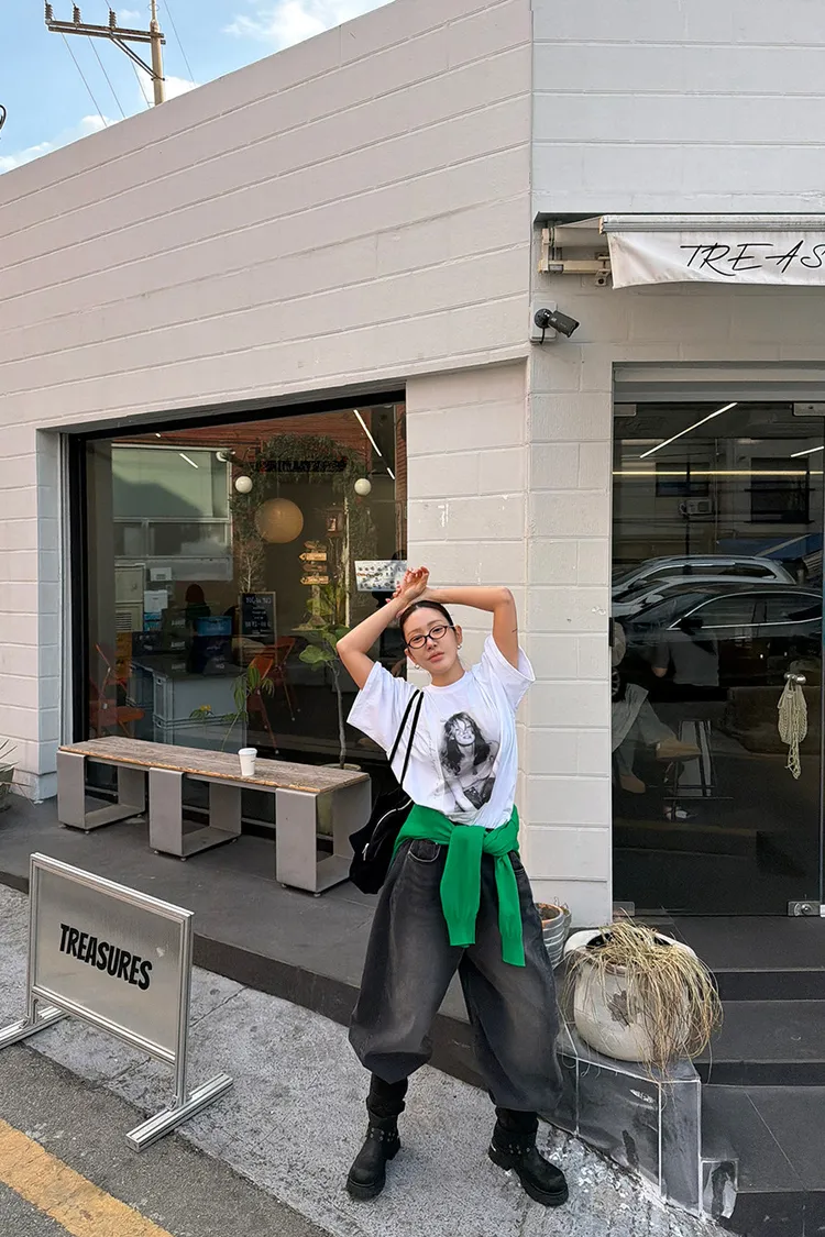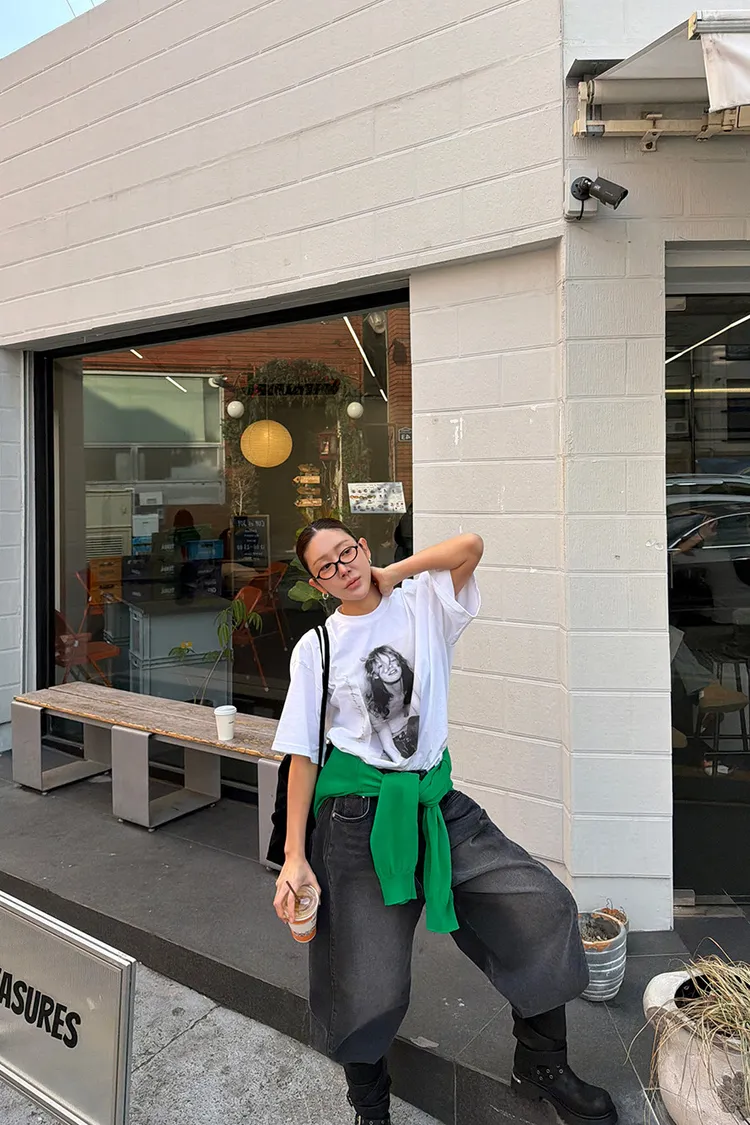 復古人像落肩上衣