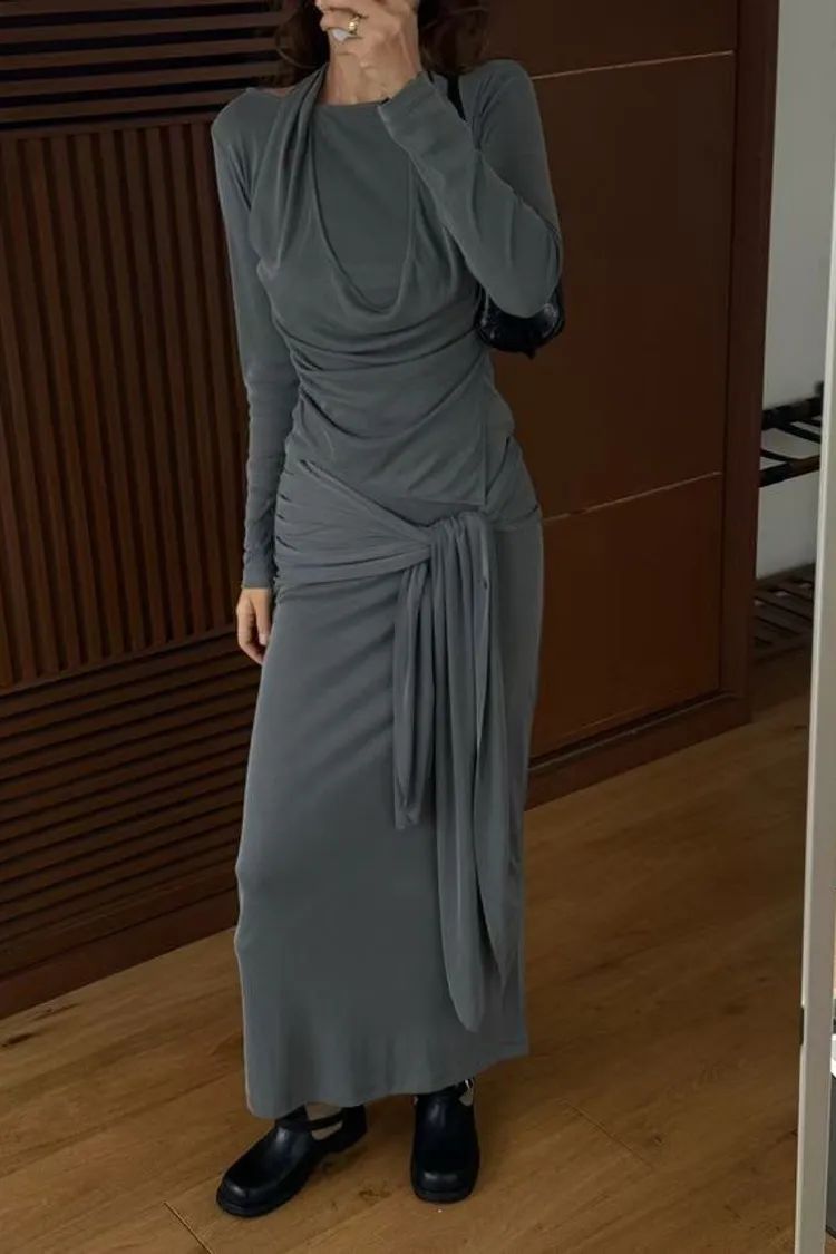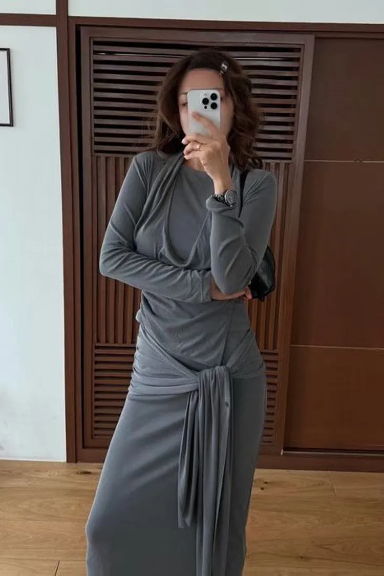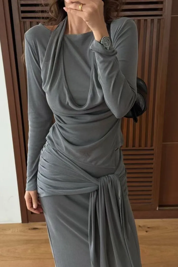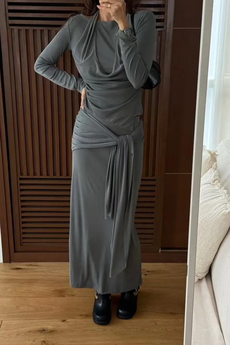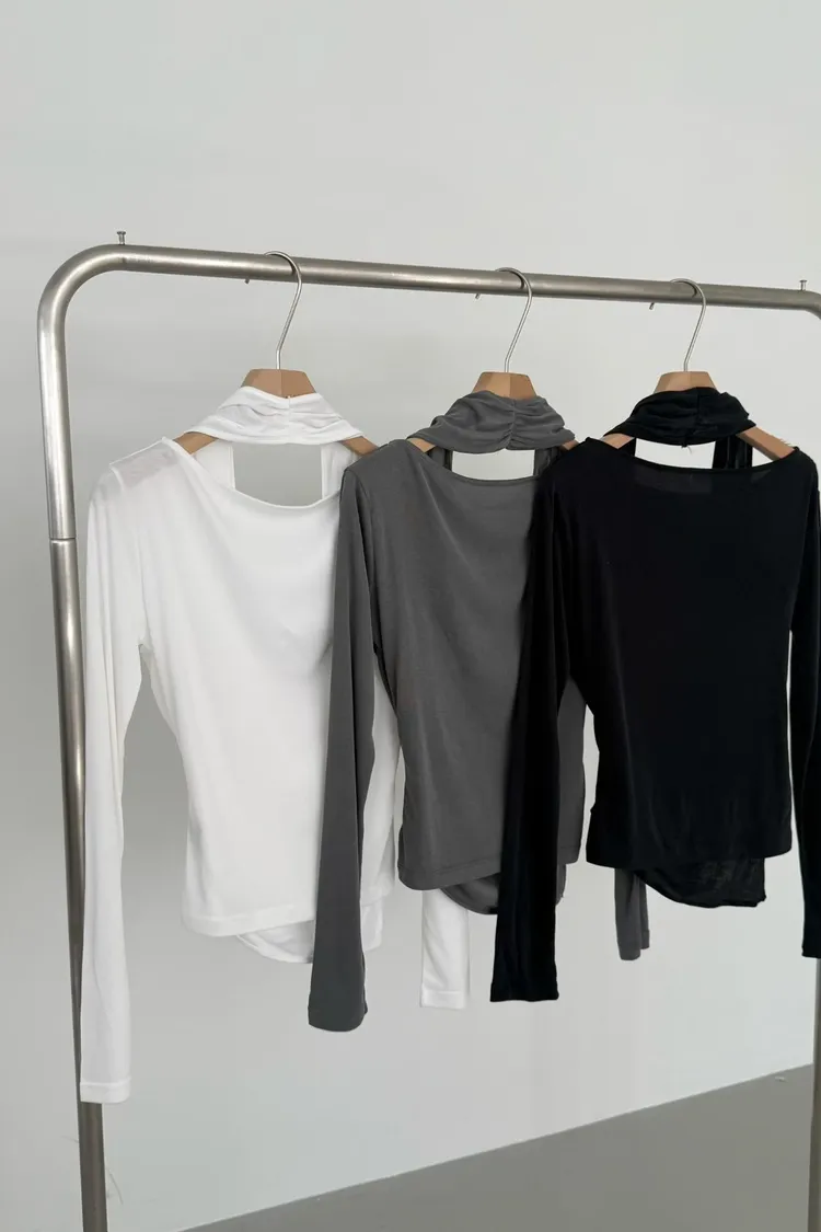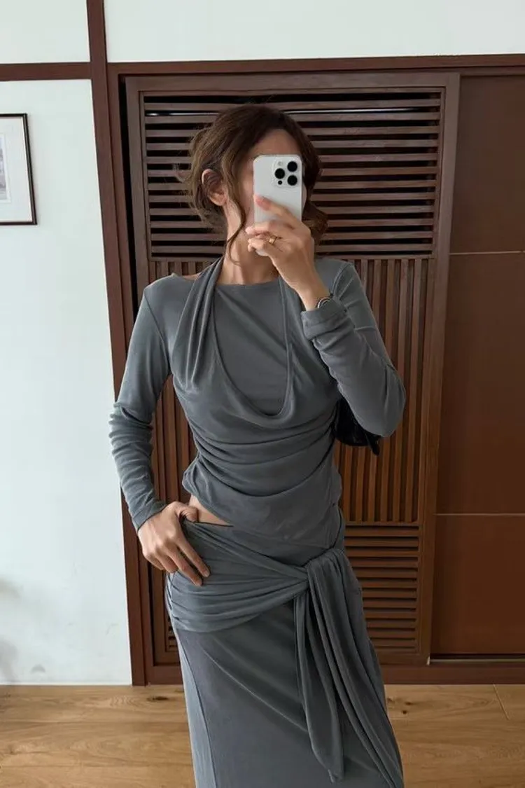 韓女鬆弛感兩件式掛脖抓皺上衣
