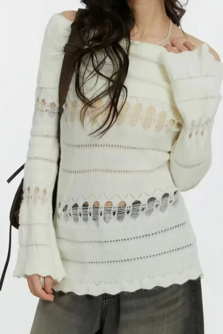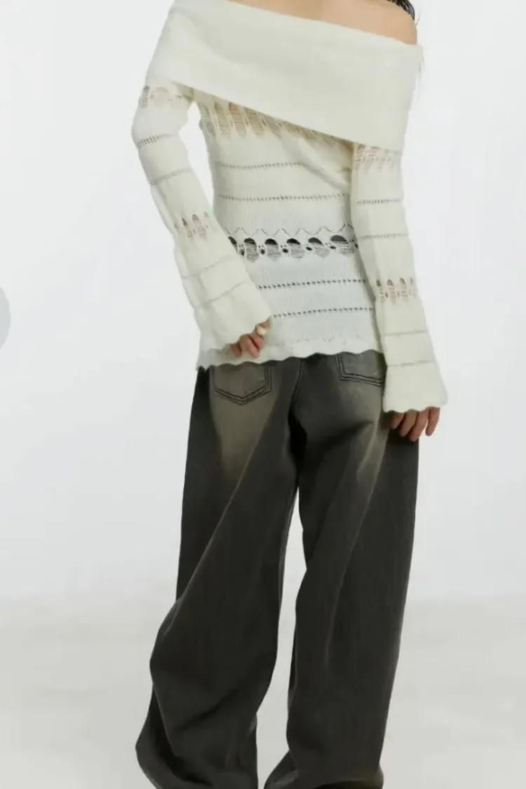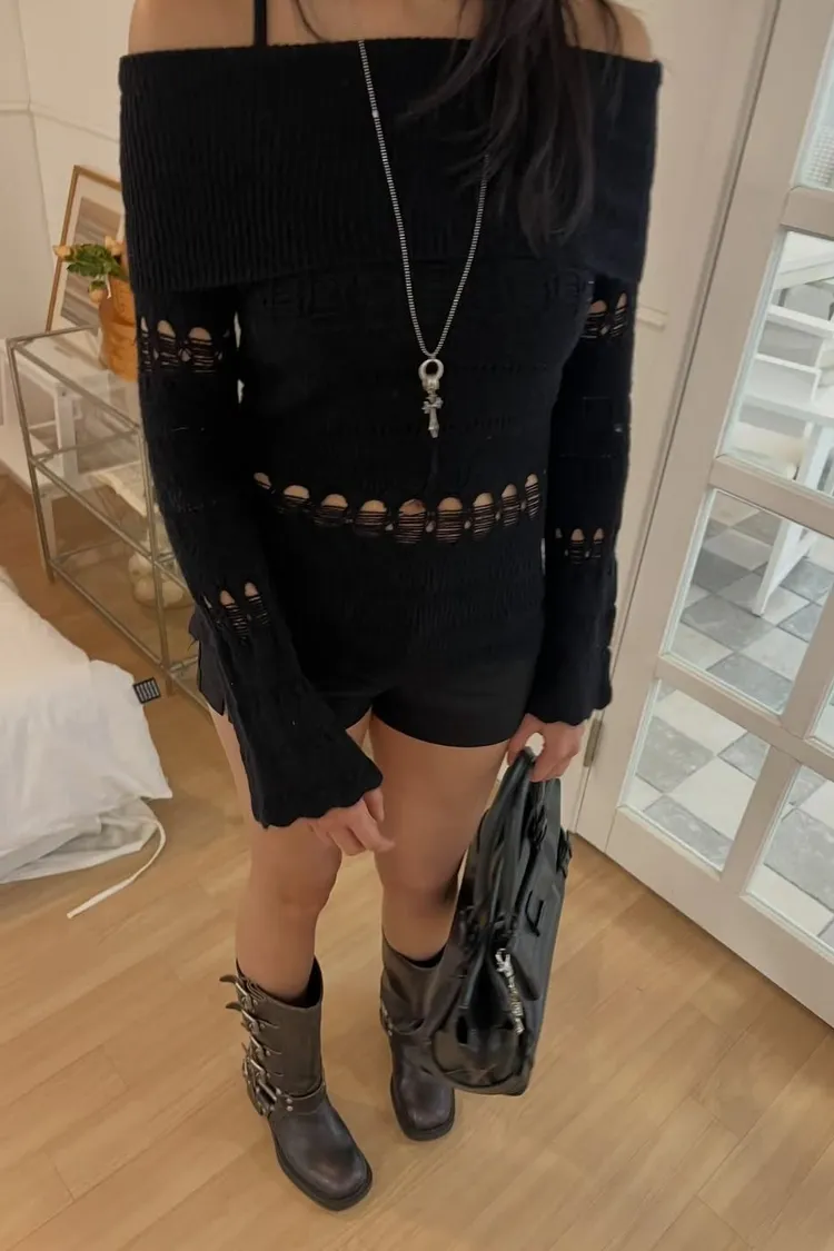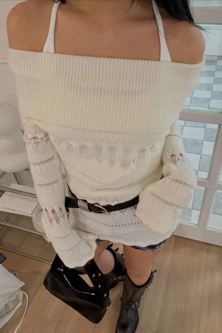 破壞感一字領上衣