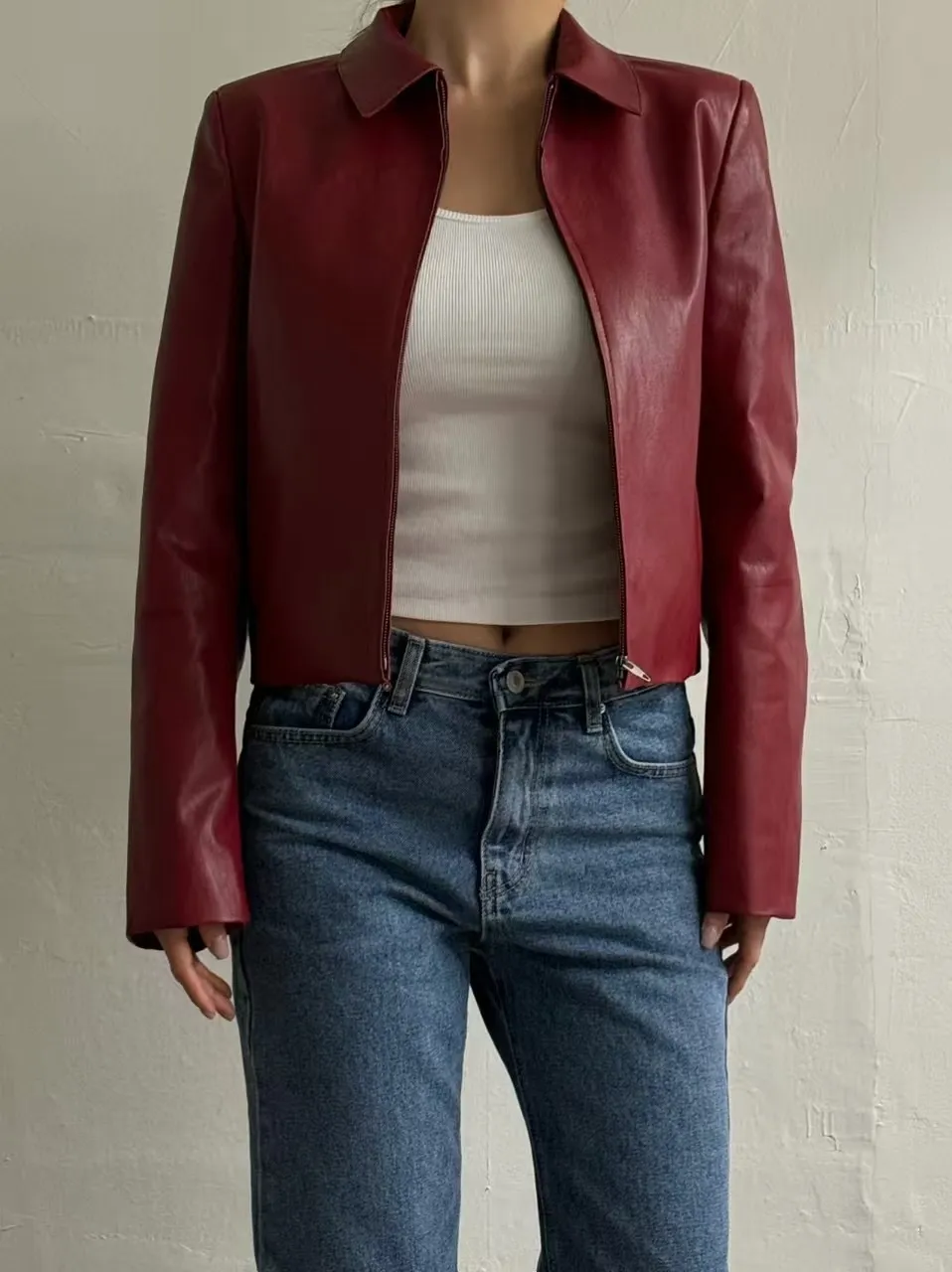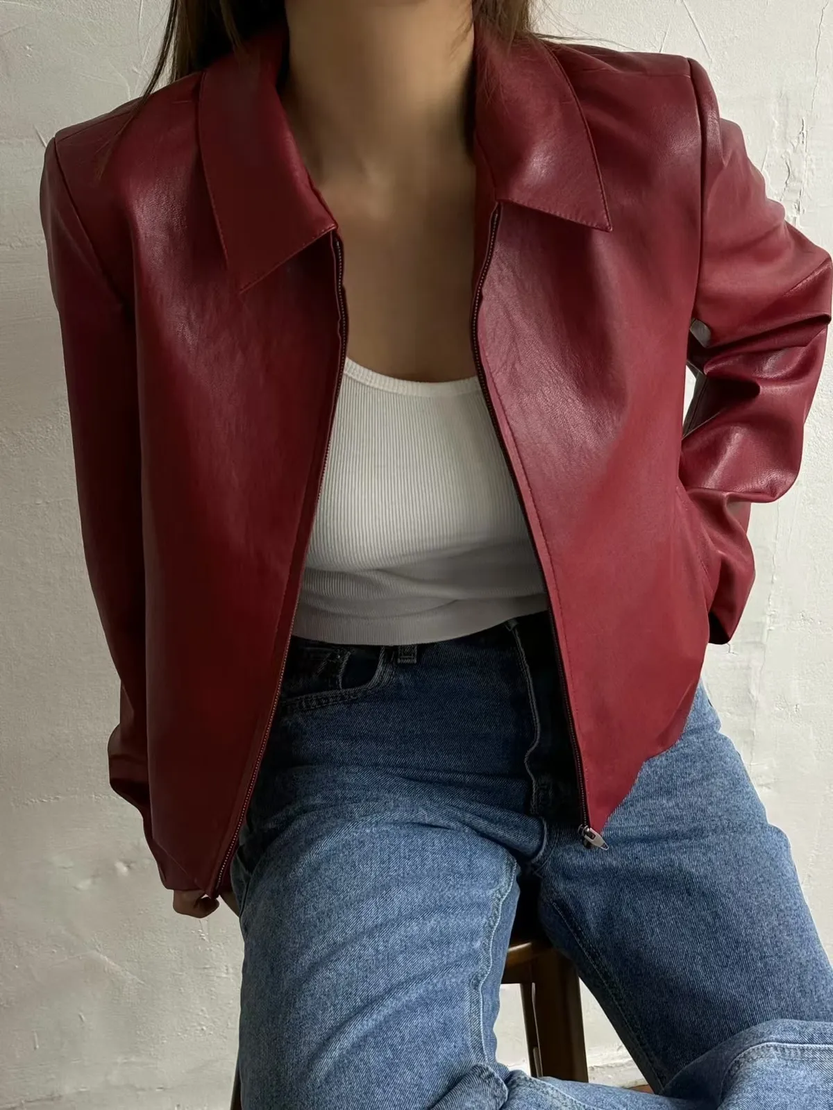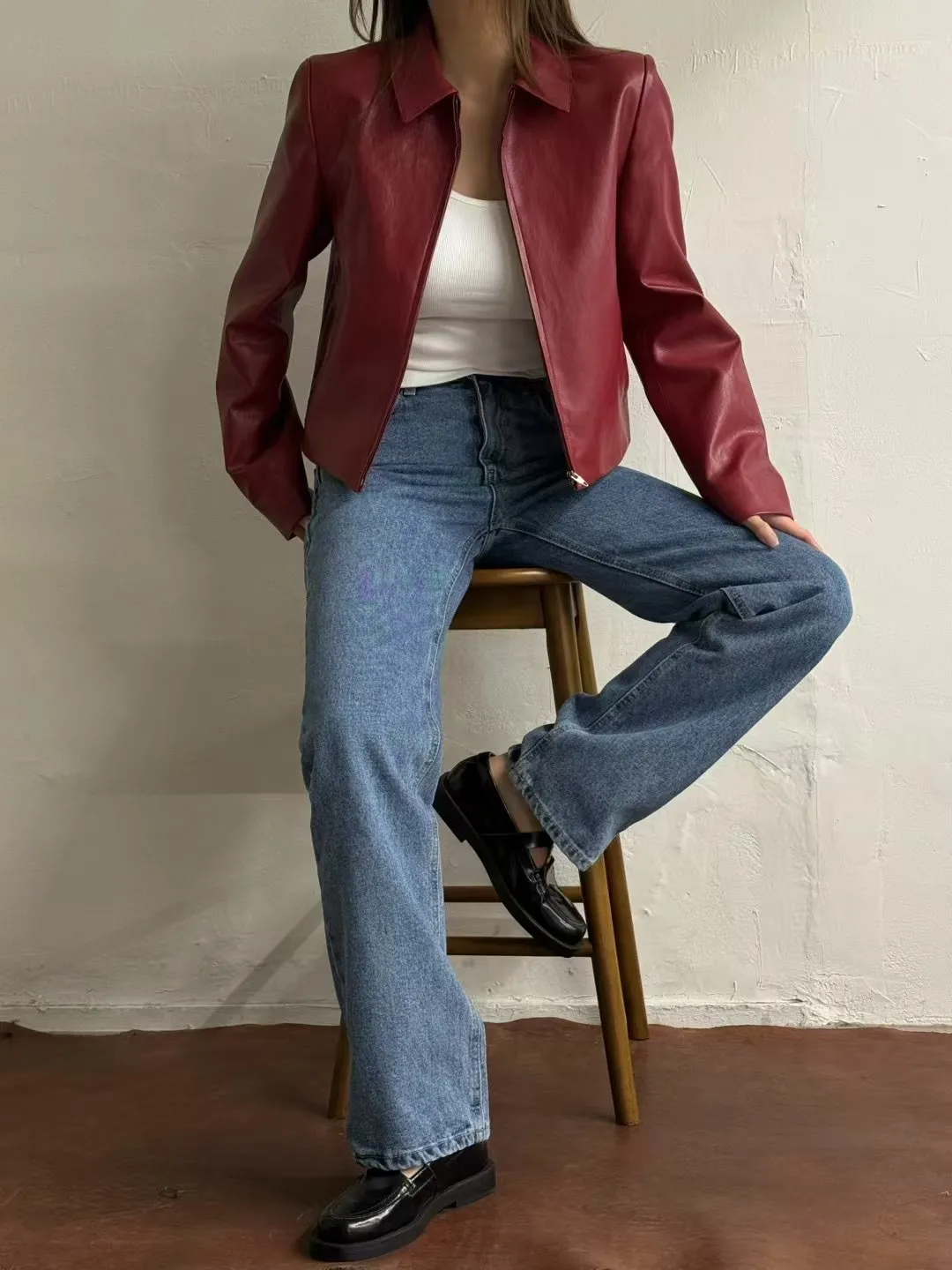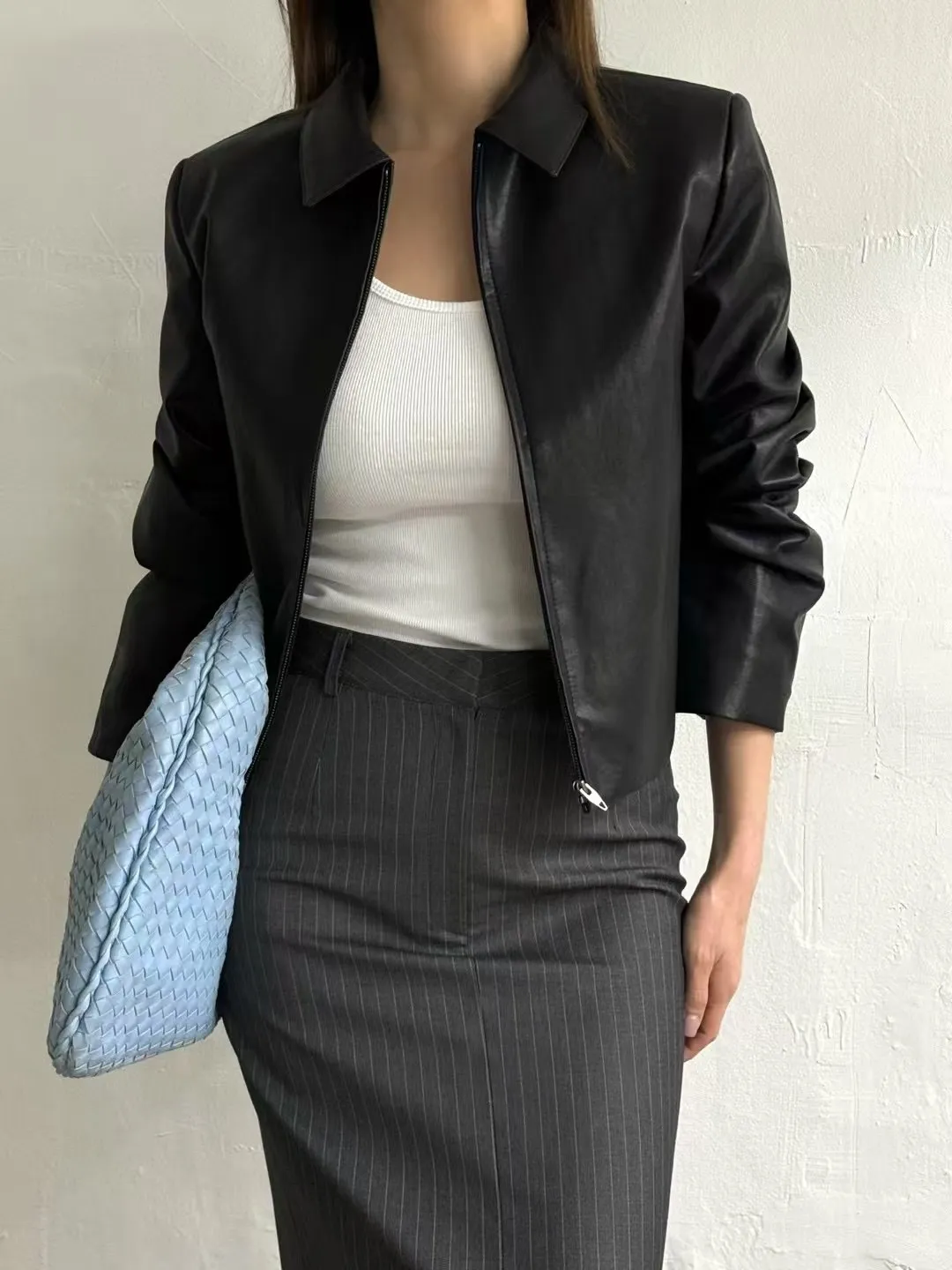 翻領皮革拉鍊外套(闆娘清單)