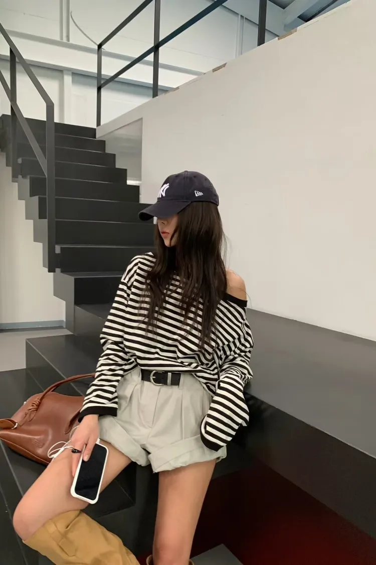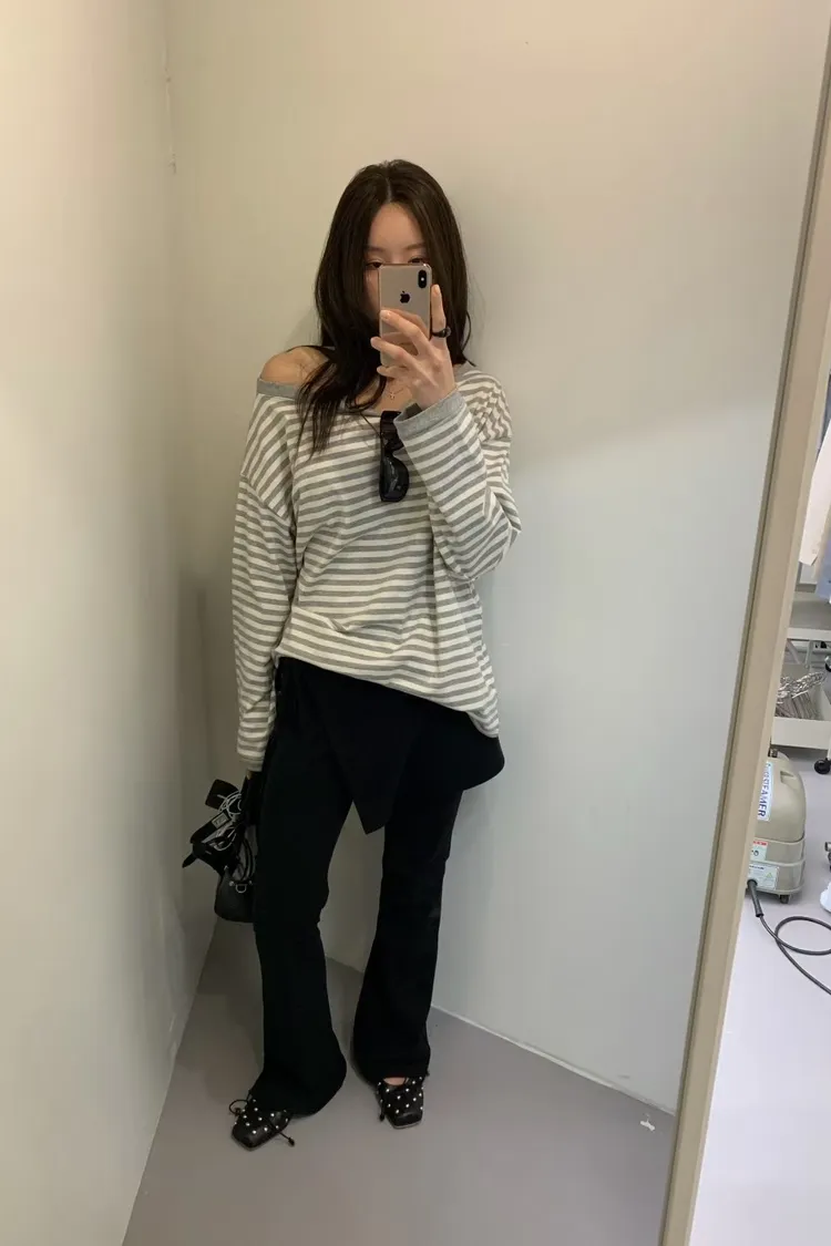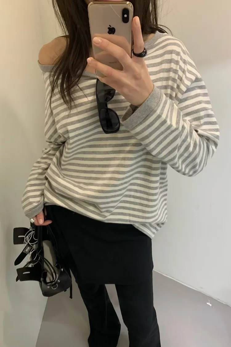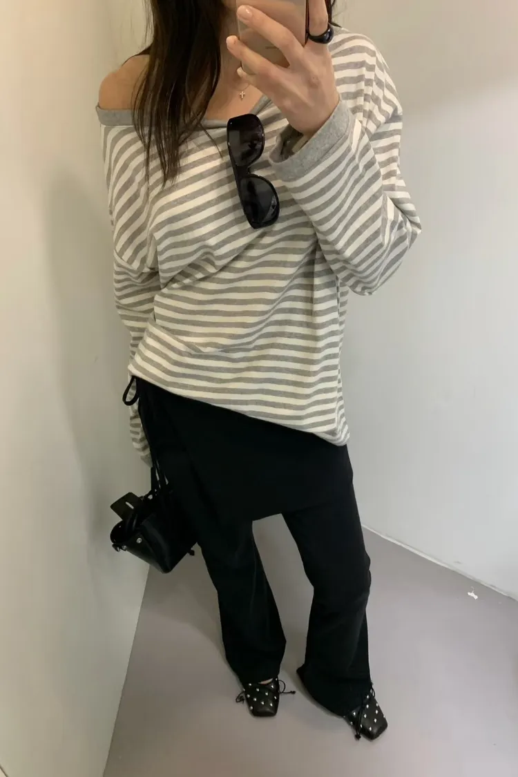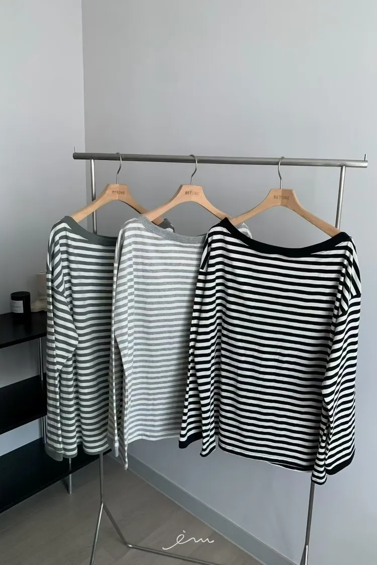 BE大圓領條紋上衣