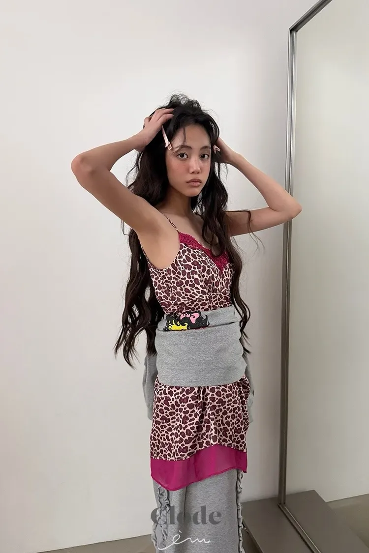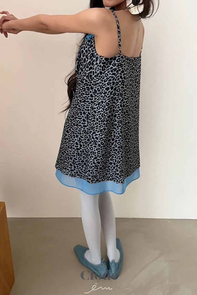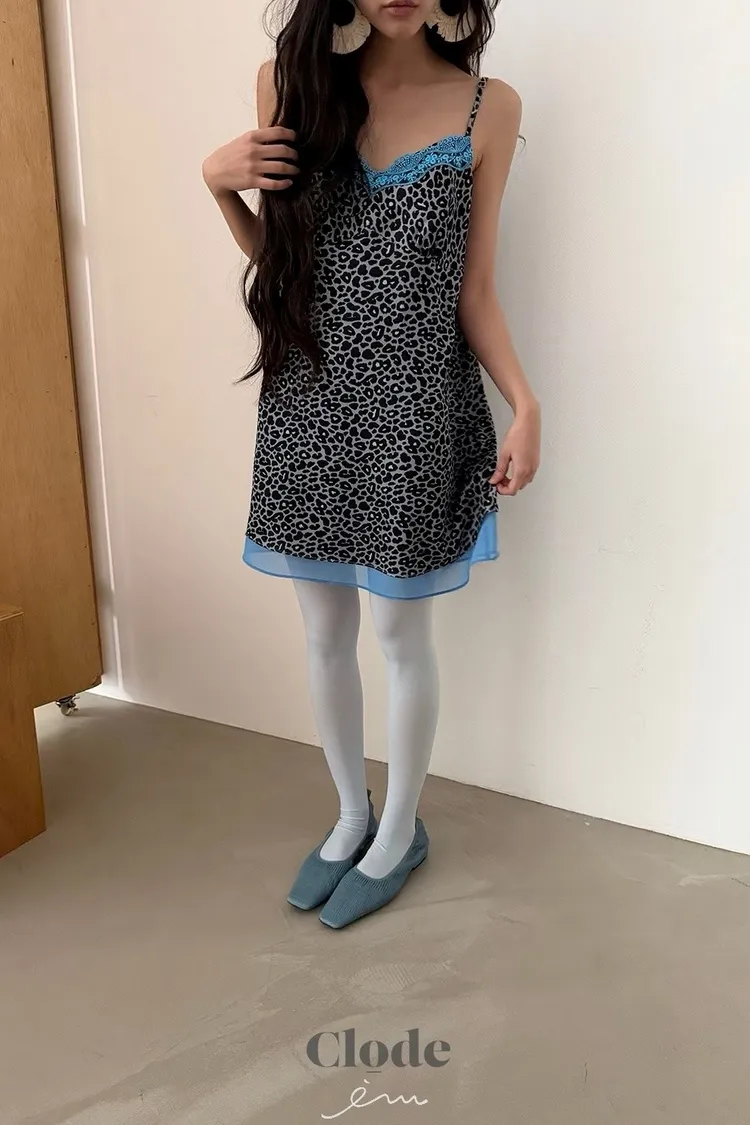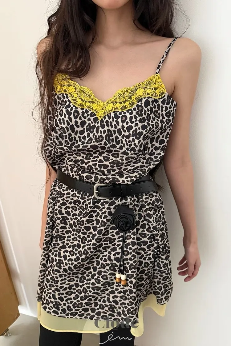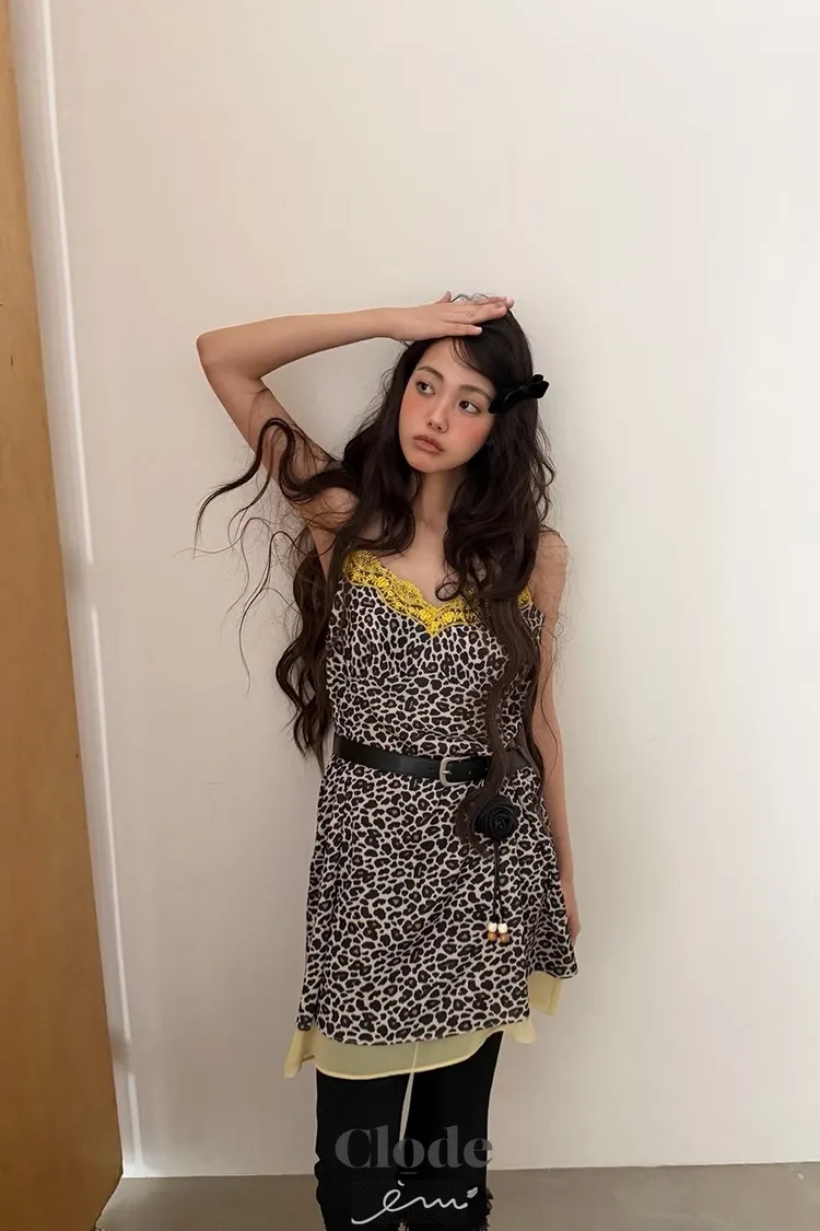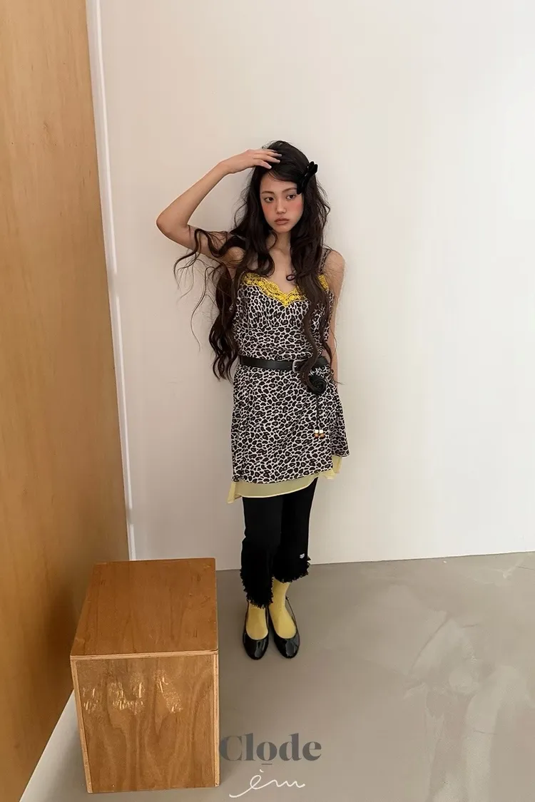 CL下拼紗蕾絲豹紋細肩背心