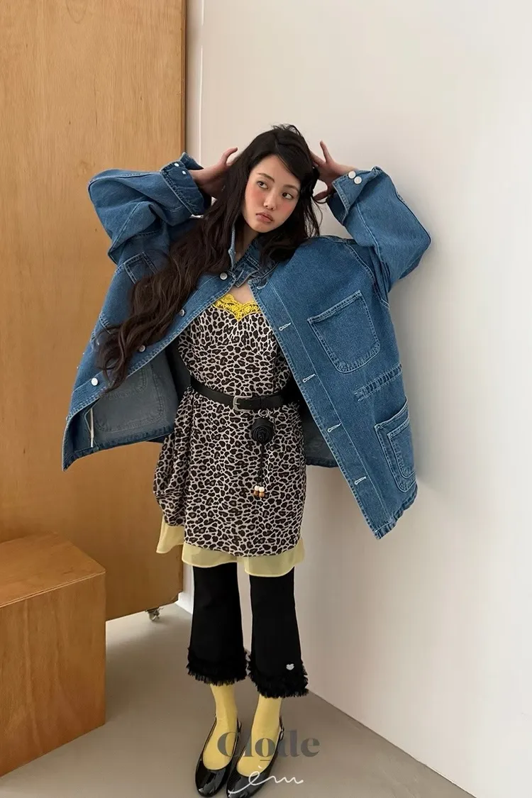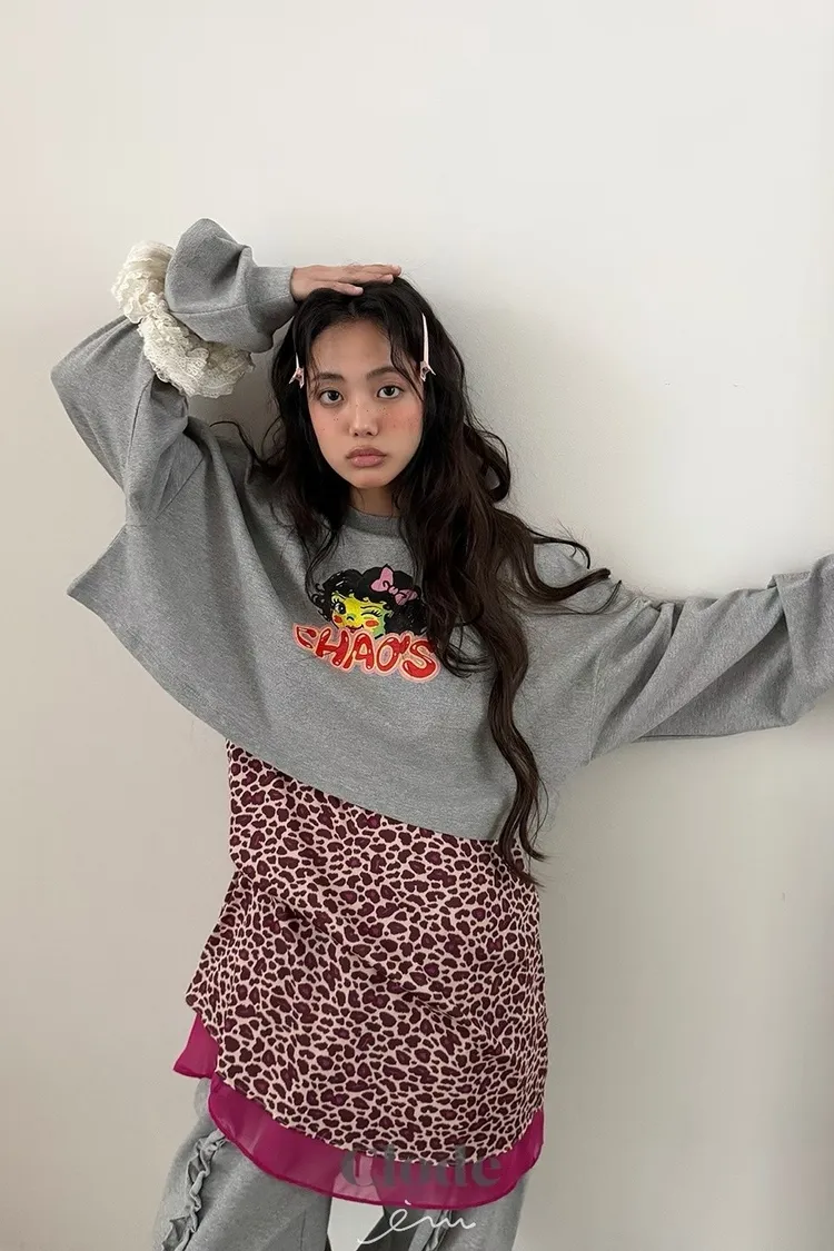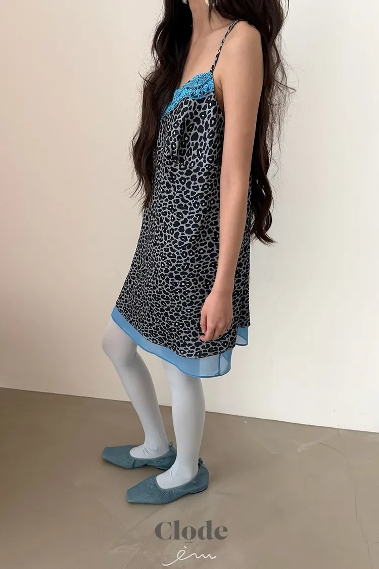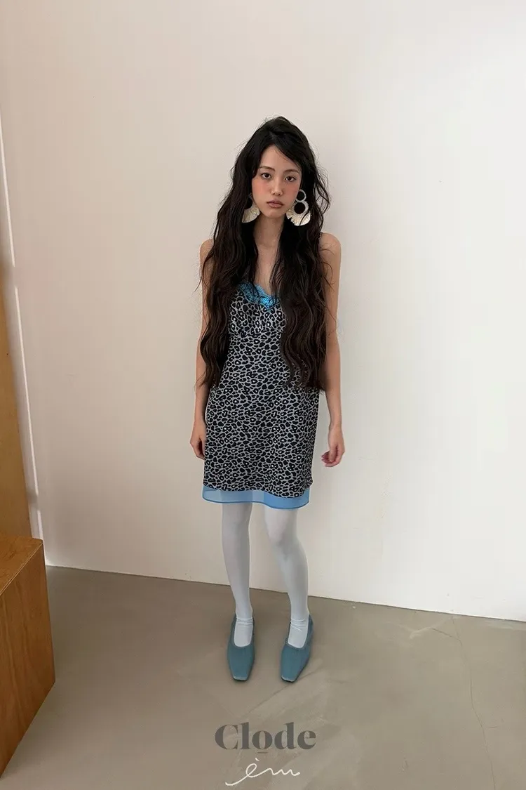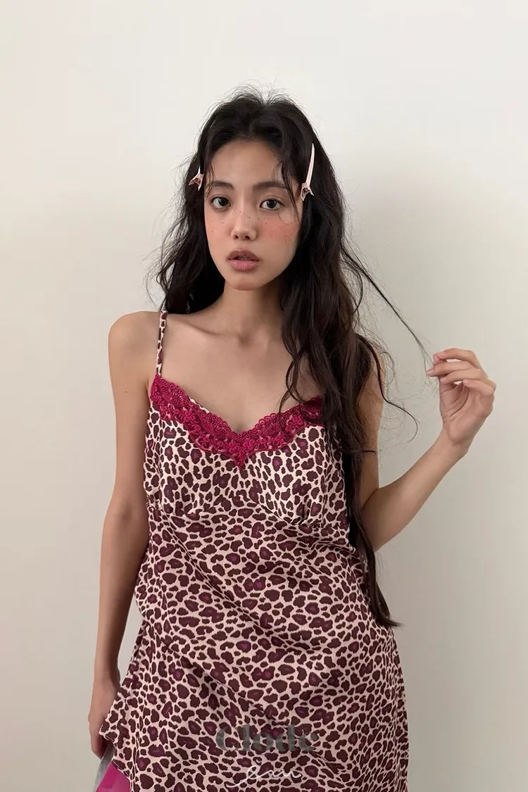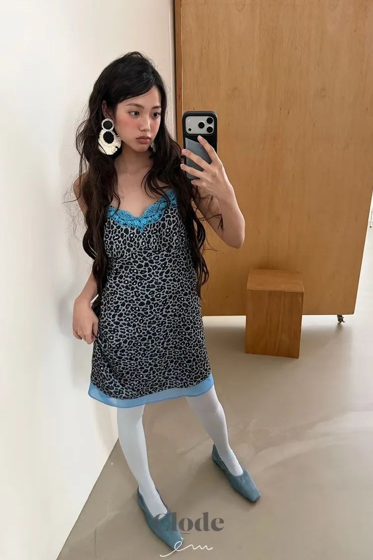 CL下拼紗蕾絲豹紋細肩背心