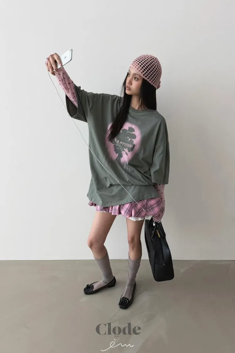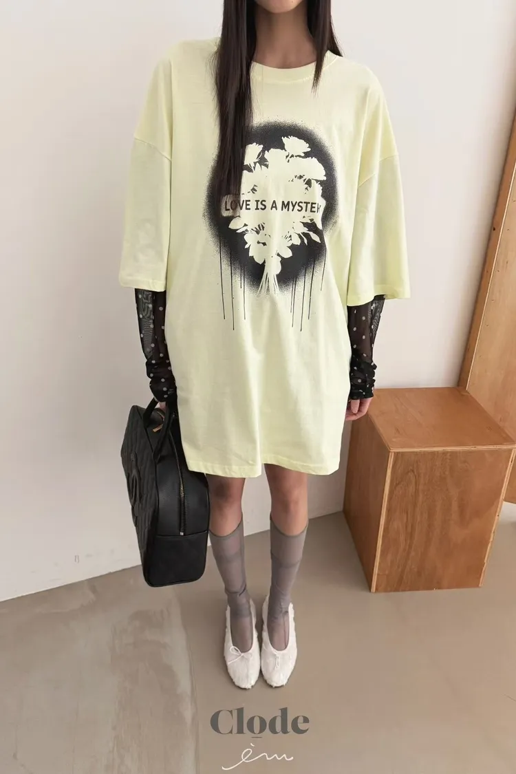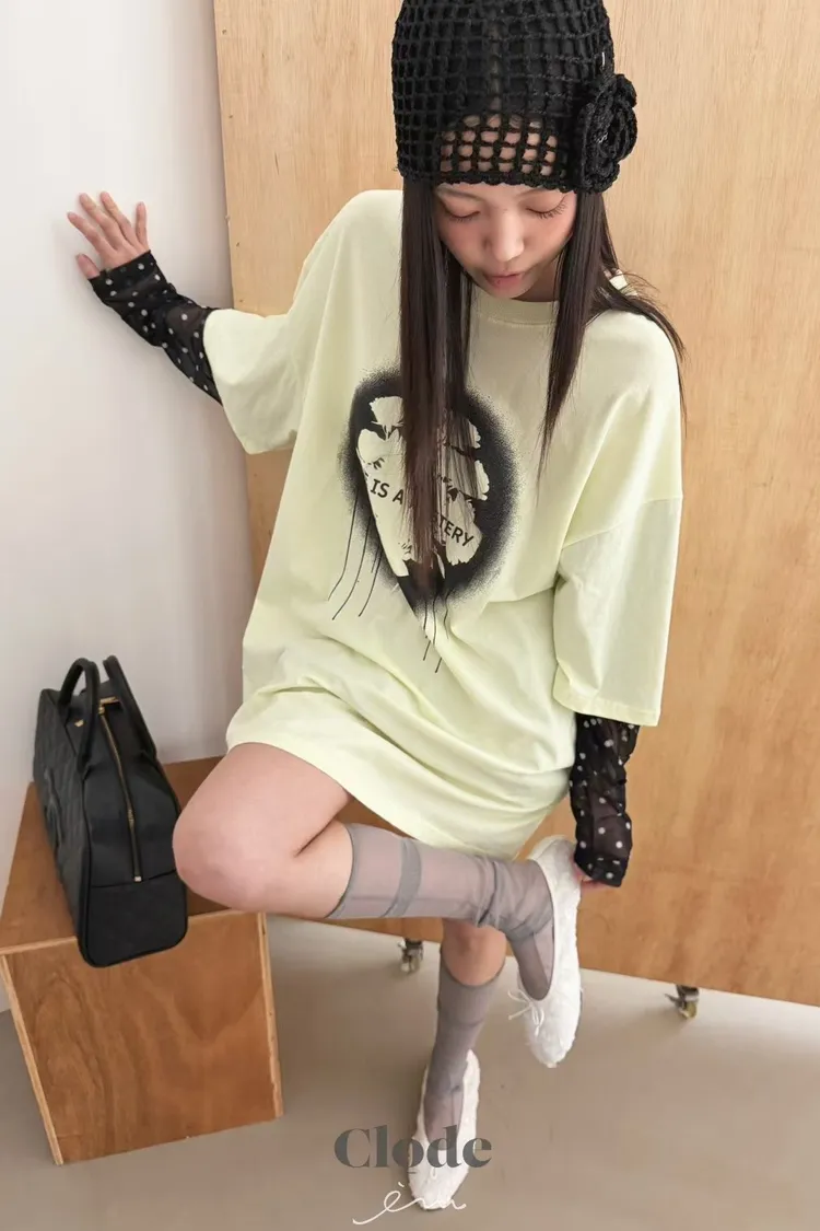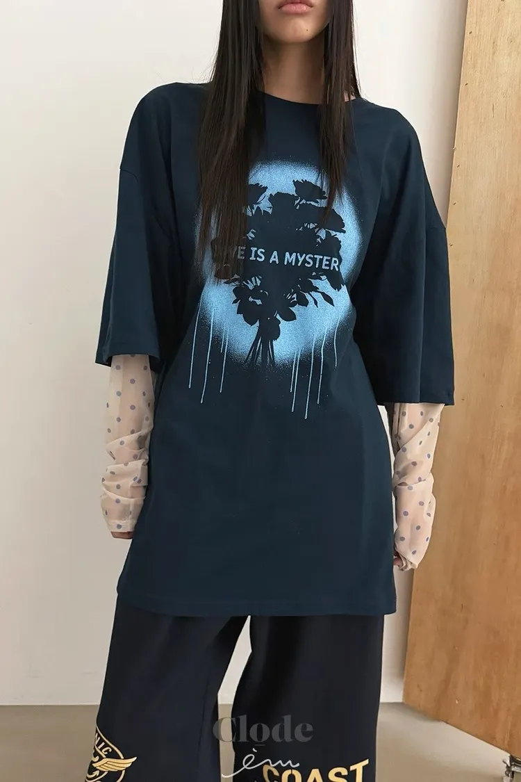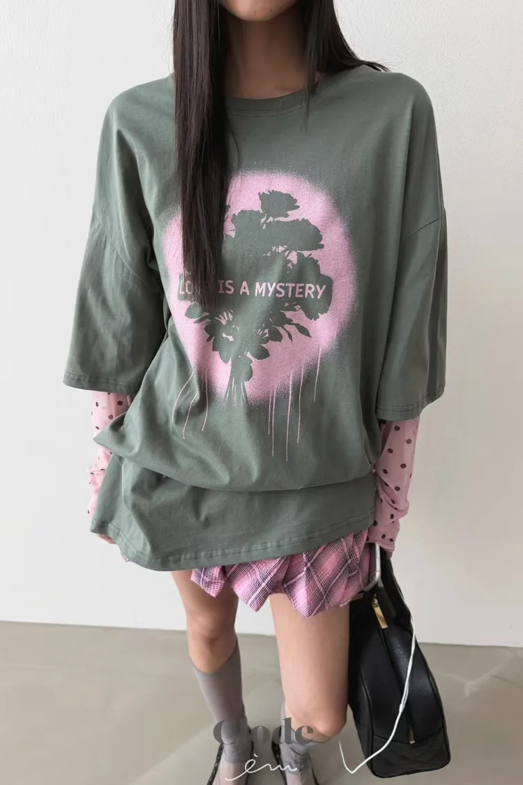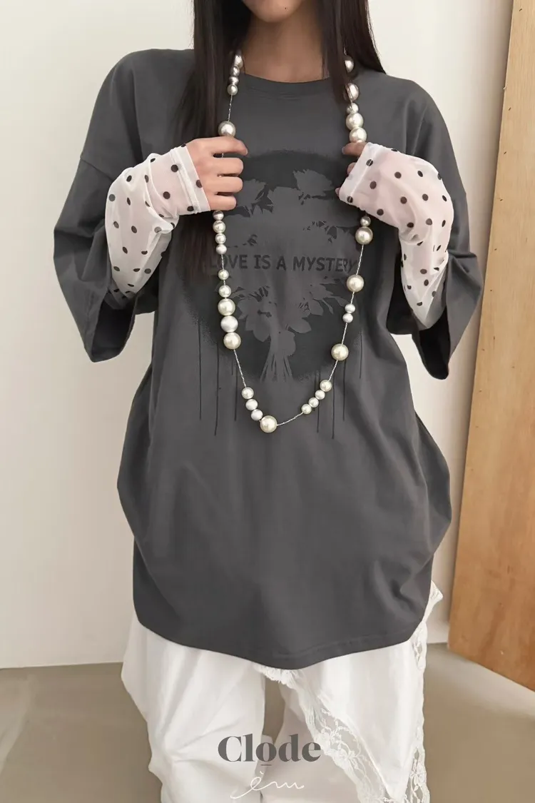 CL玫瑰噴漆感點點假兩件T
