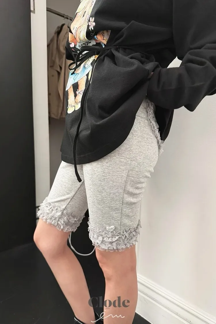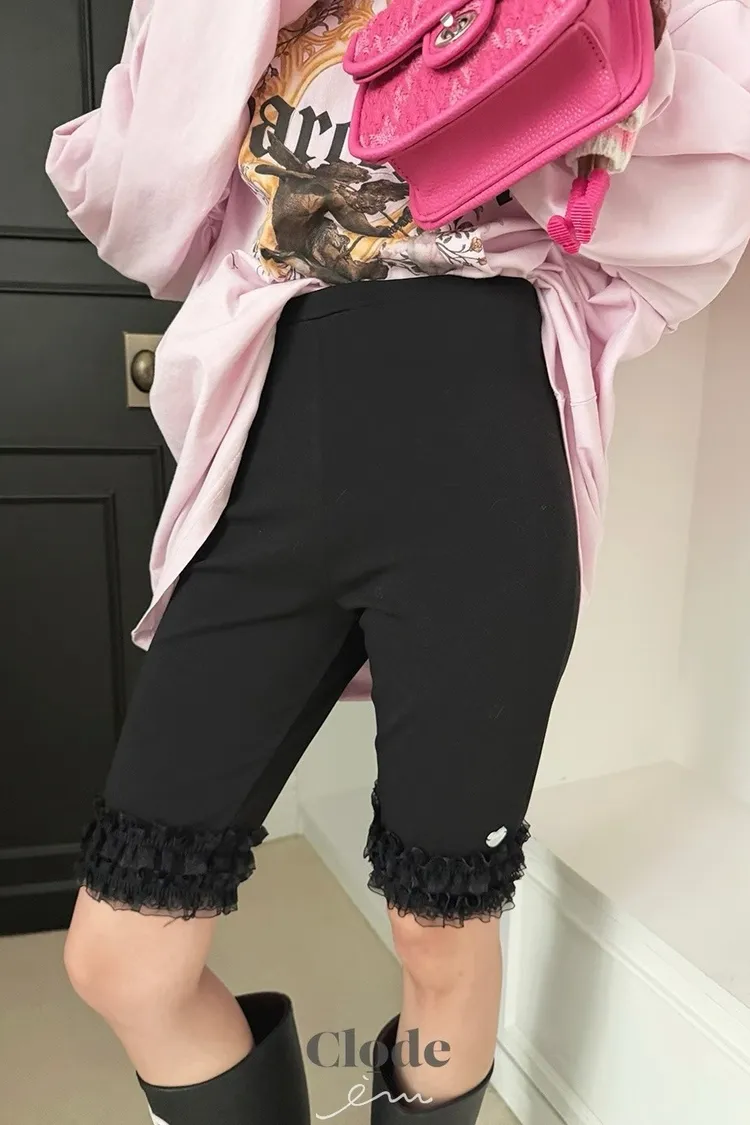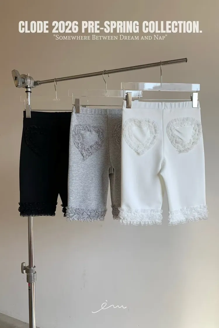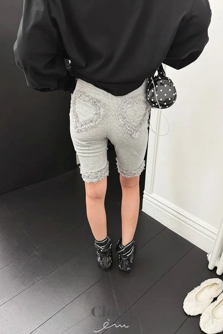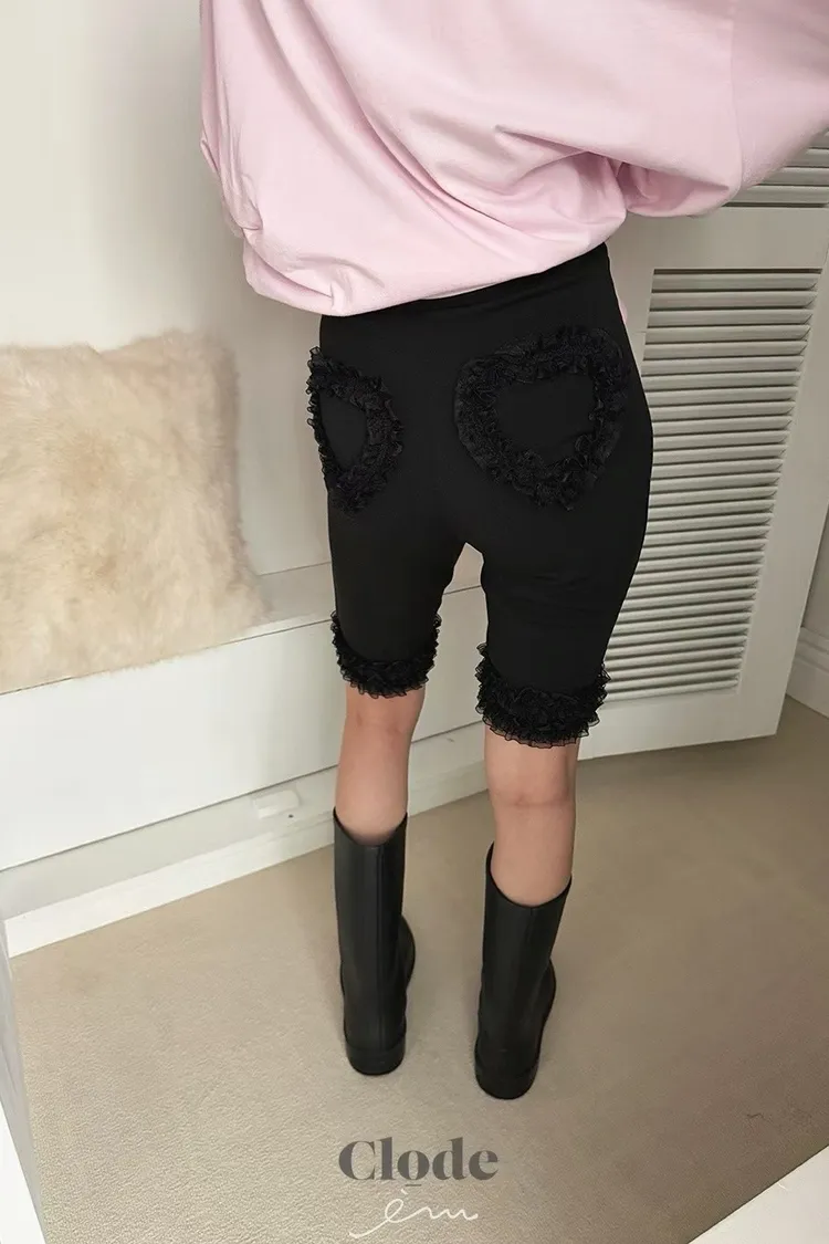 可愛後愛心花邊五分褲