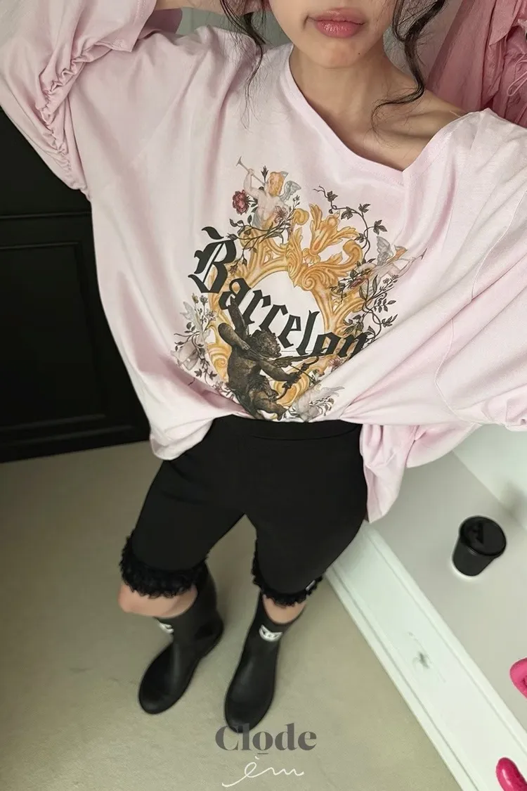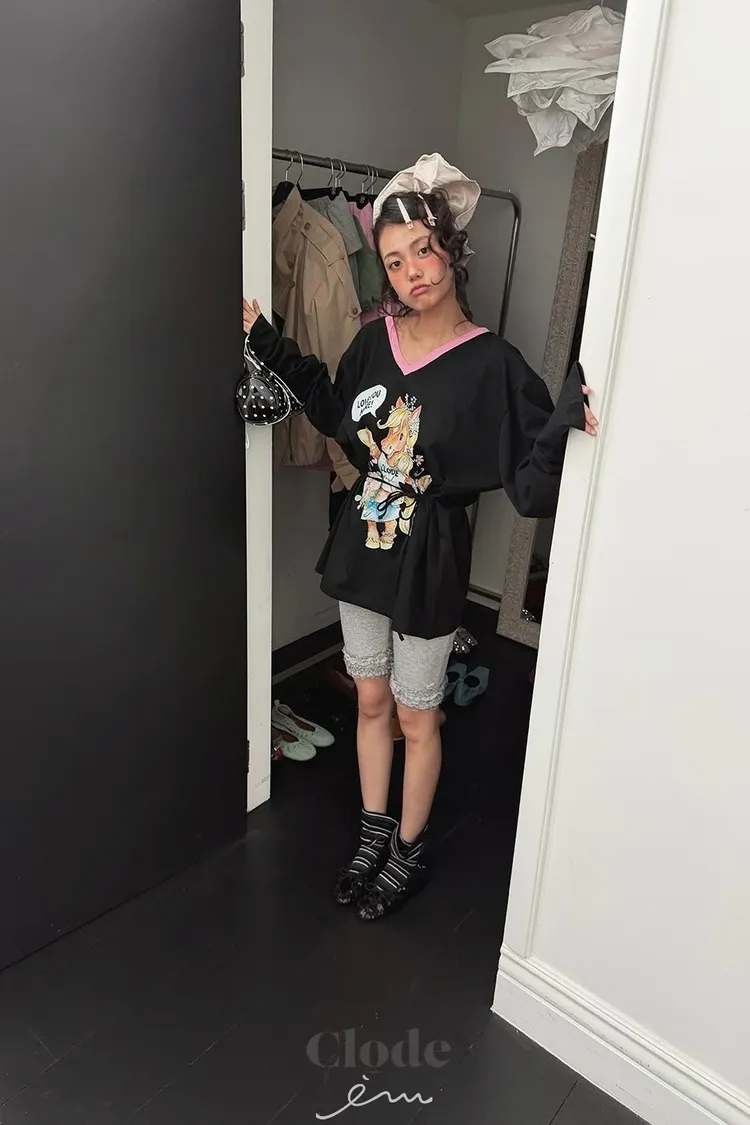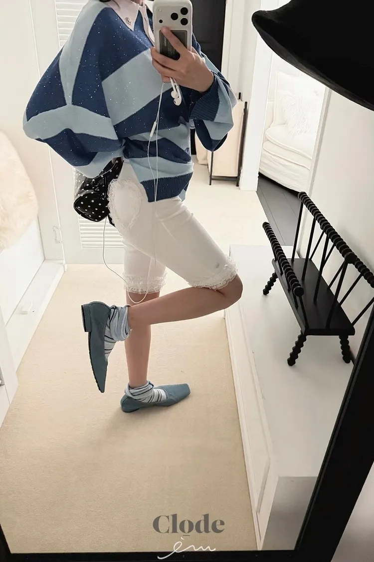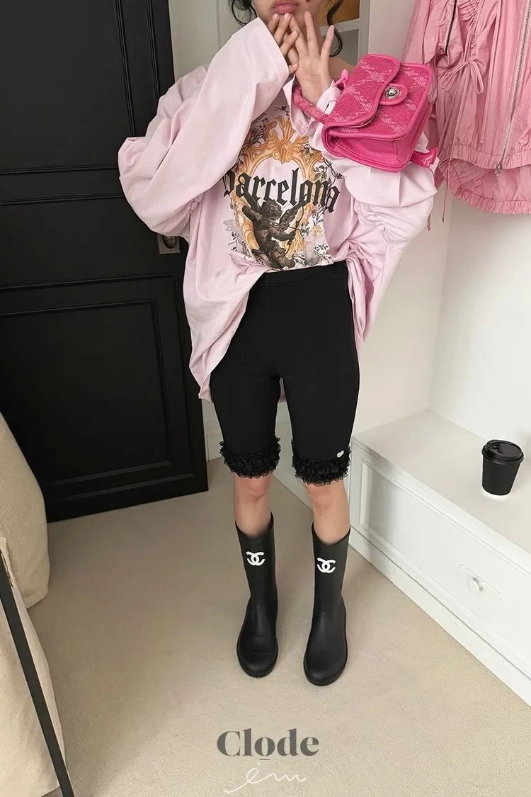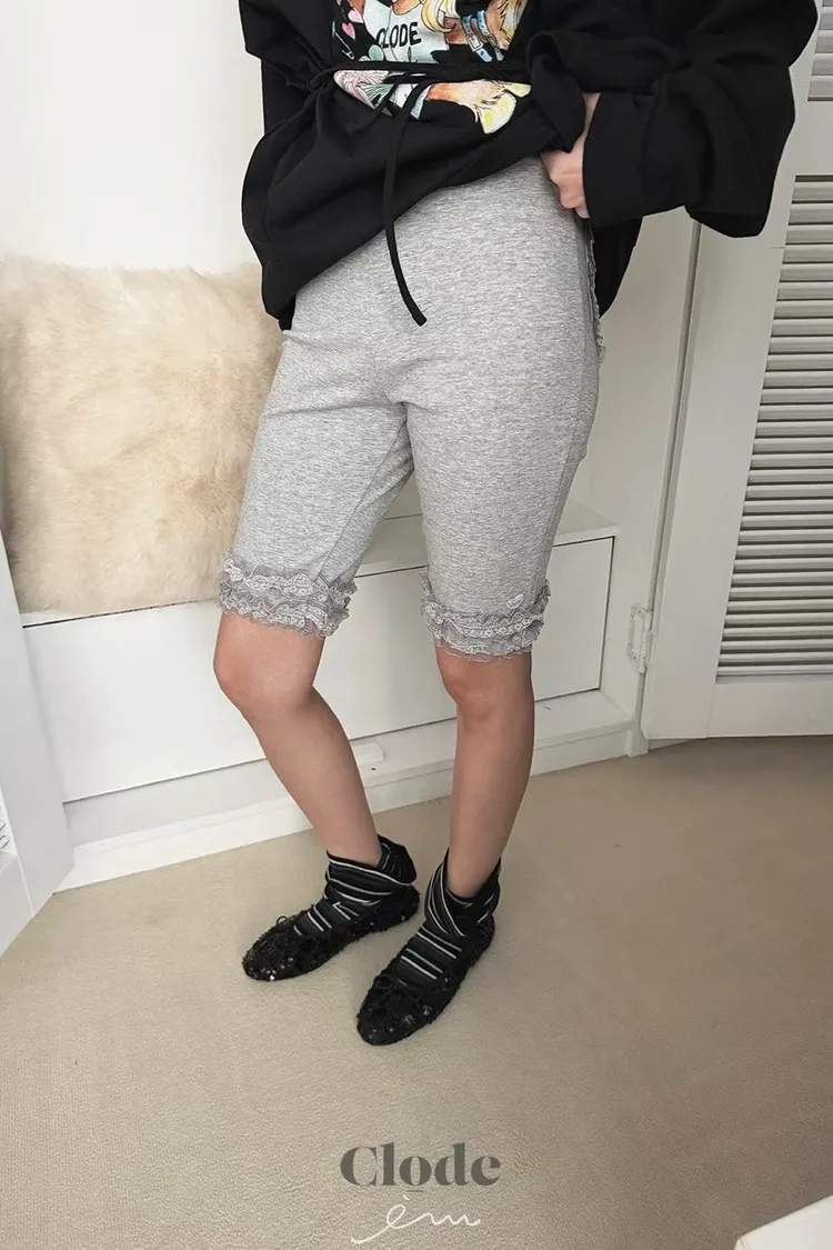 可愛後愛心花邊五分褲