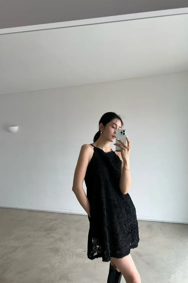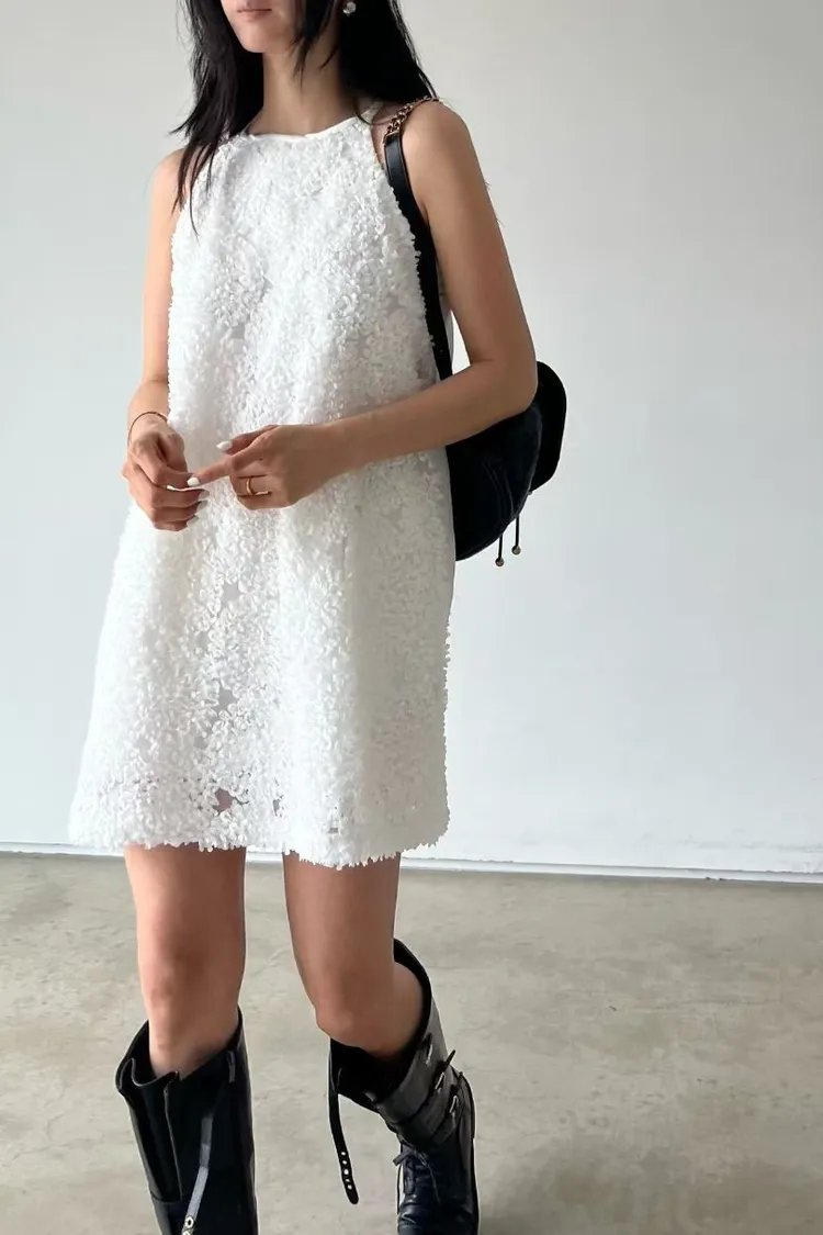 立體花花背心洋裝