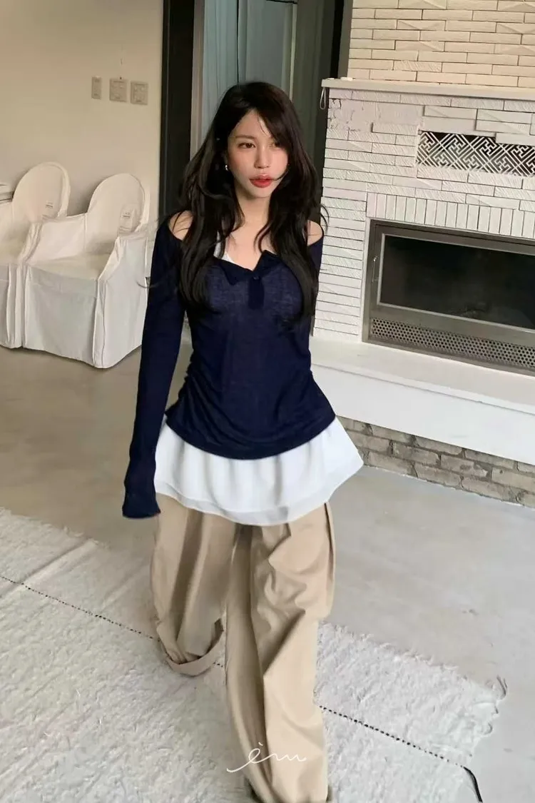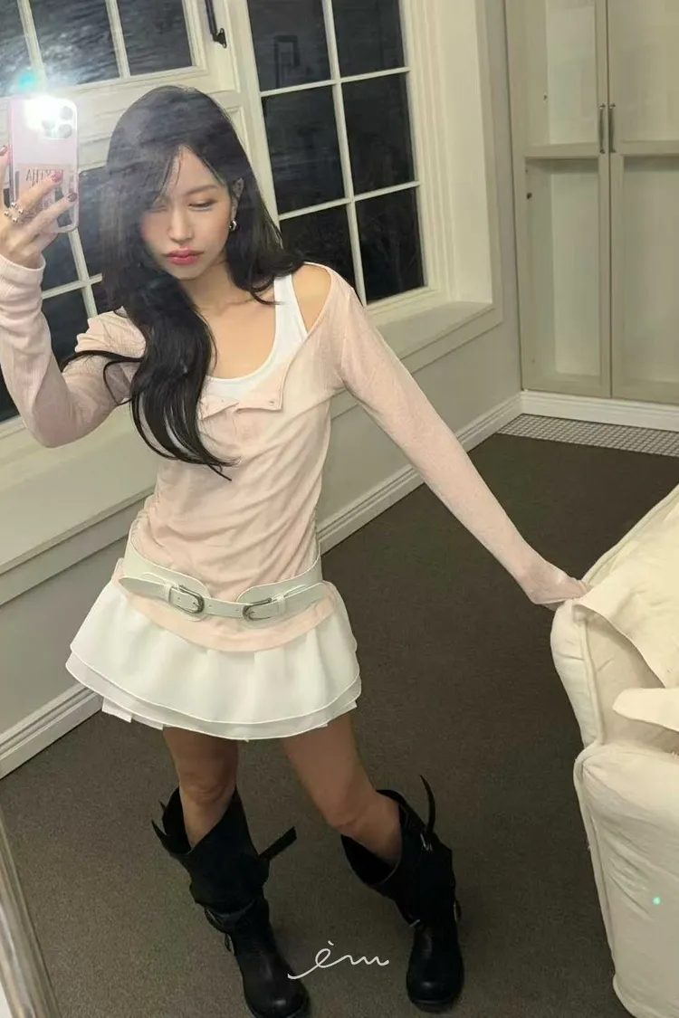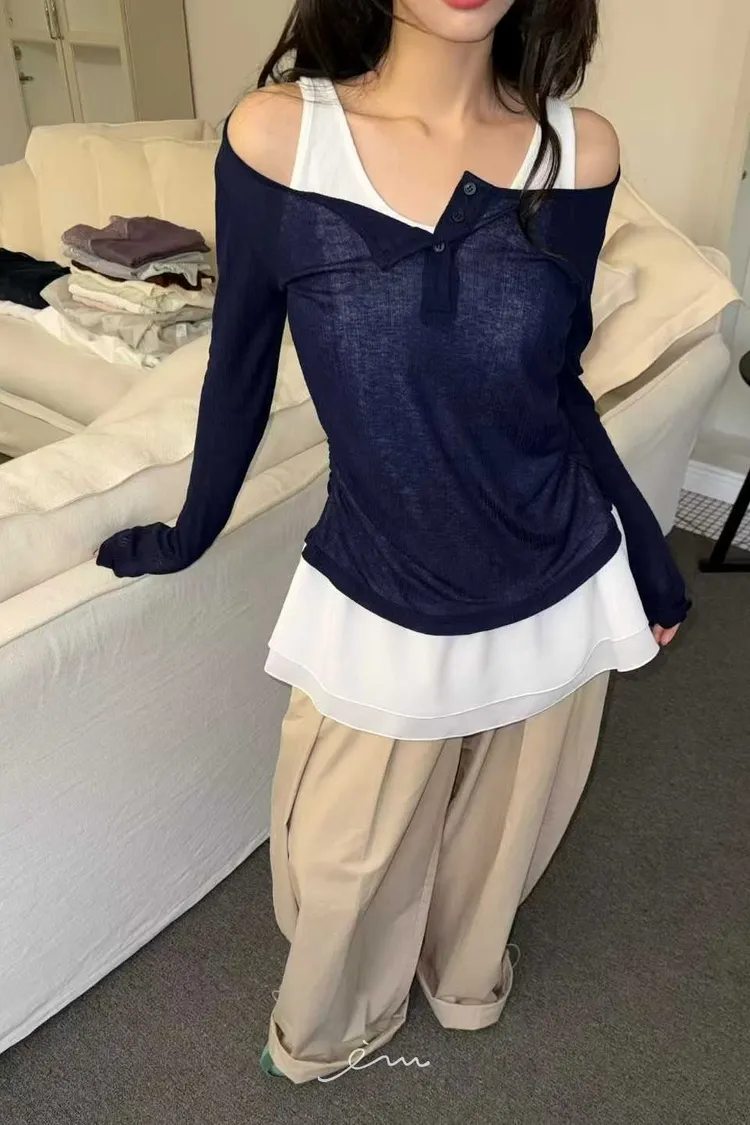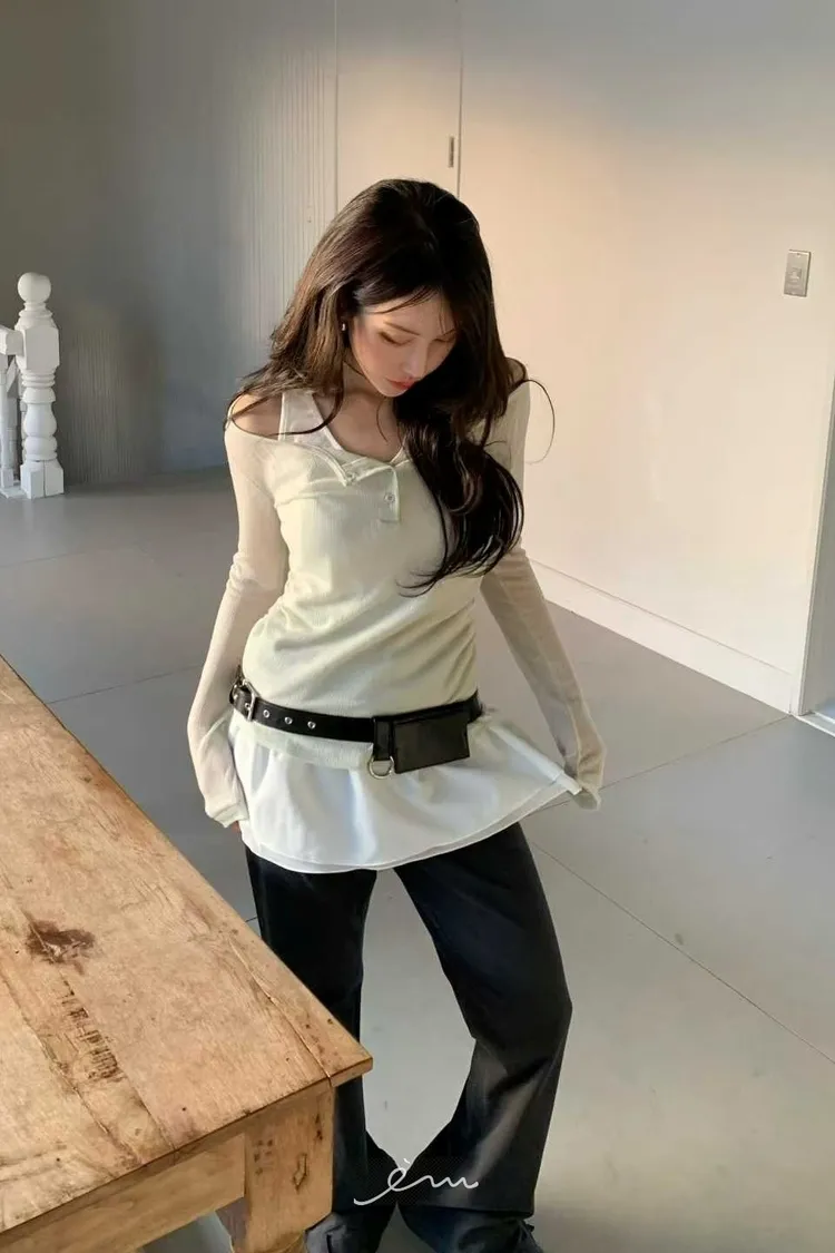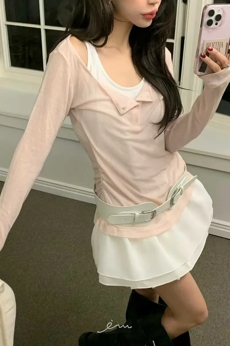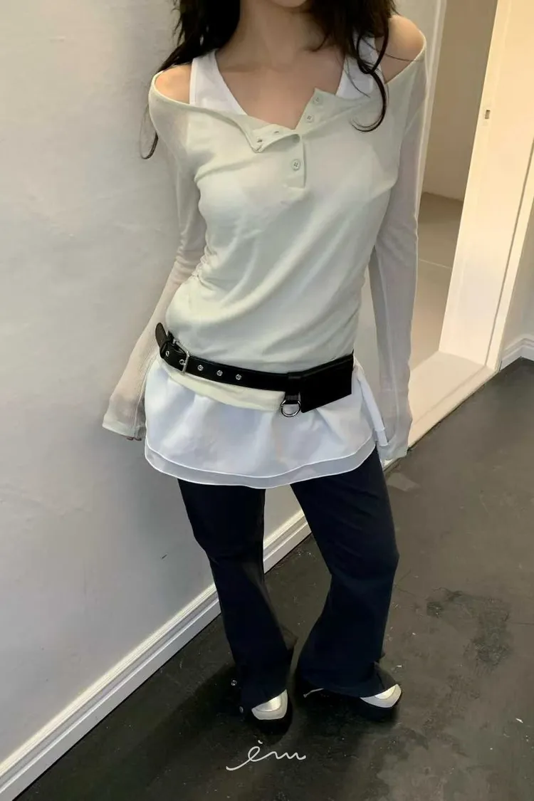 BER下裙襬假兩件鈕釦衣
