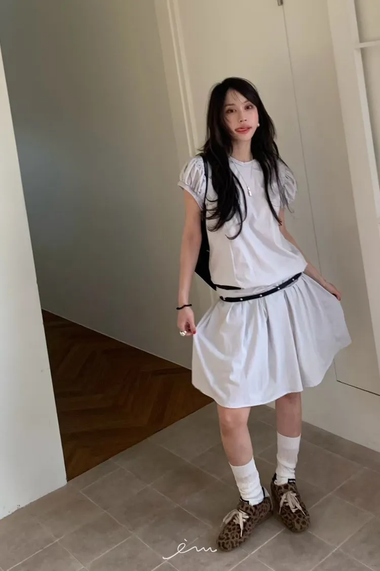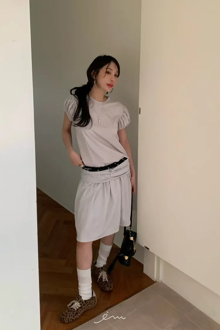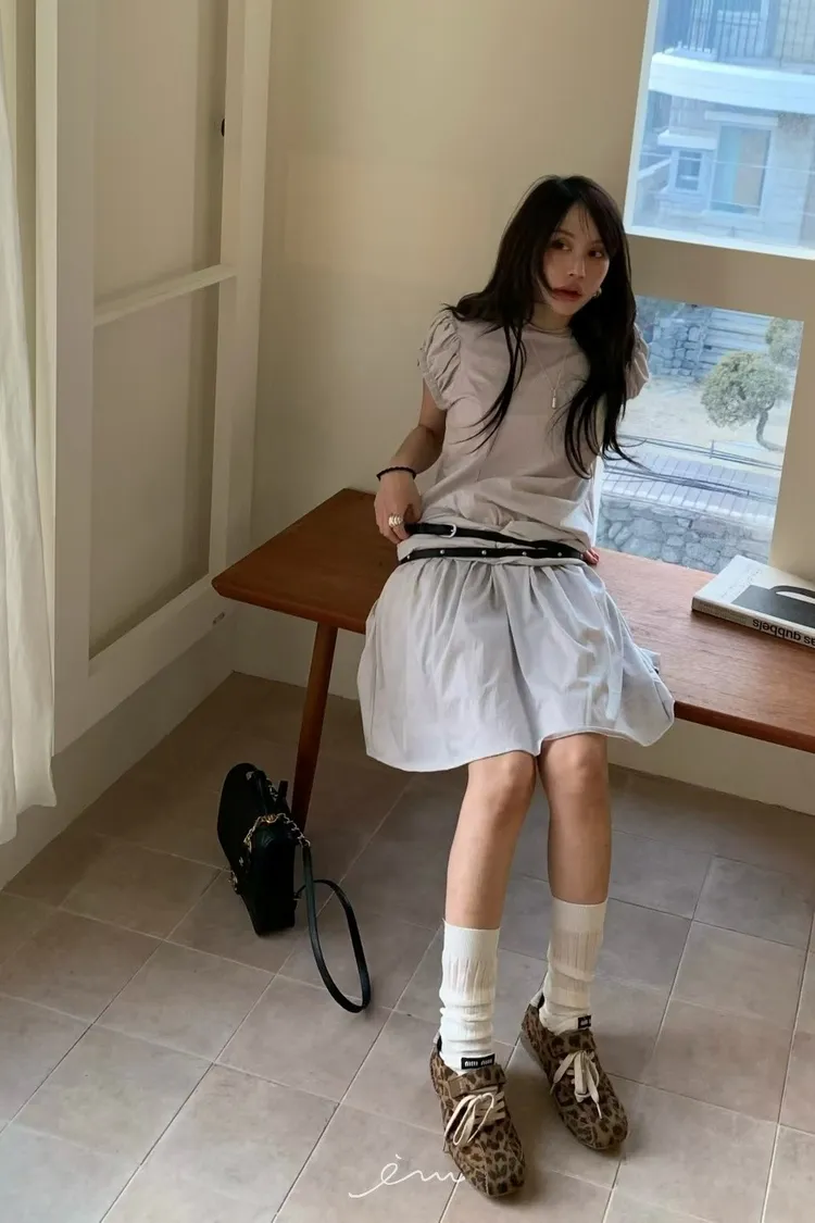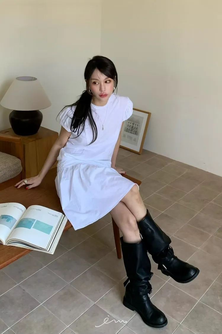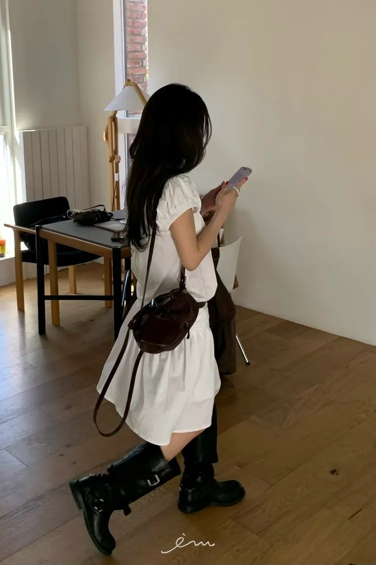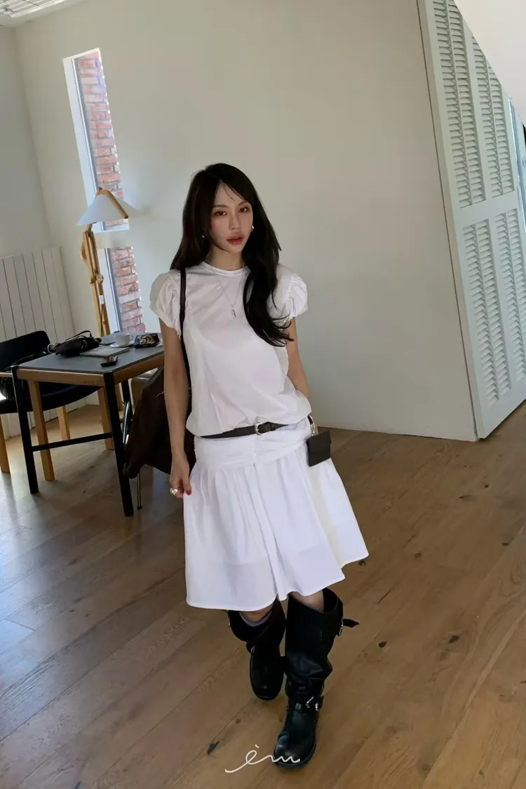 BER澎袖後拉鍊縮腰長洋