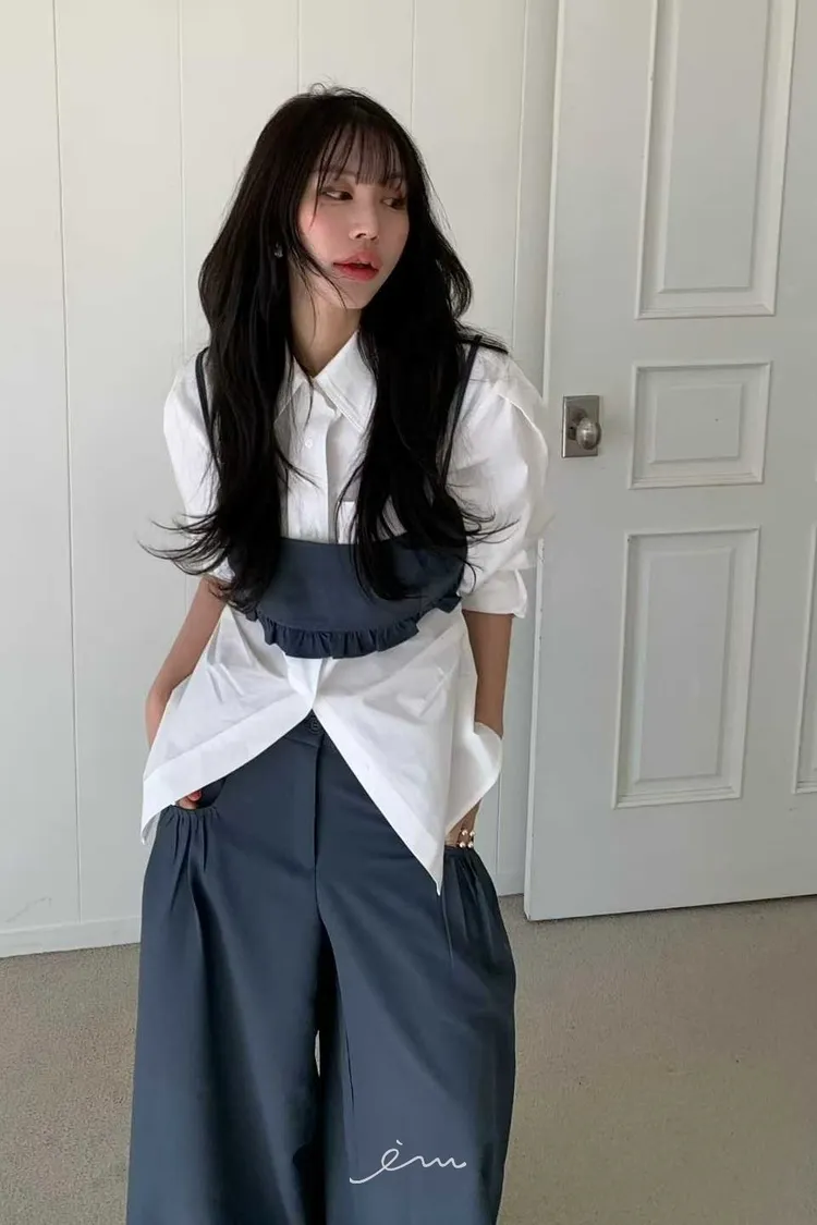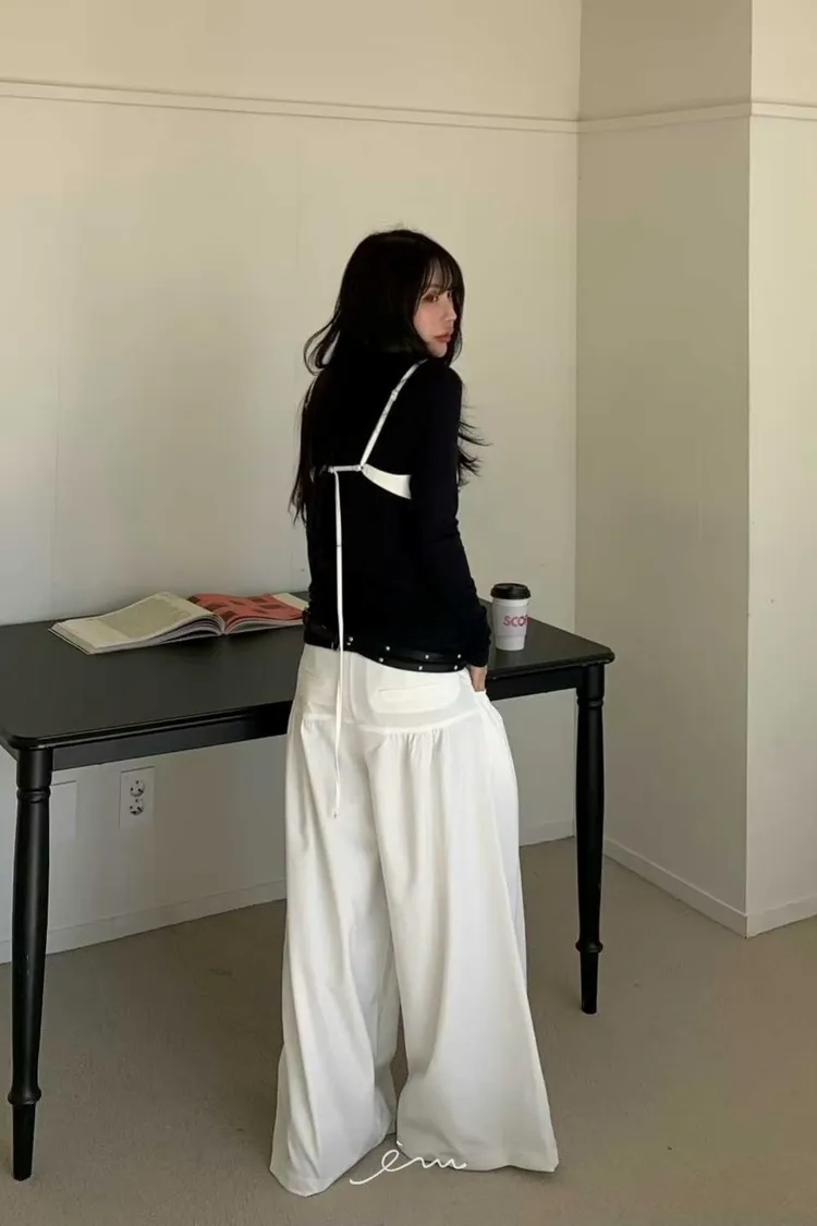 BER口袋抓皺長寬褲