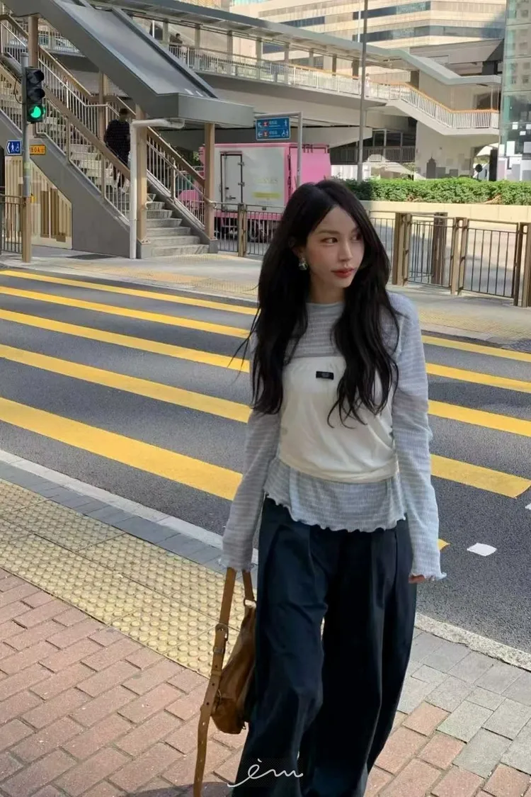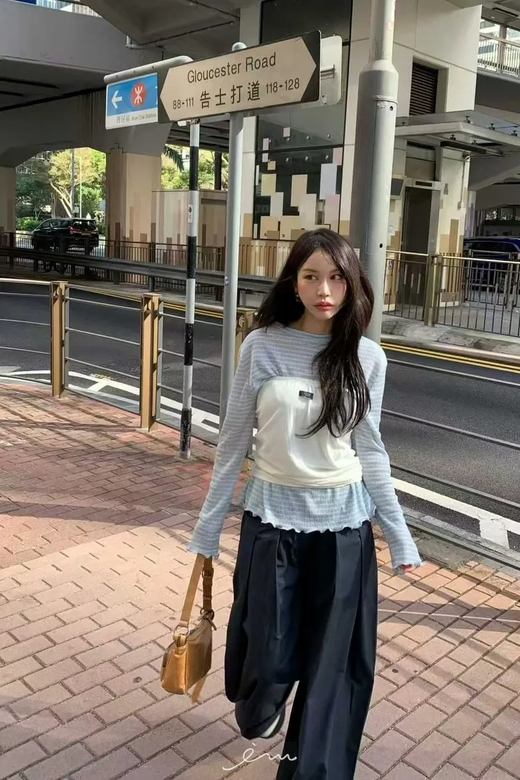 BER下擺捲邊條紋衣