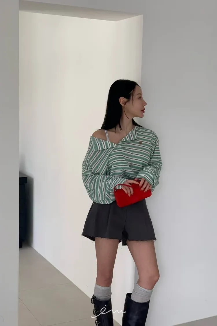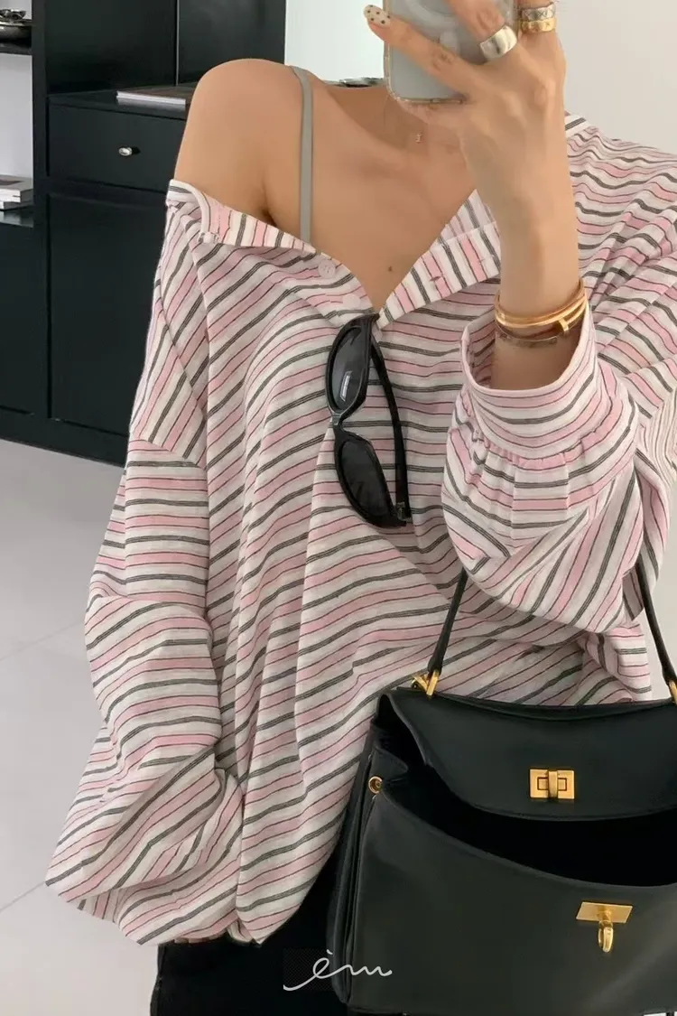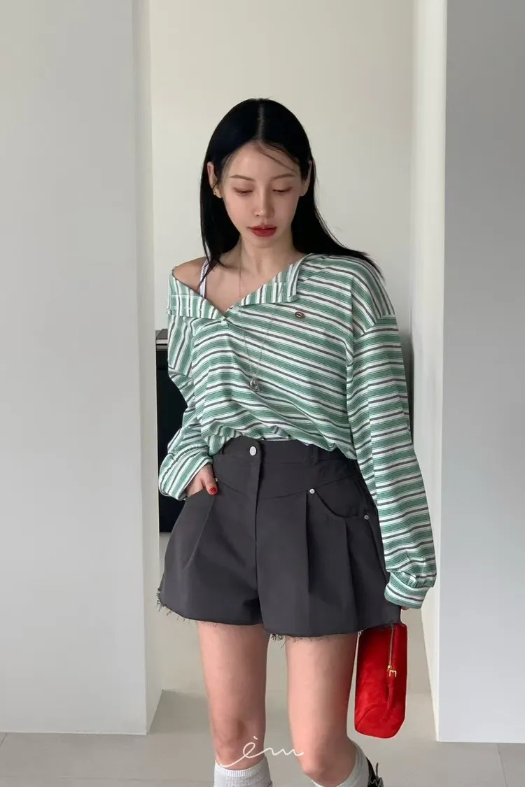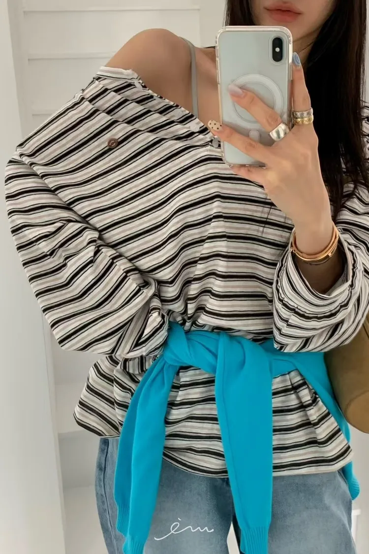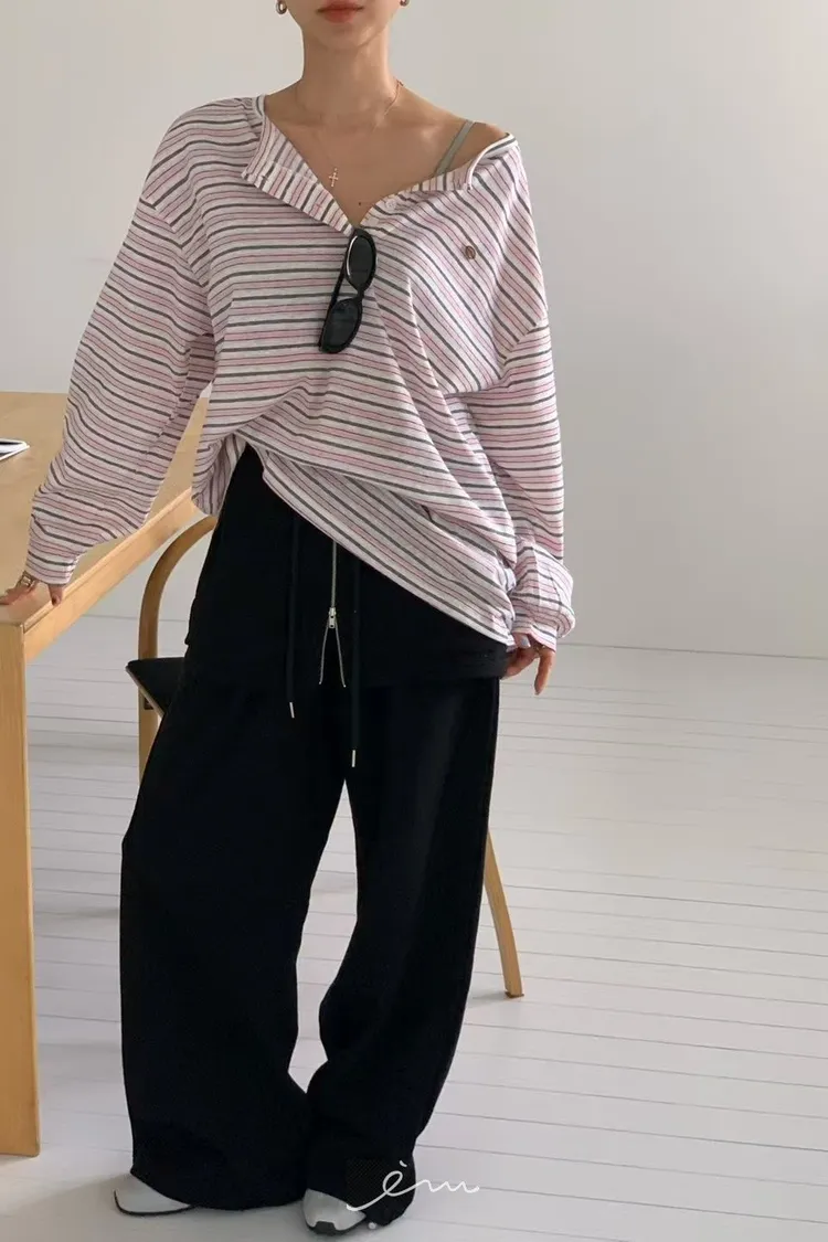 RE小圓標鈕釦條紋上衣