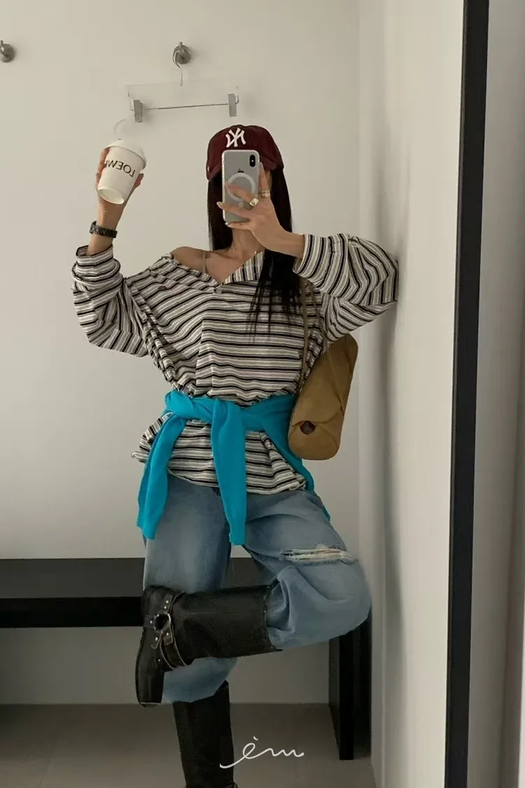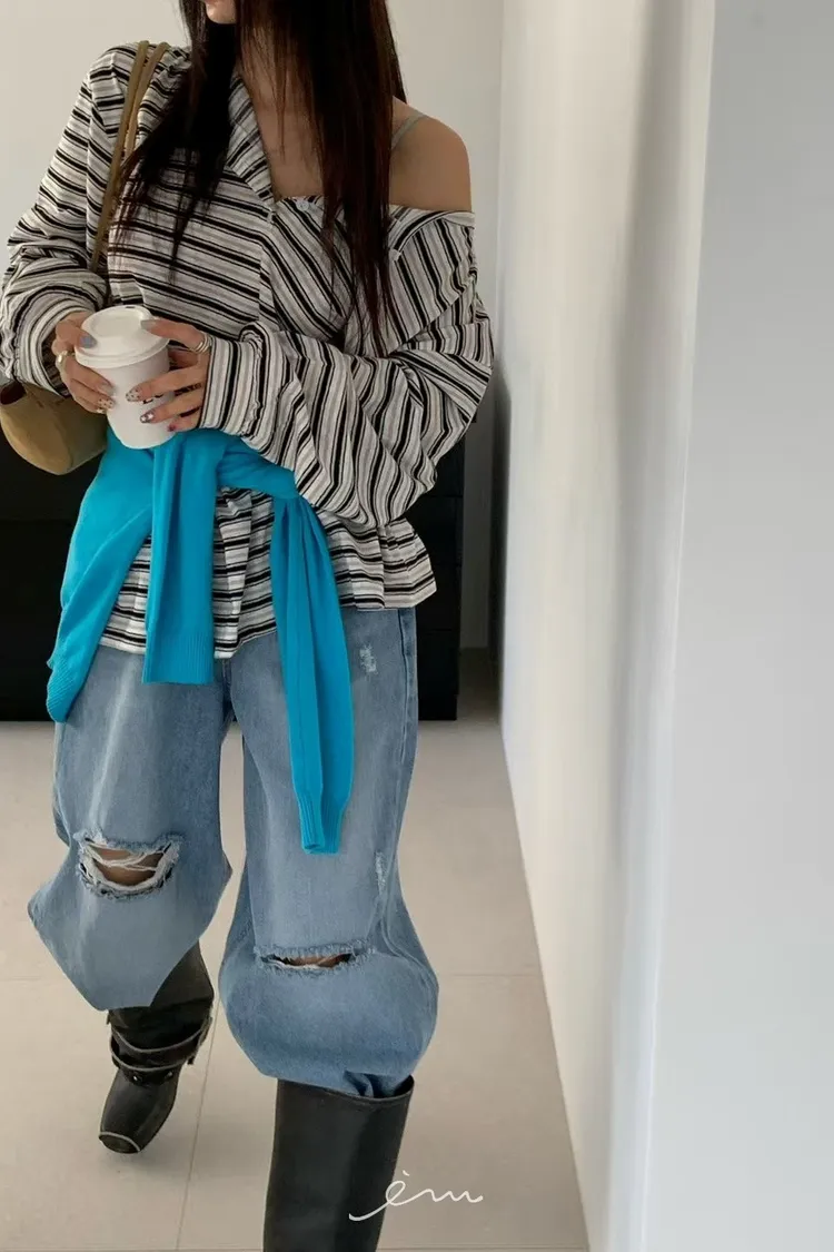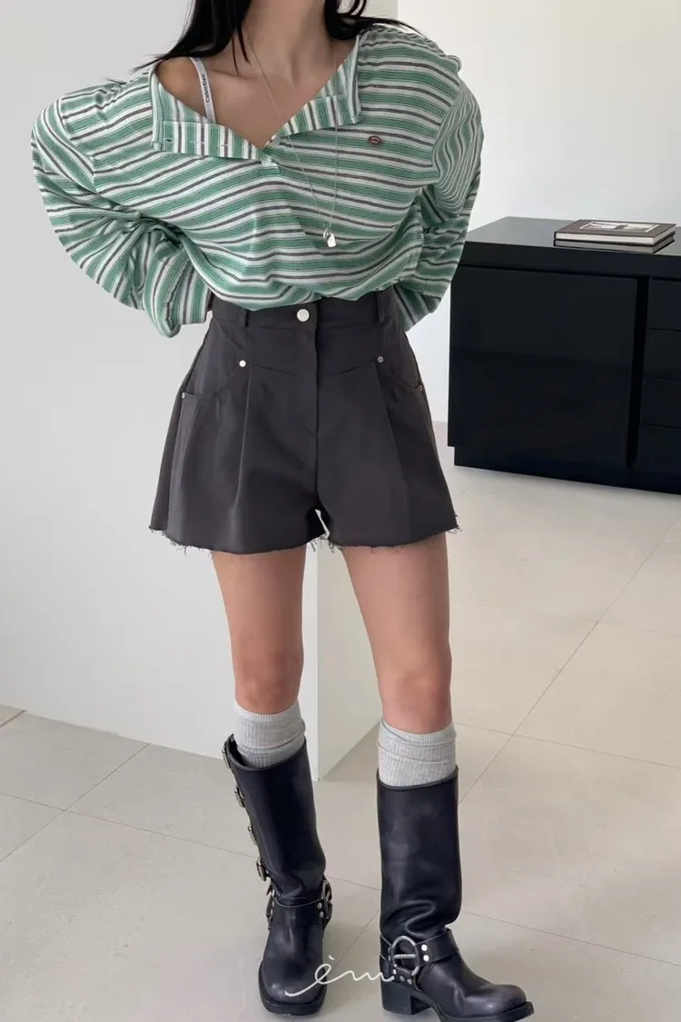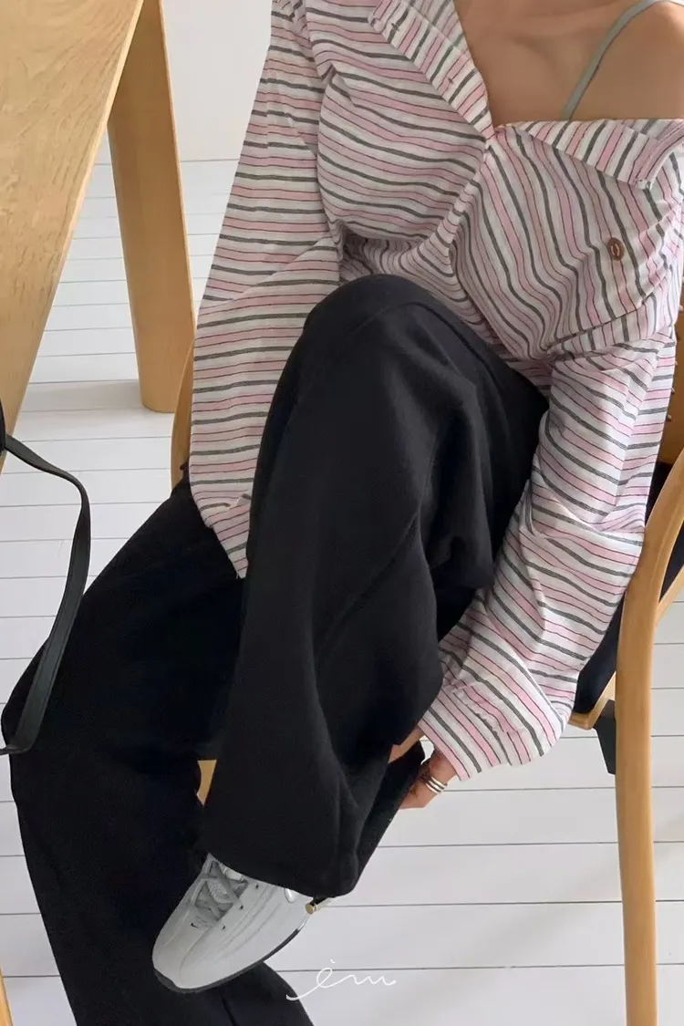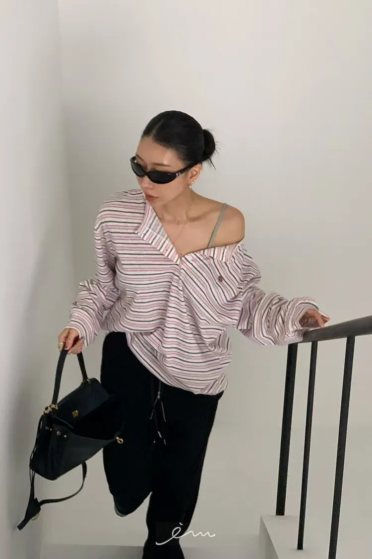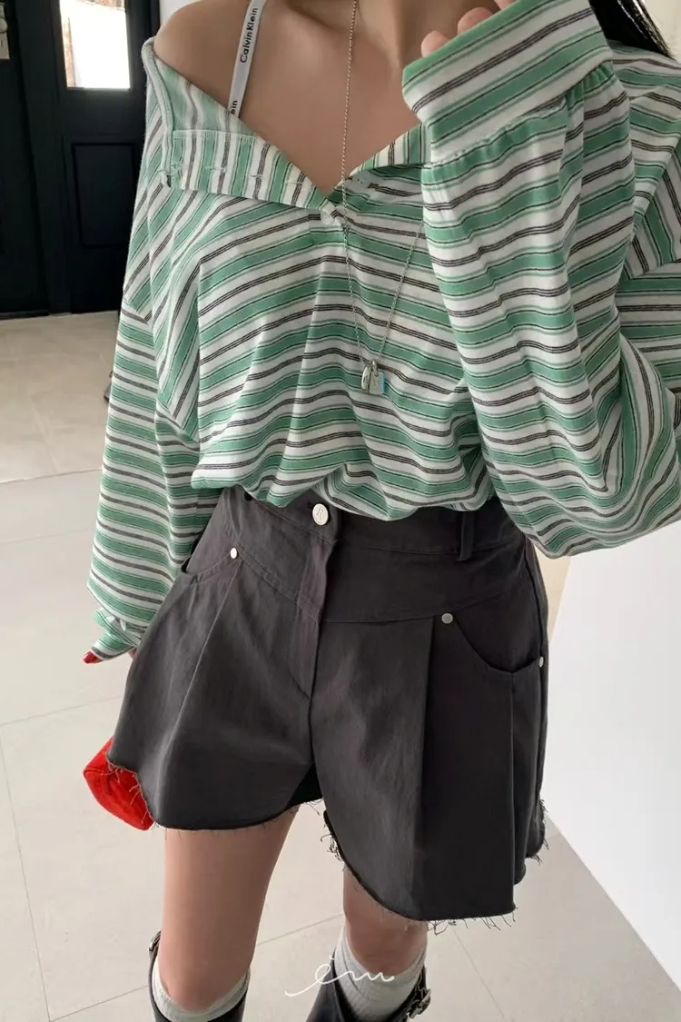 RE小圓標鈕釦條紋上衣