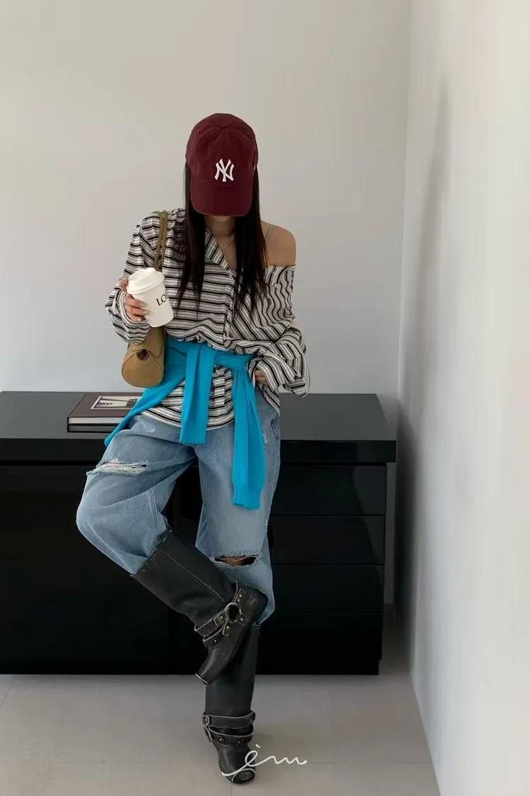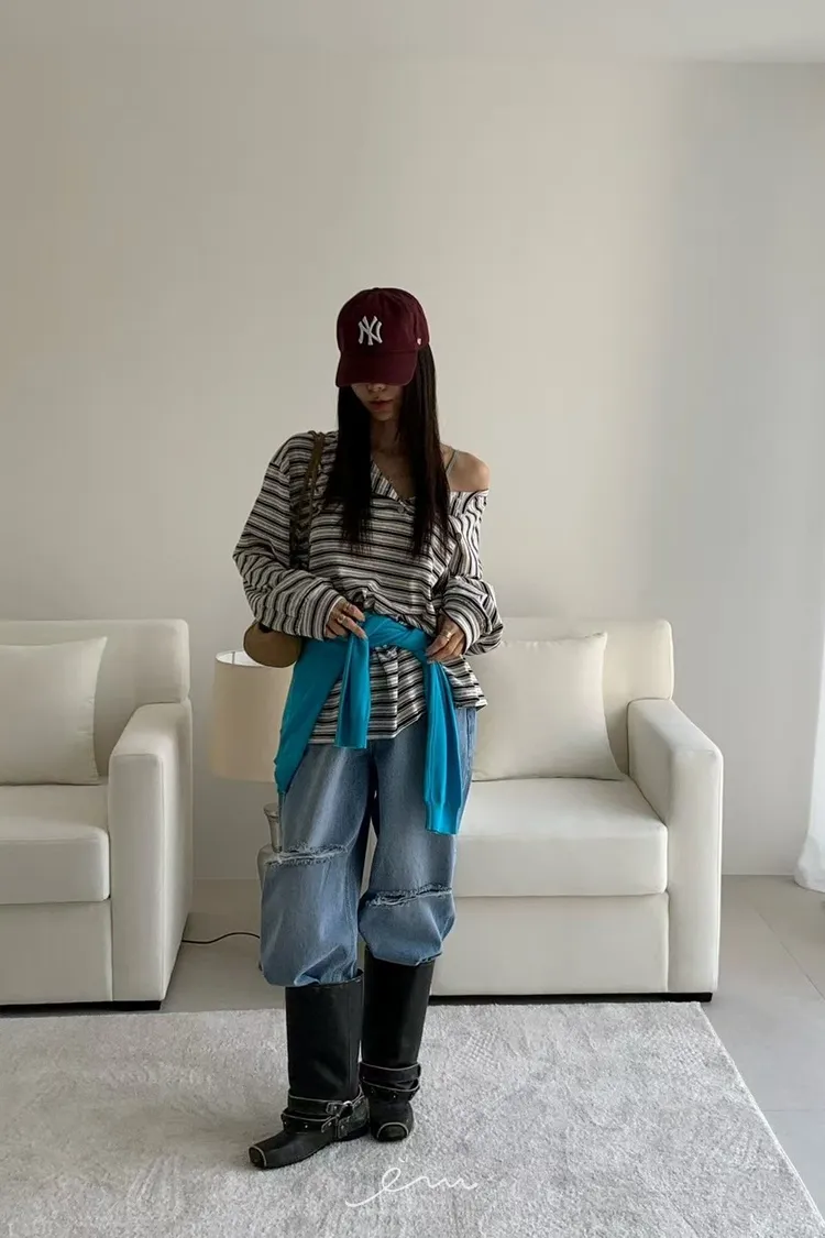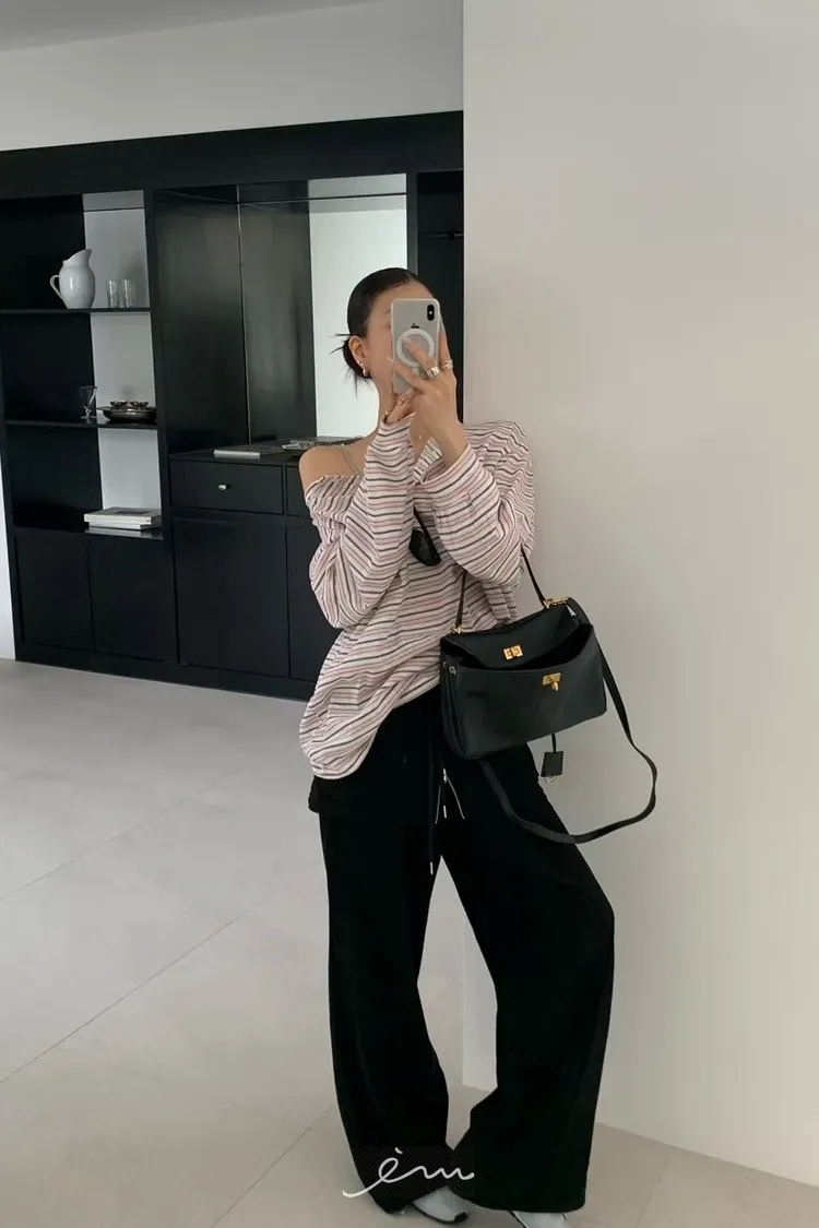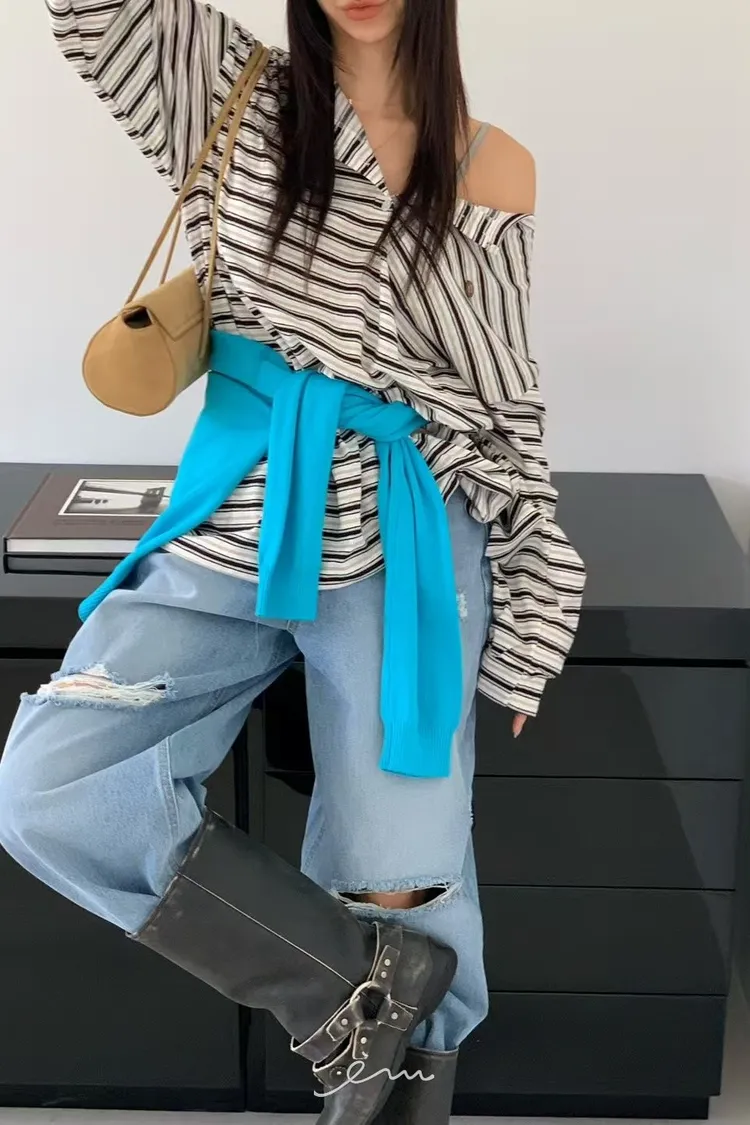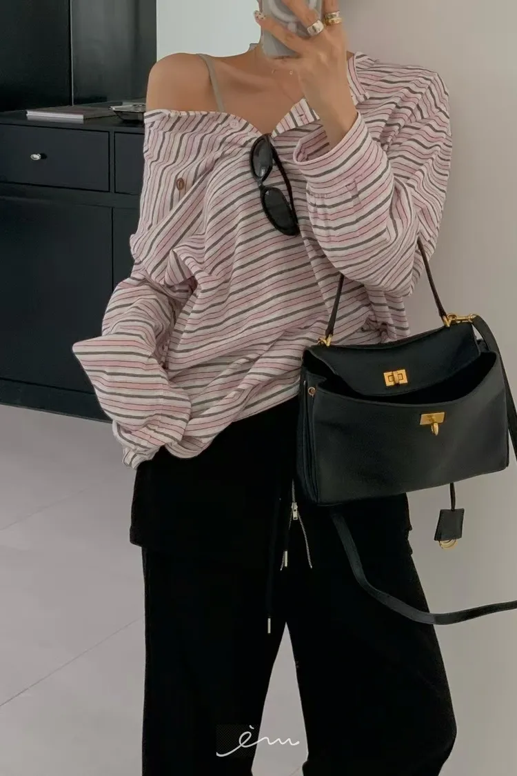 RE小圓標鈕釦條紋上衣
