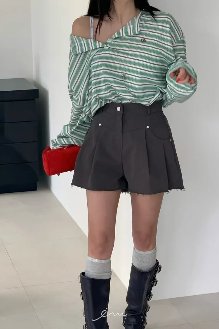 RE下鬚鬚打摺短褲
