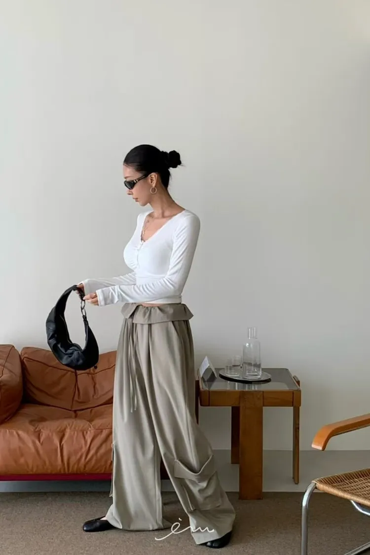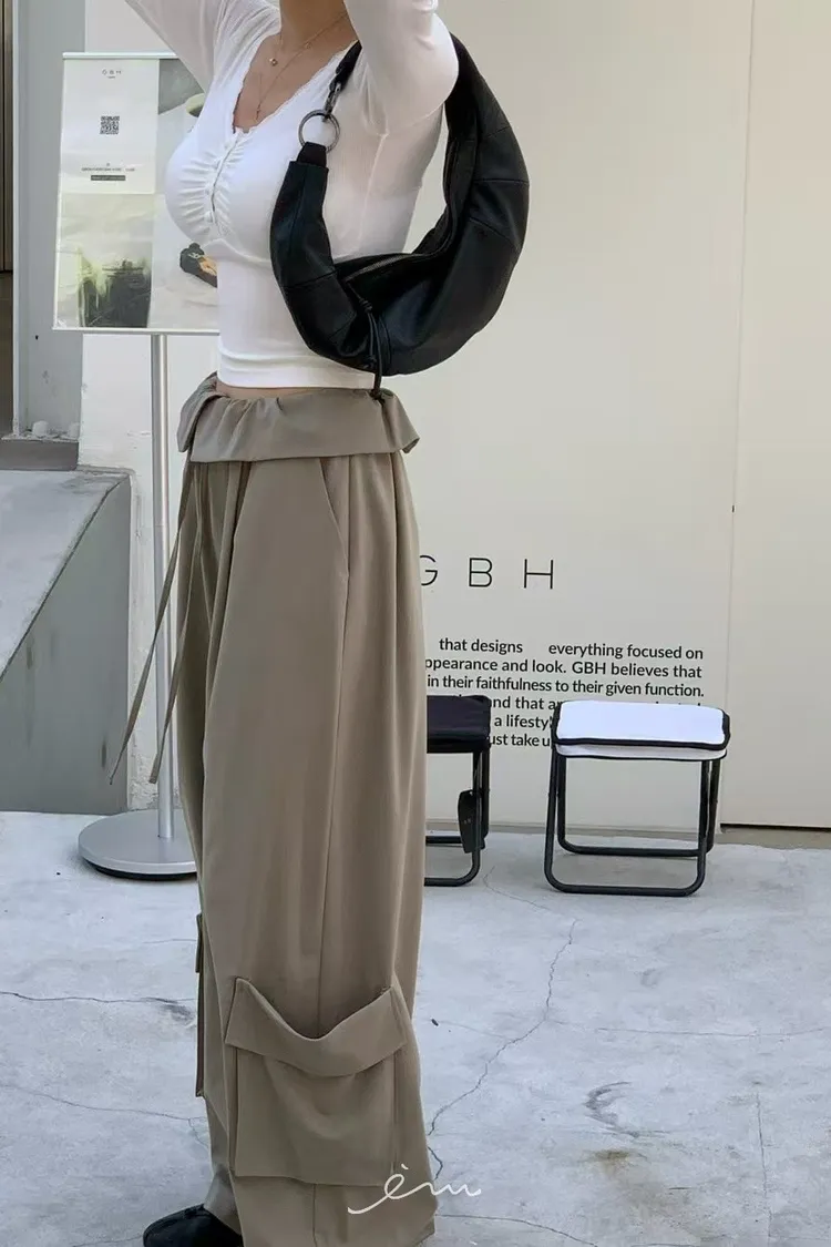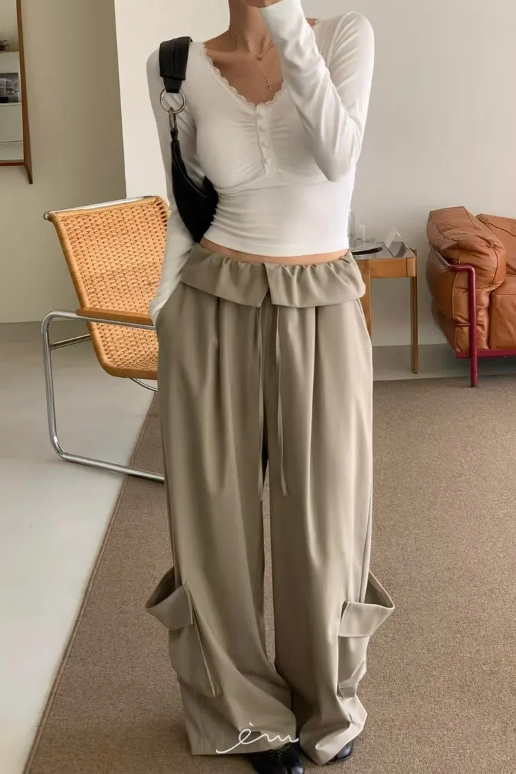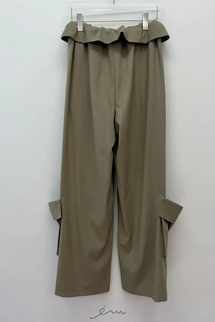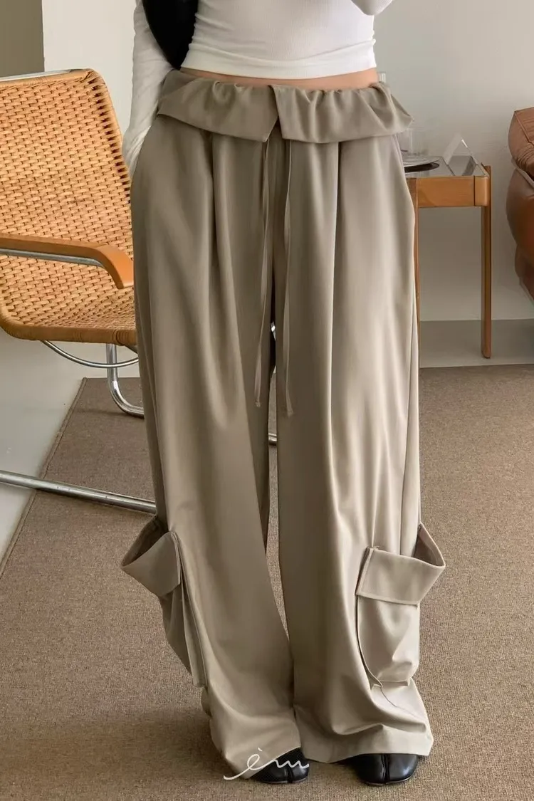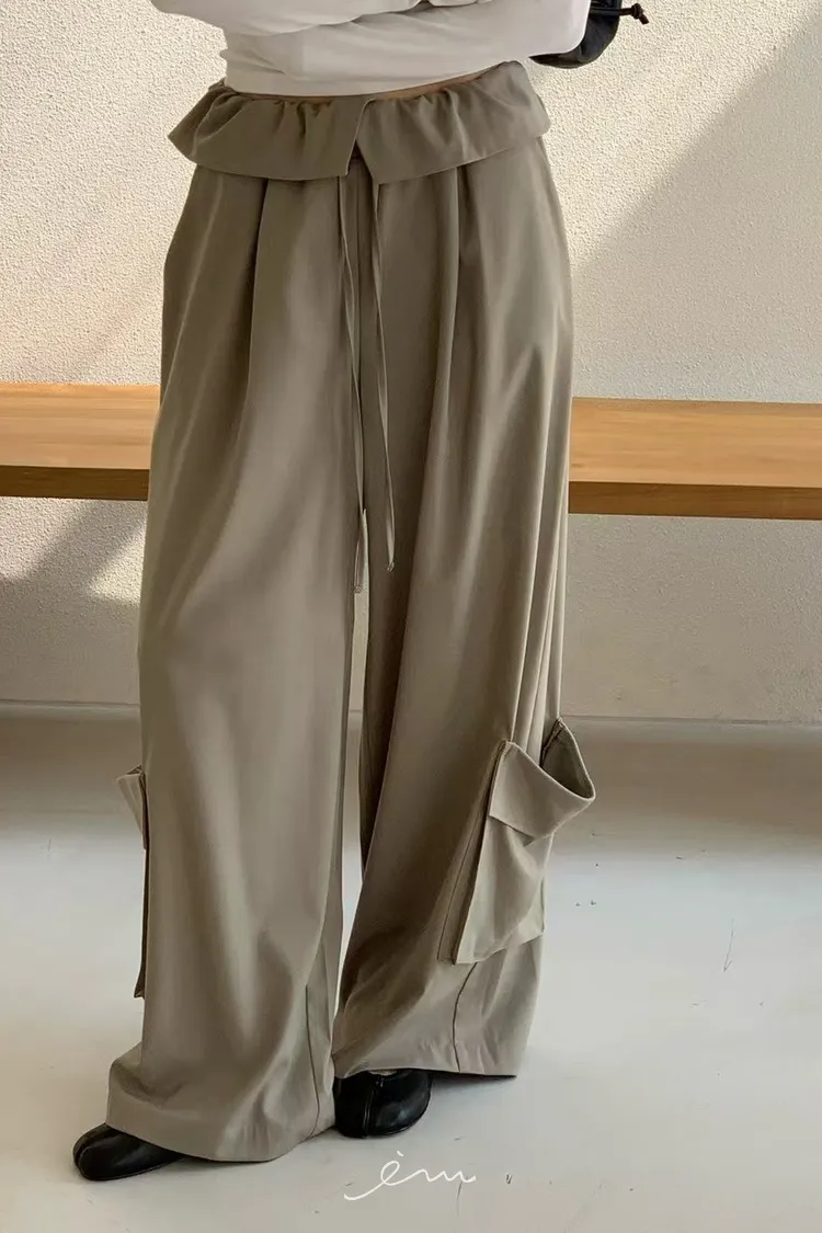 RE下雙口袋反摺褲頭抽繩長褲