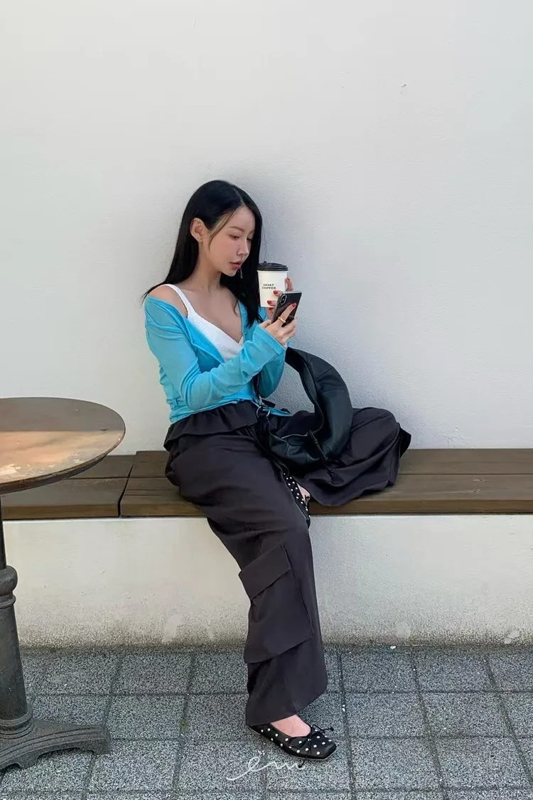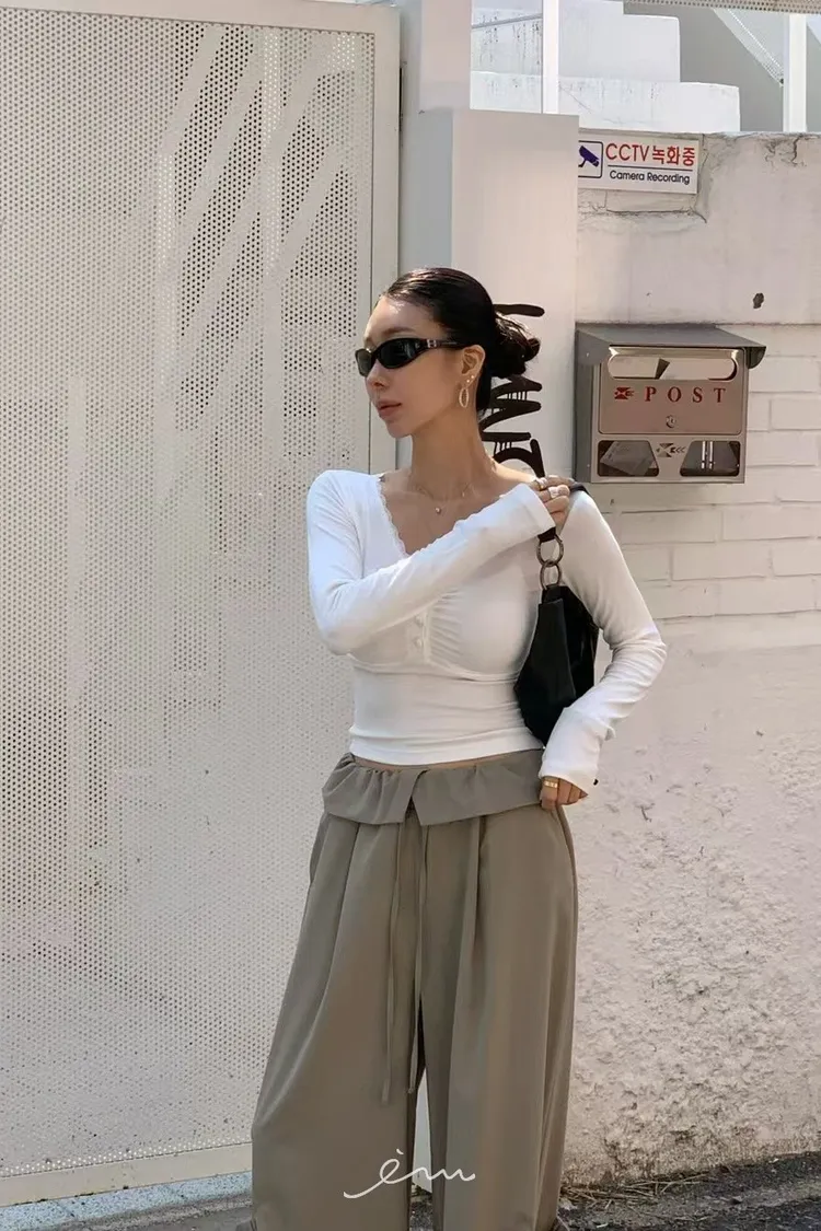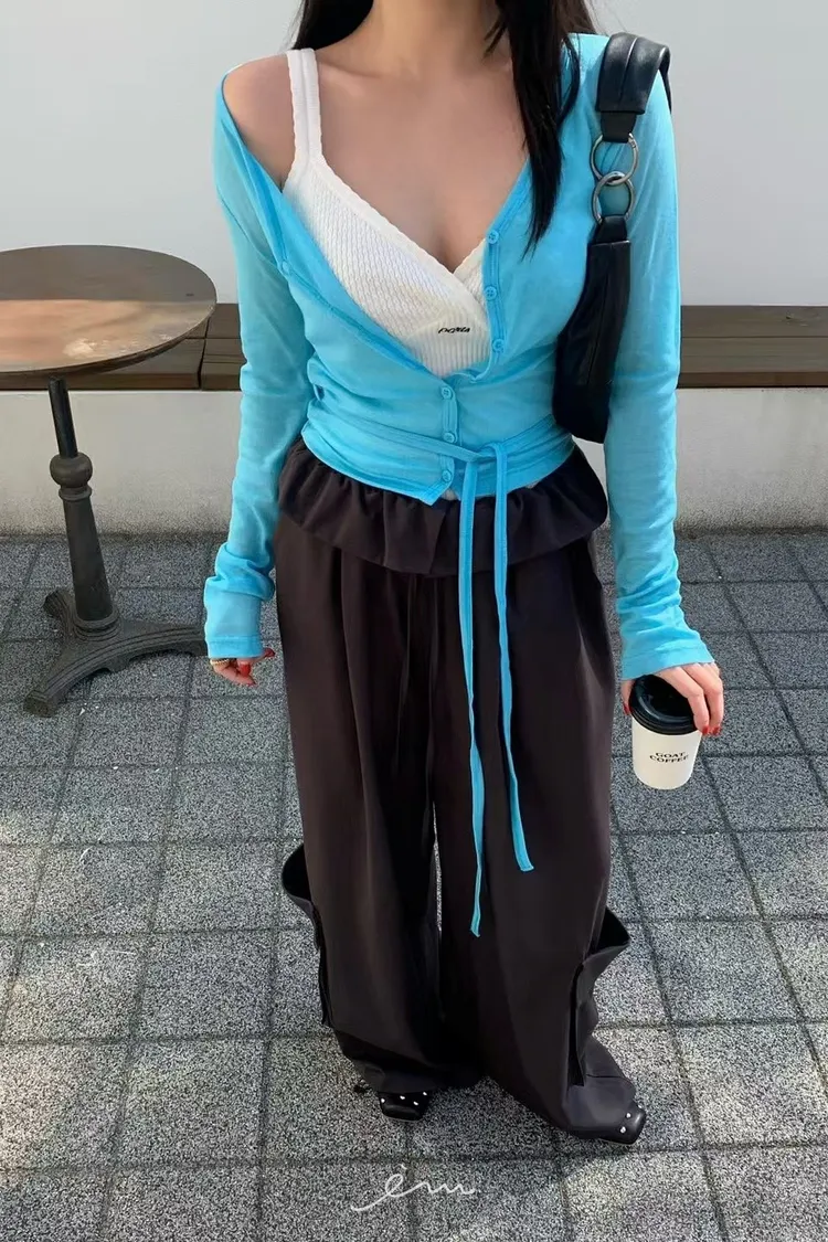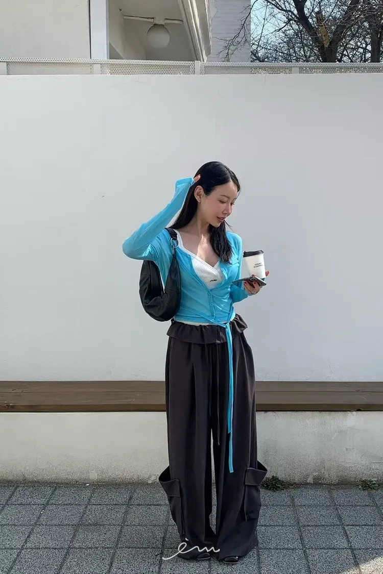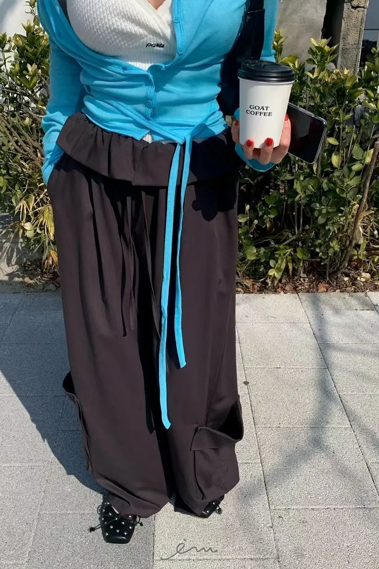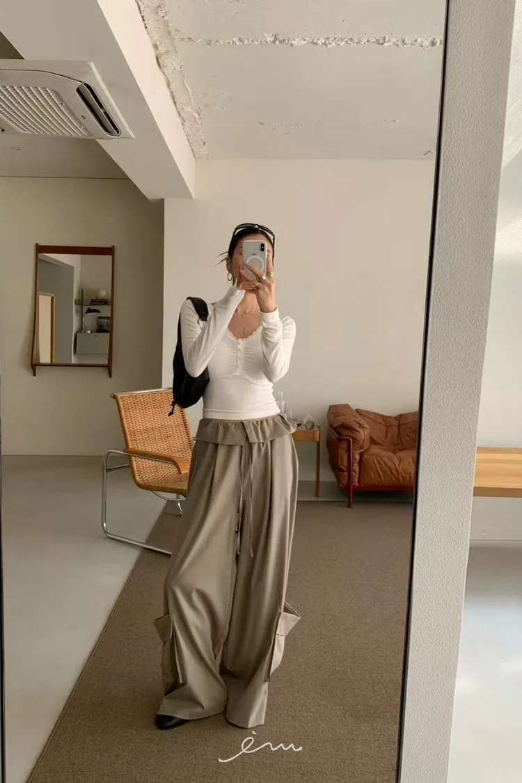 RE下雙口袋反摺褲頭抽繩長褲