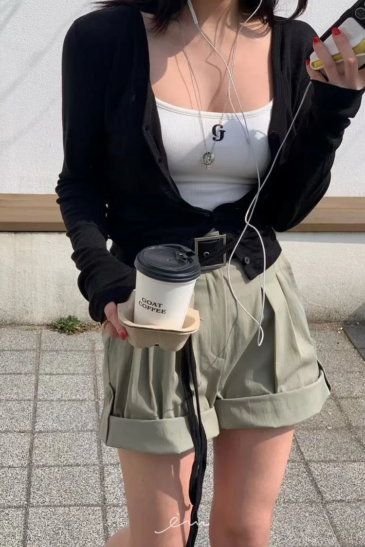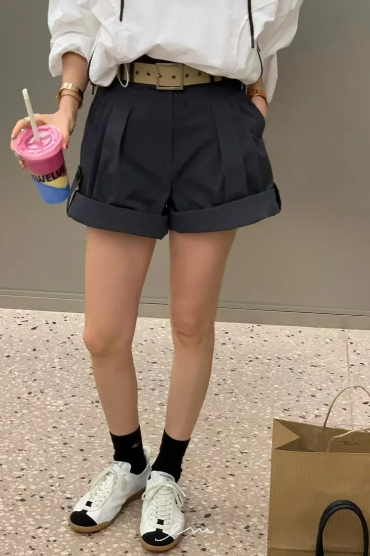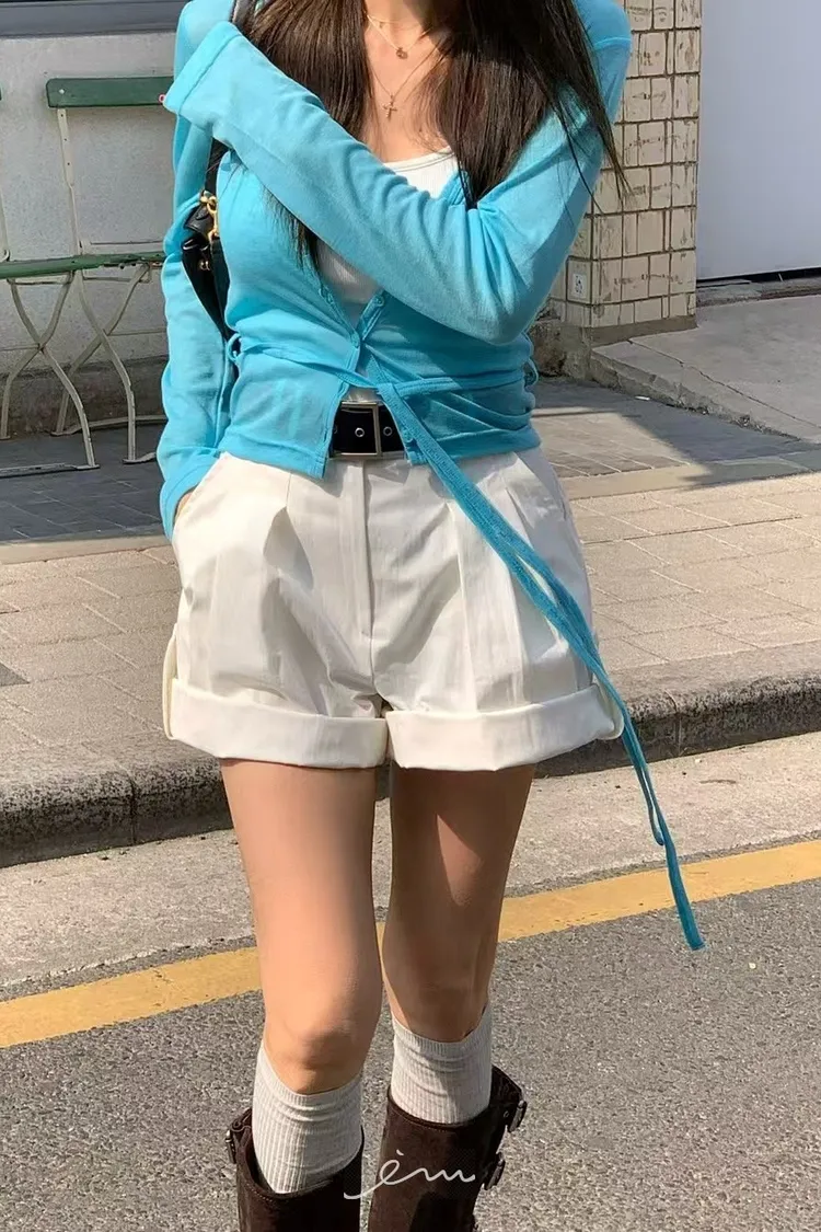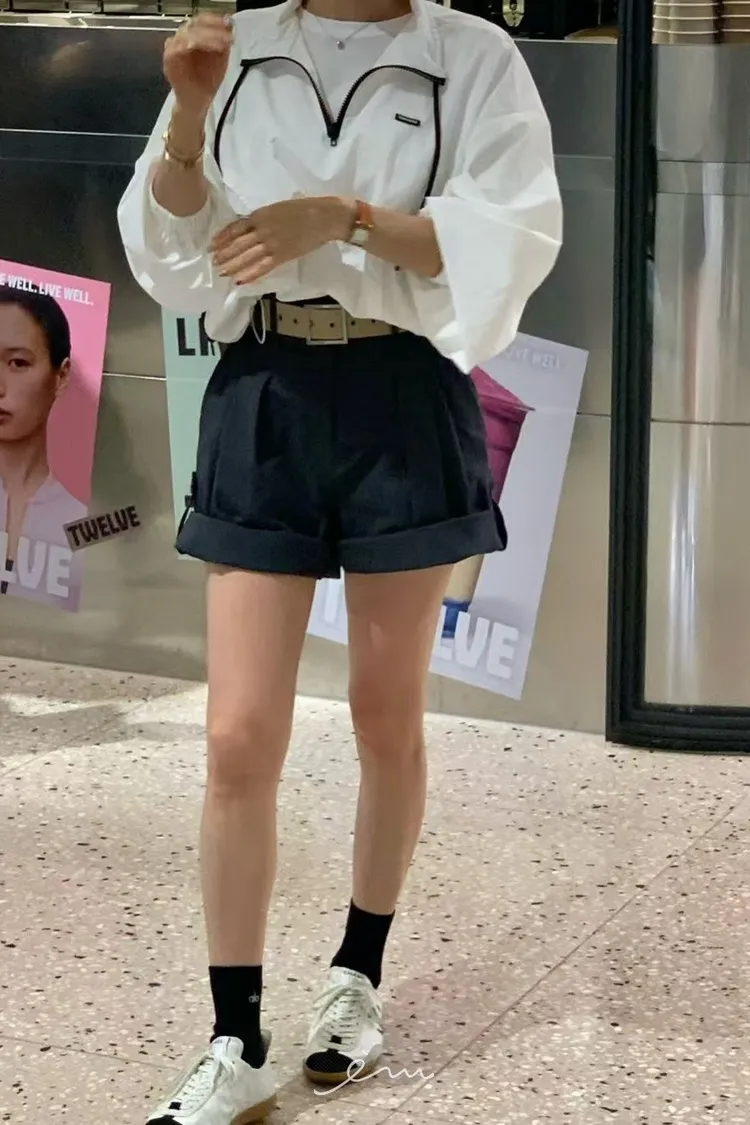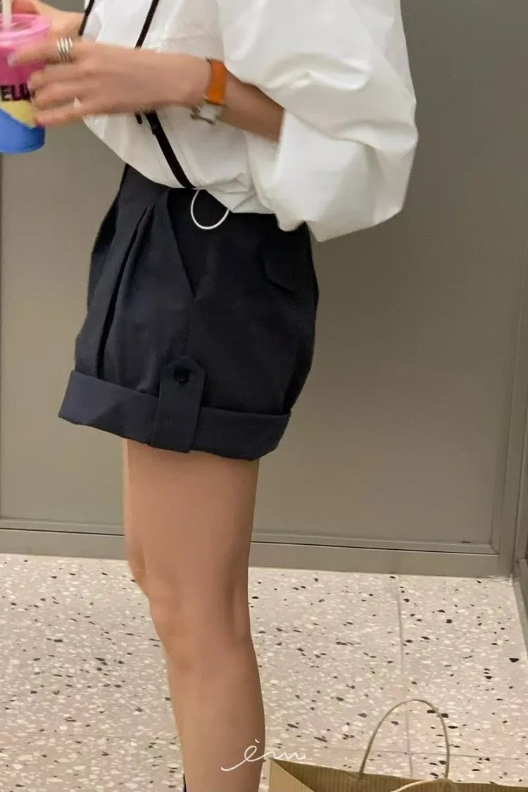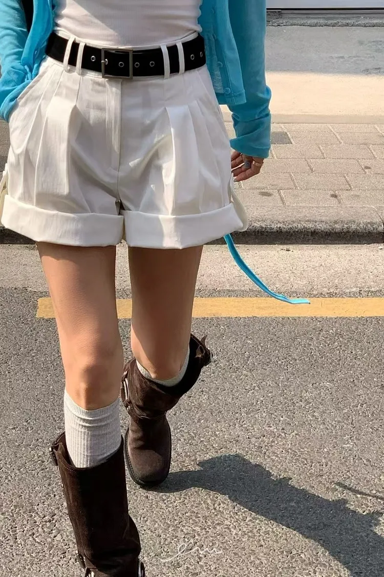 RE下反摺壓摺隱藏釦短褲