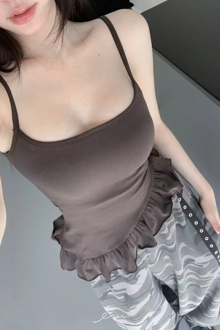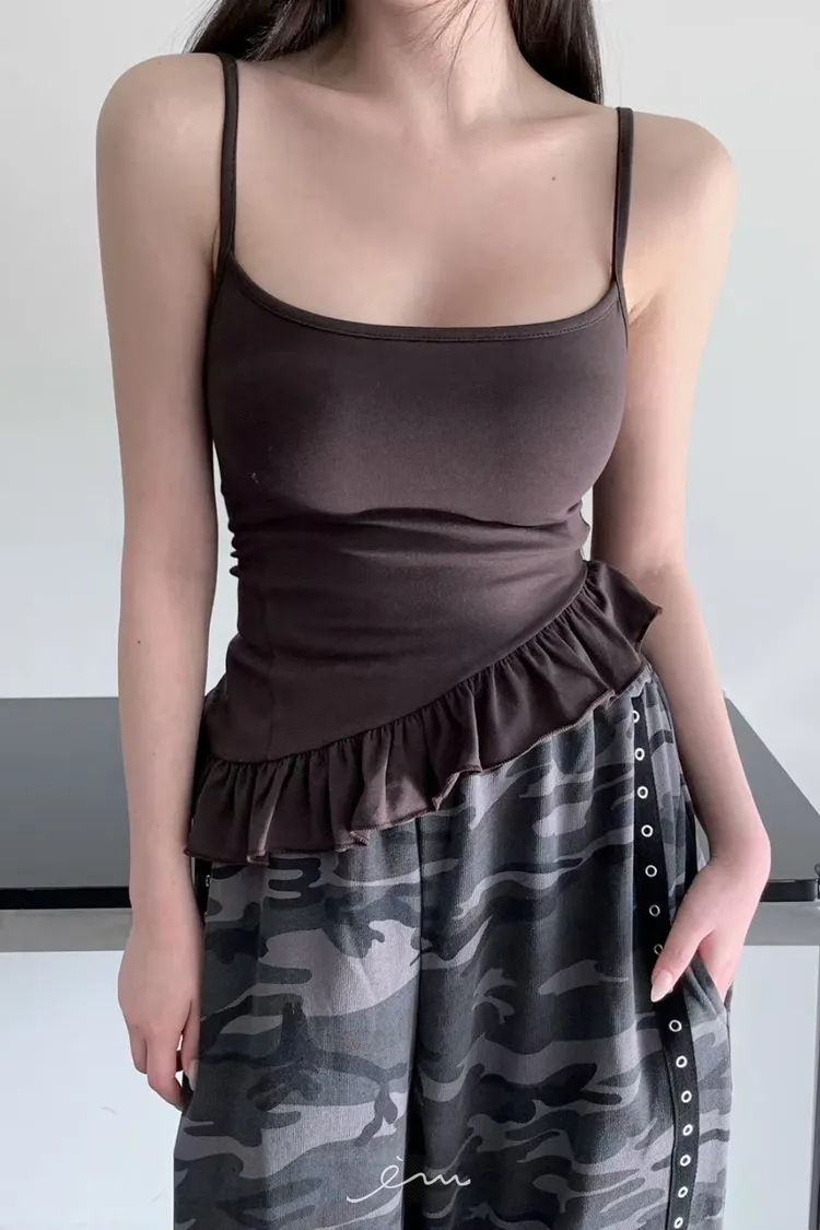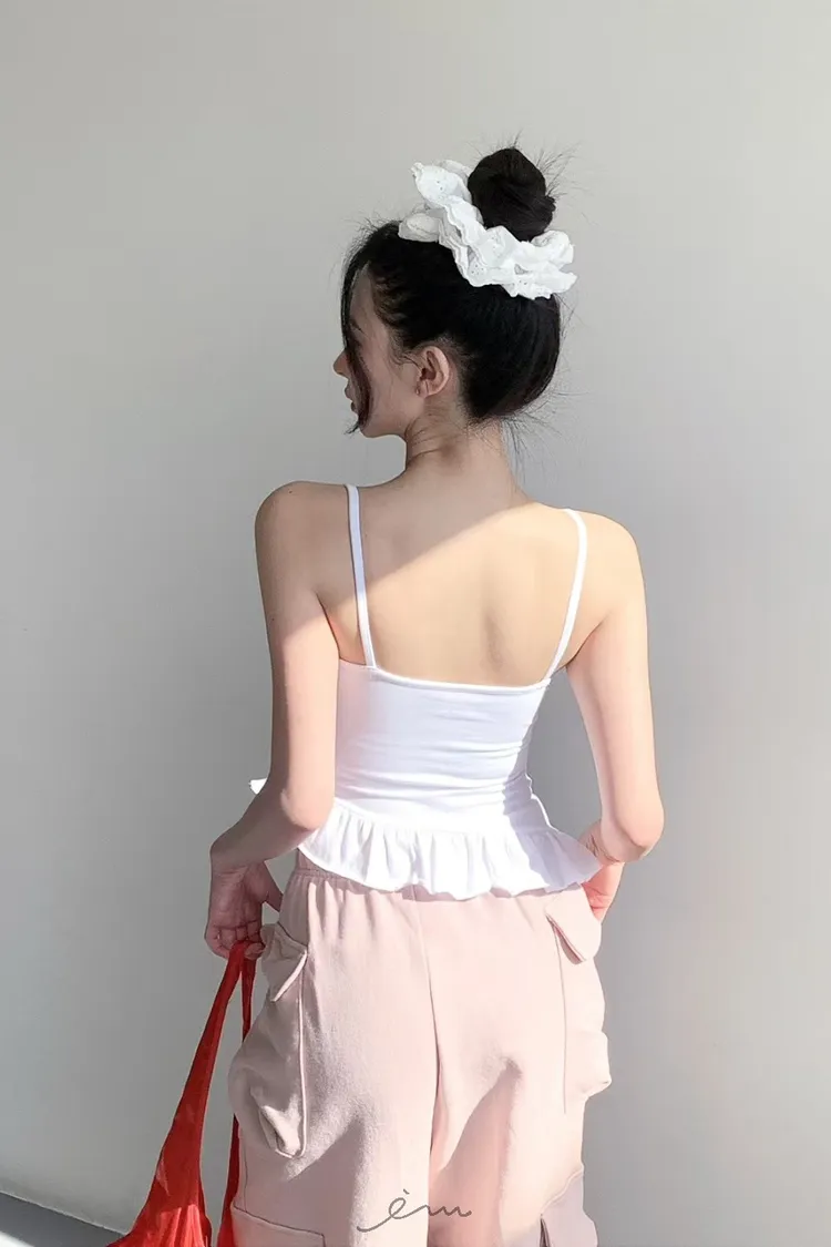 MON下荷葉斜邊細肩BRA TOP(罩杯不可拆)