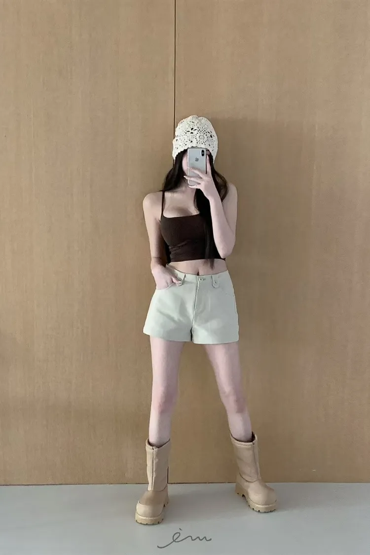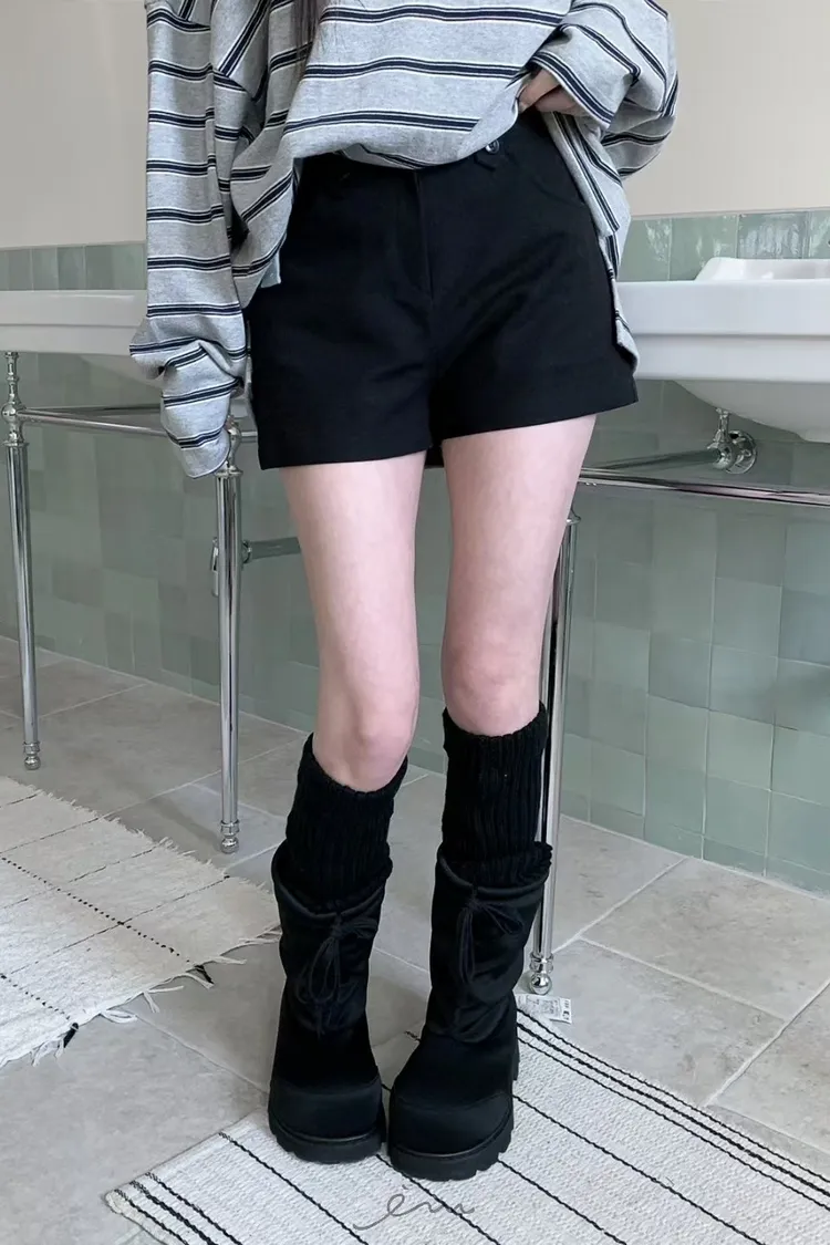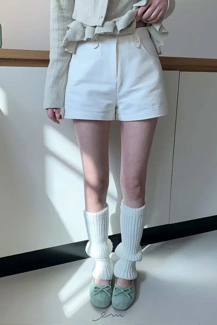 MON鈕釦腰帶環短褲