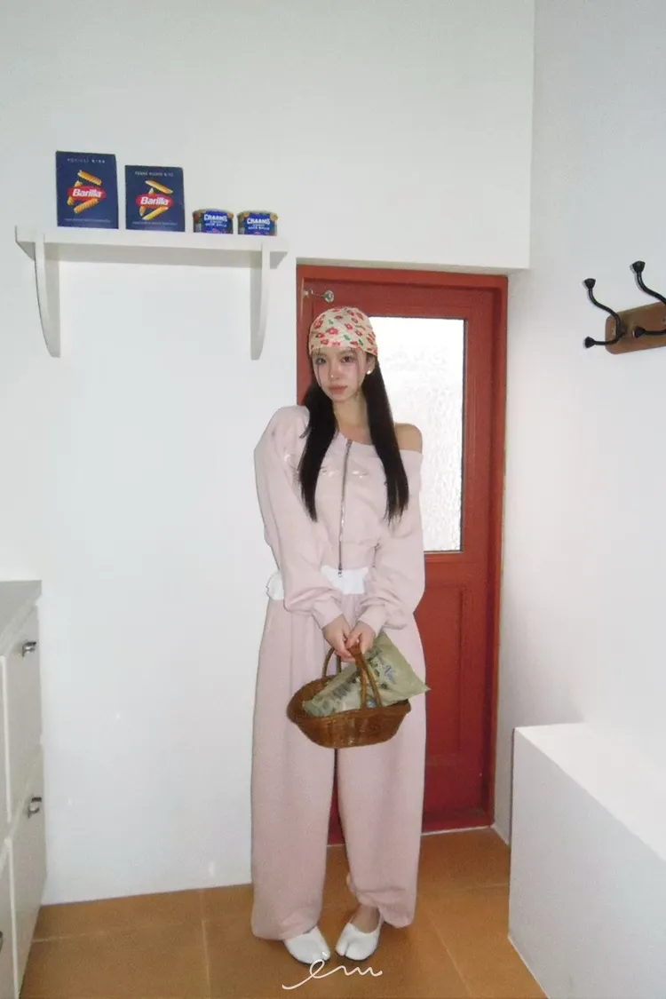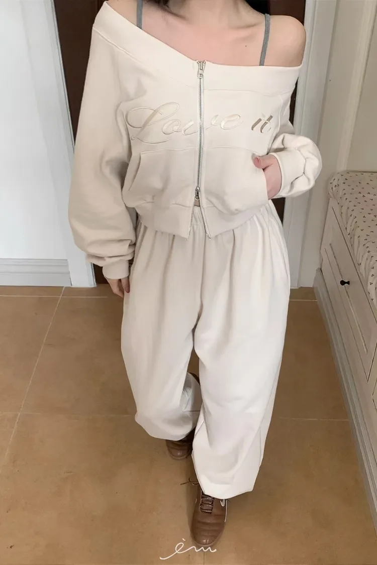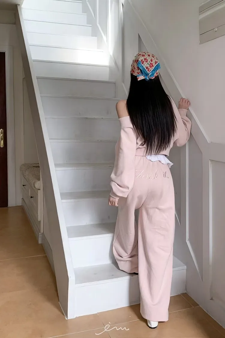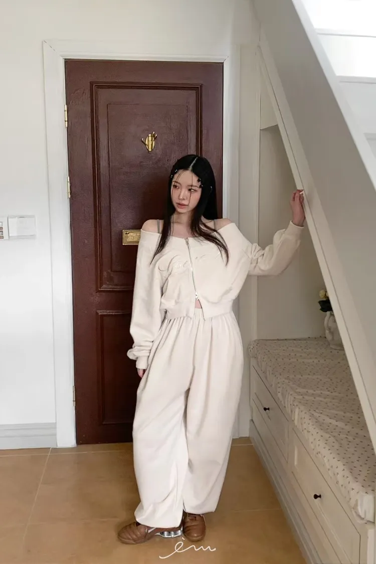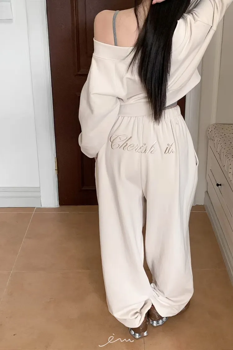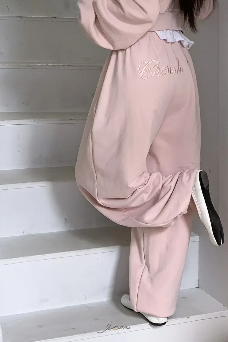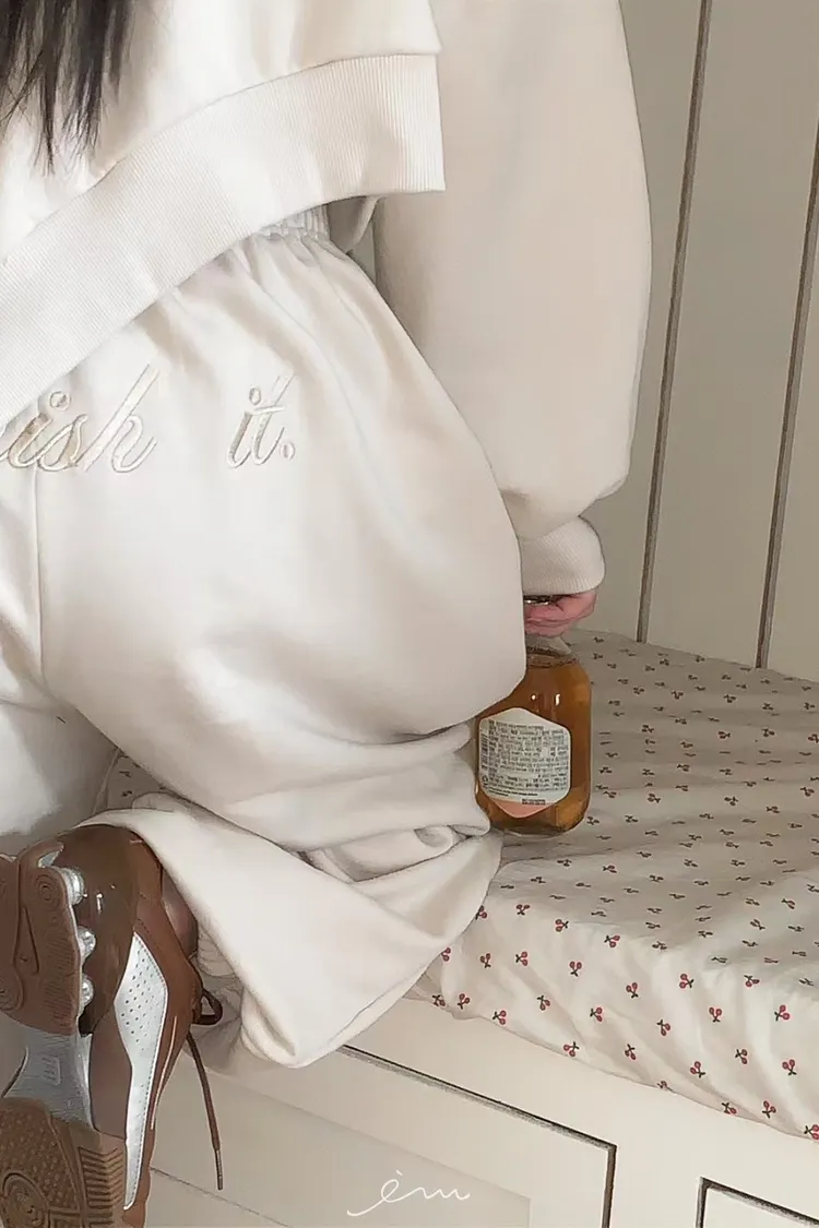 MON後英字鬆緊長褲
