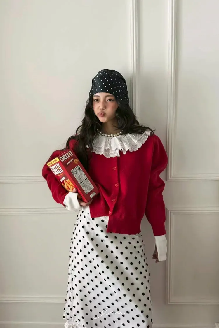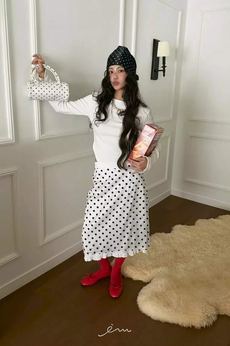 JD下荷葉點點長裙