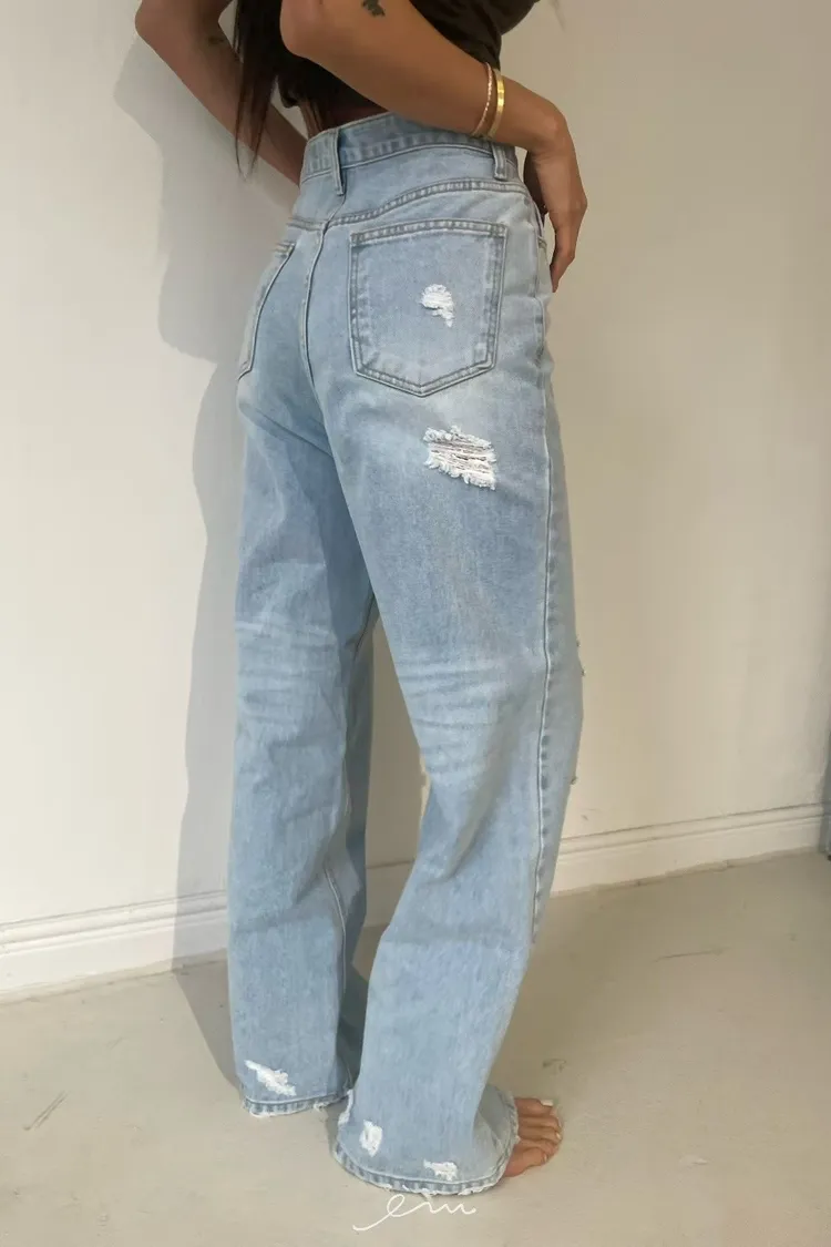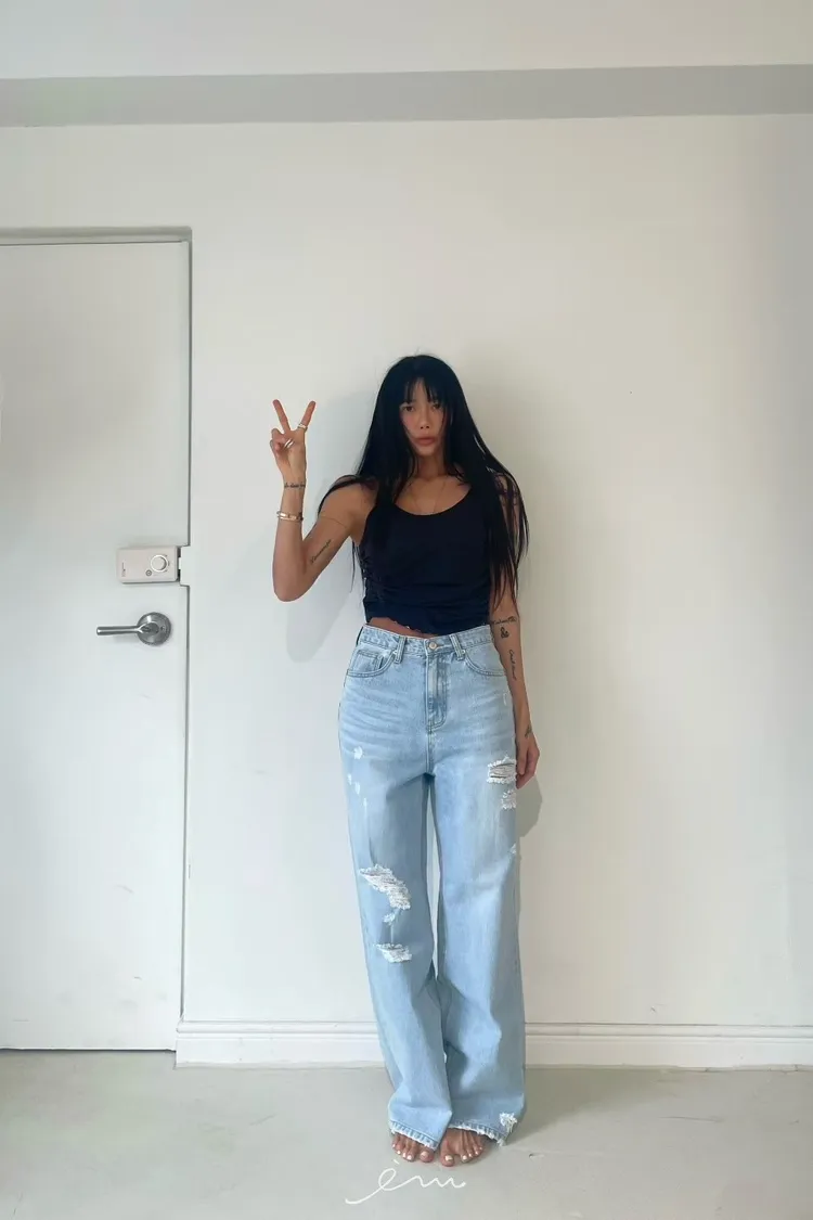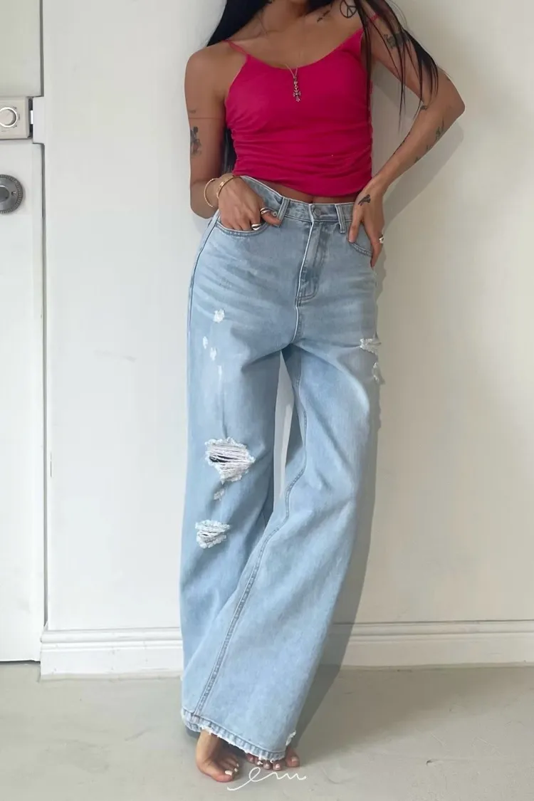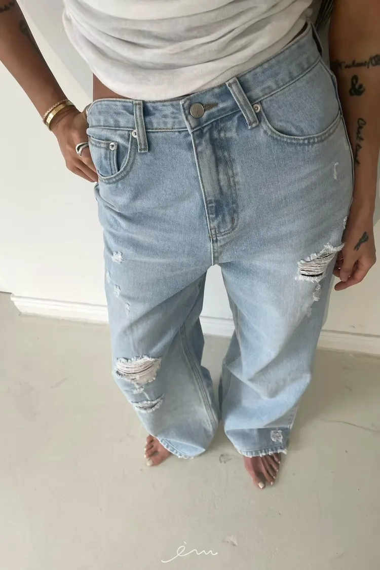 ABB刷破牛仔寬褲