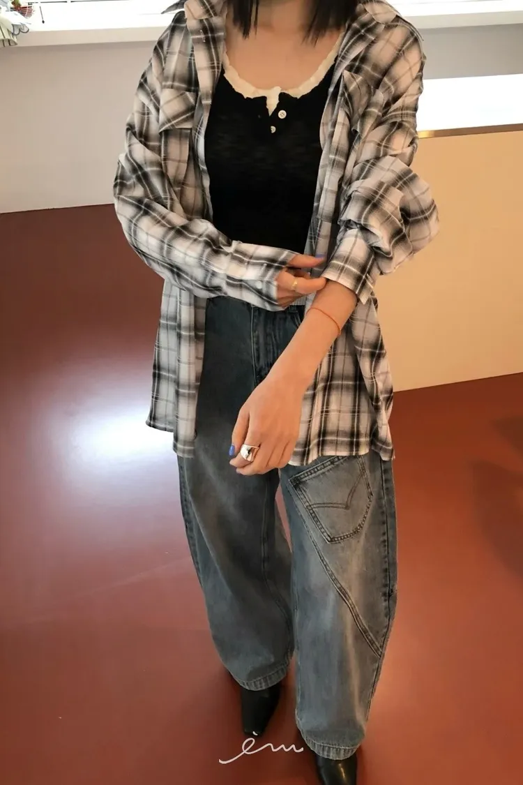 RO蓋式雙口袋格紋襯衫