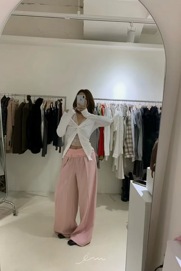 RO反摺抽繩褲頭西裝寬褲