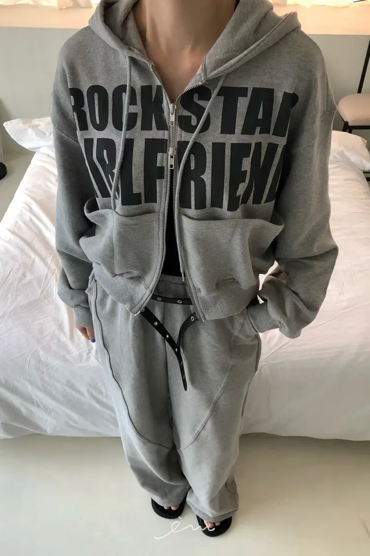 RO大口袋英字雙拉鍊連帽外套