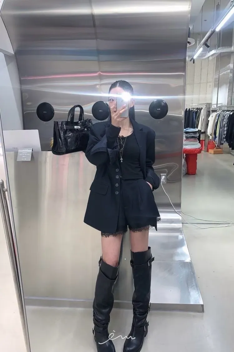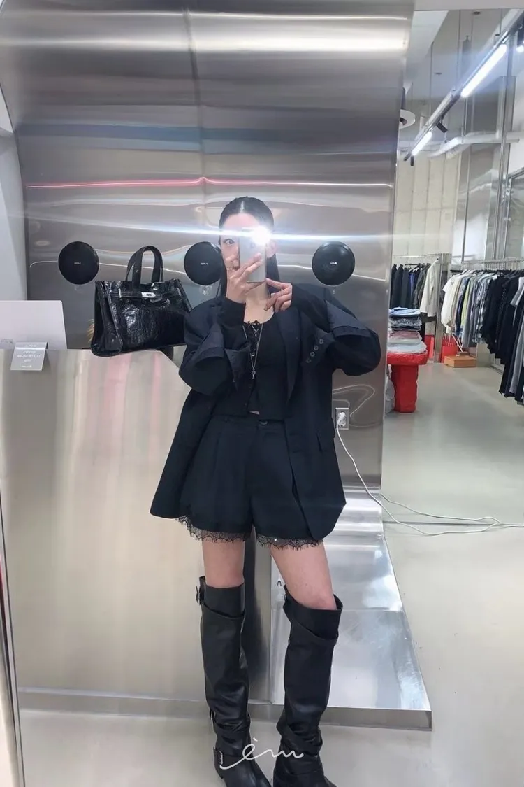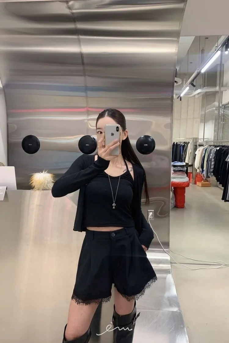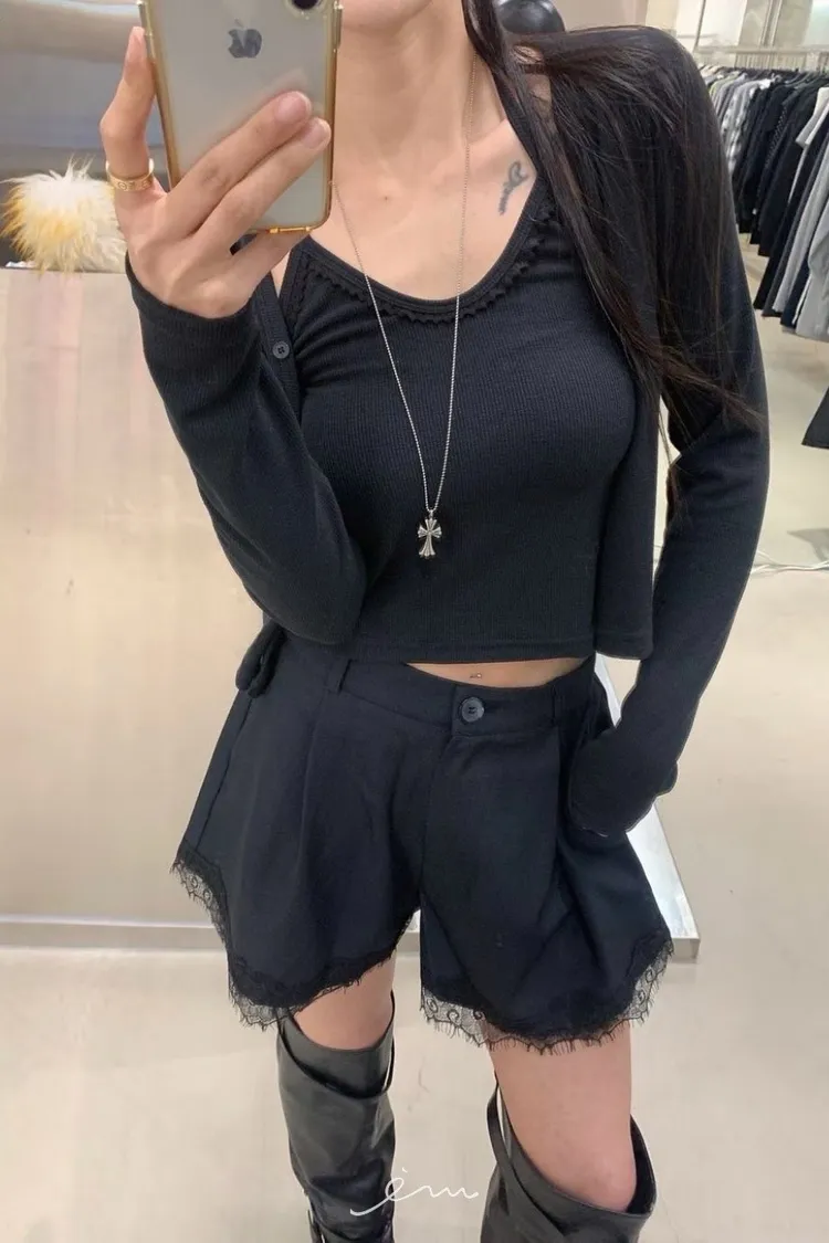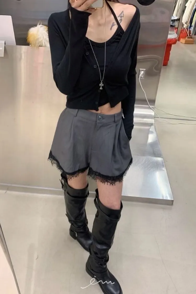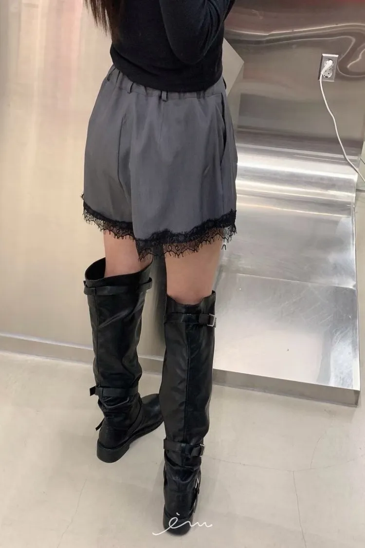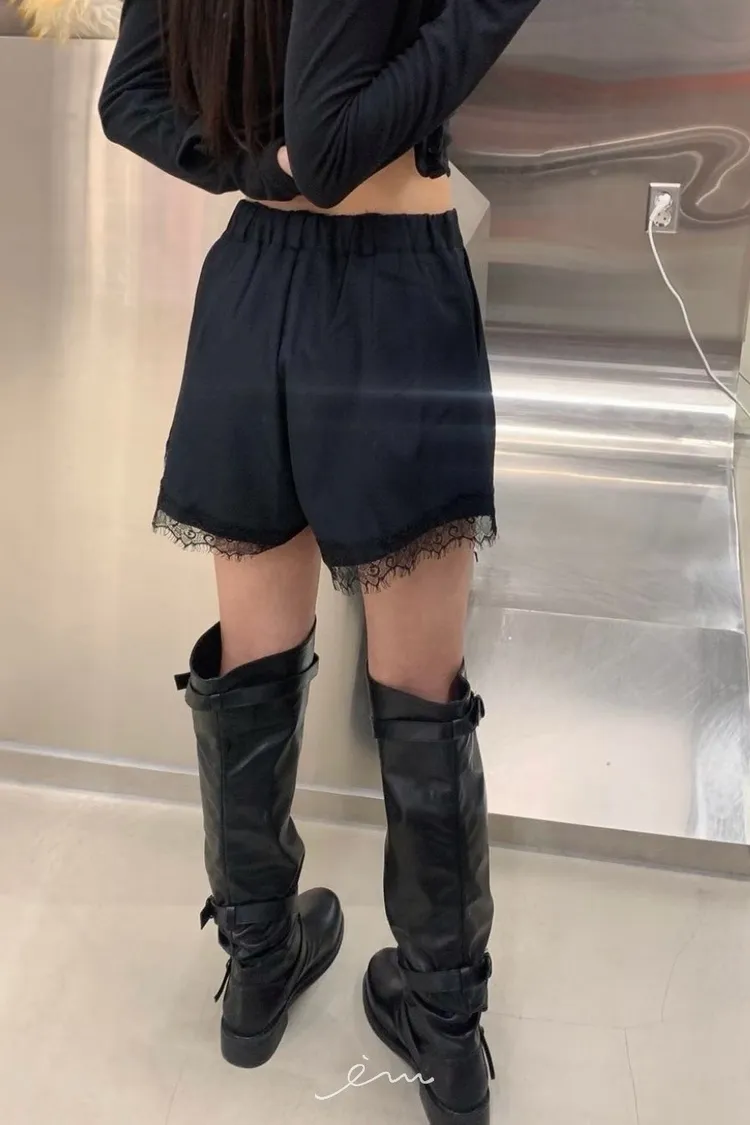 RO下蕾絲後鬆緊鈕釦短褲
