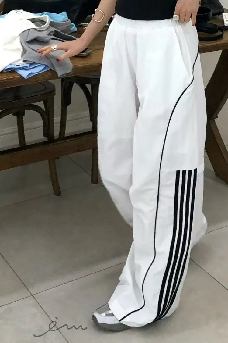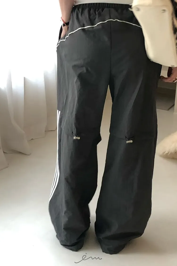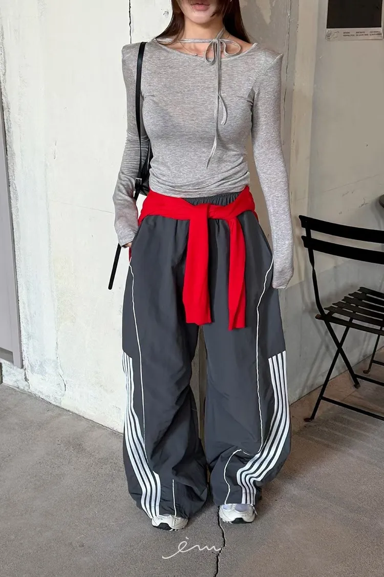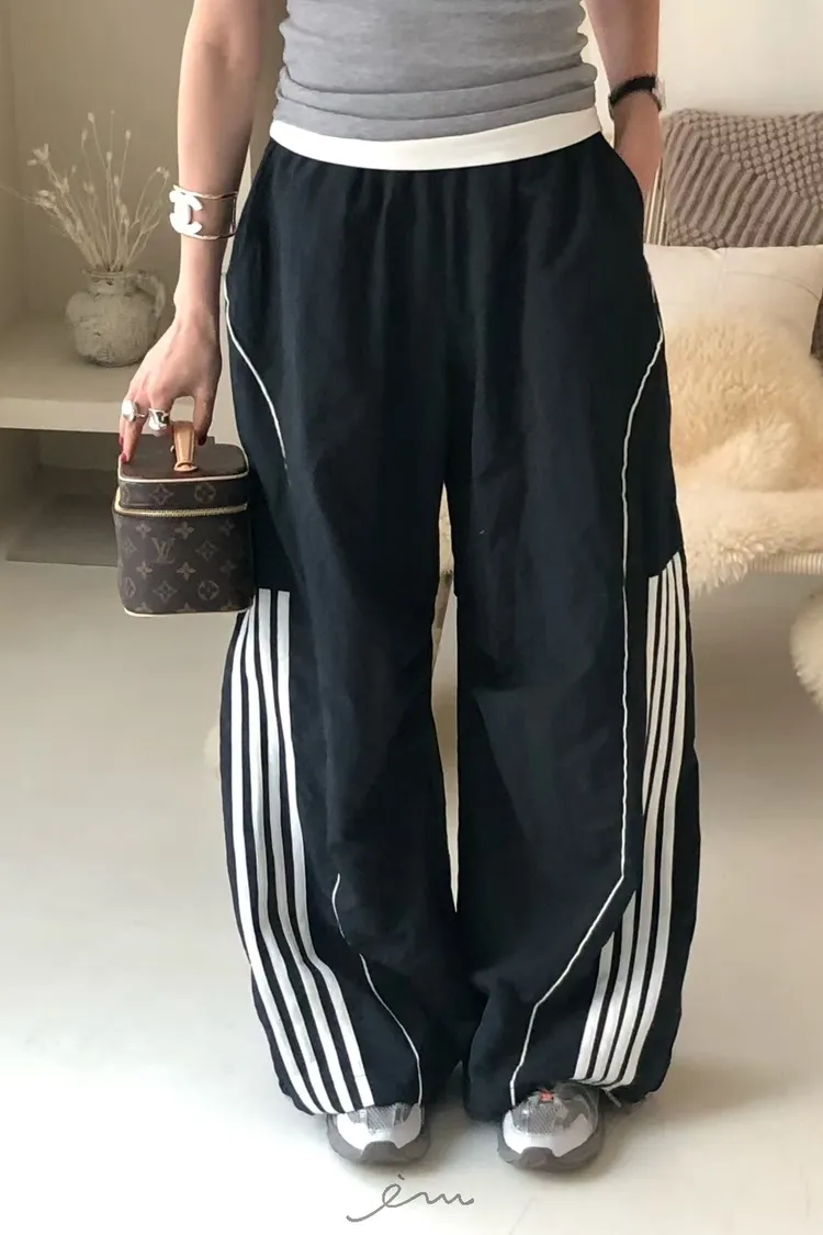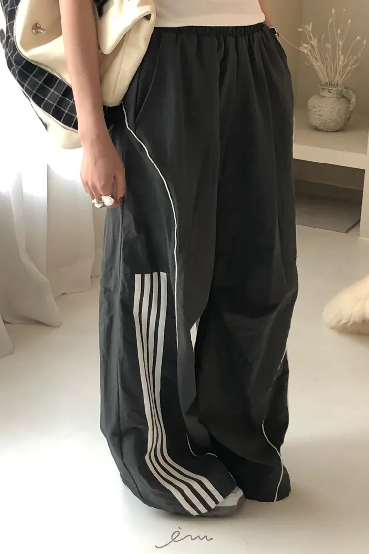 RO半截線條弧形鬆緊長褲