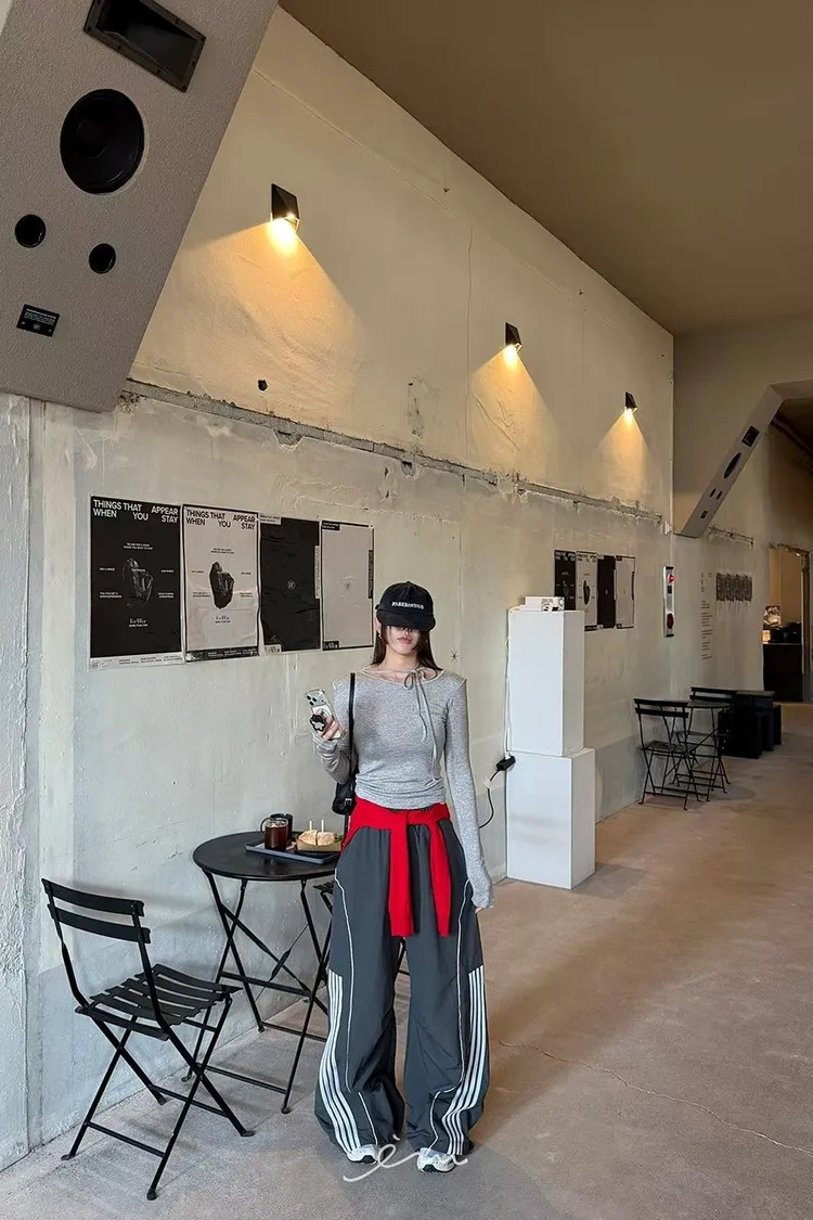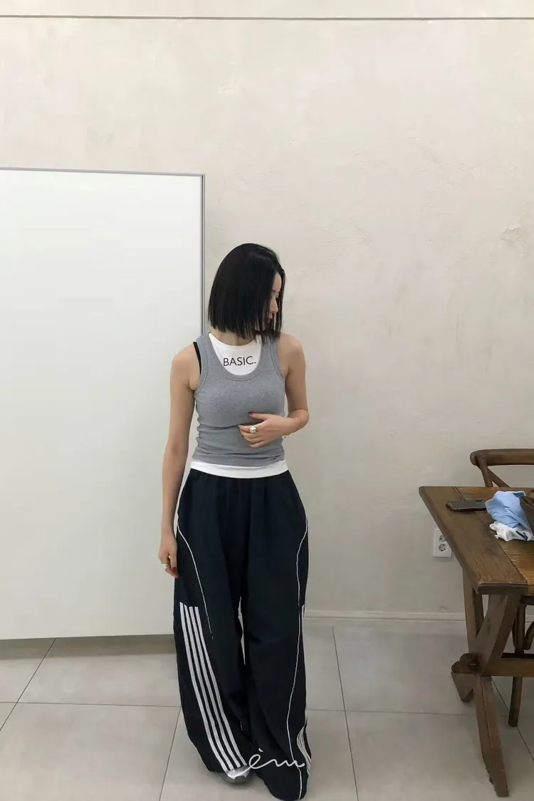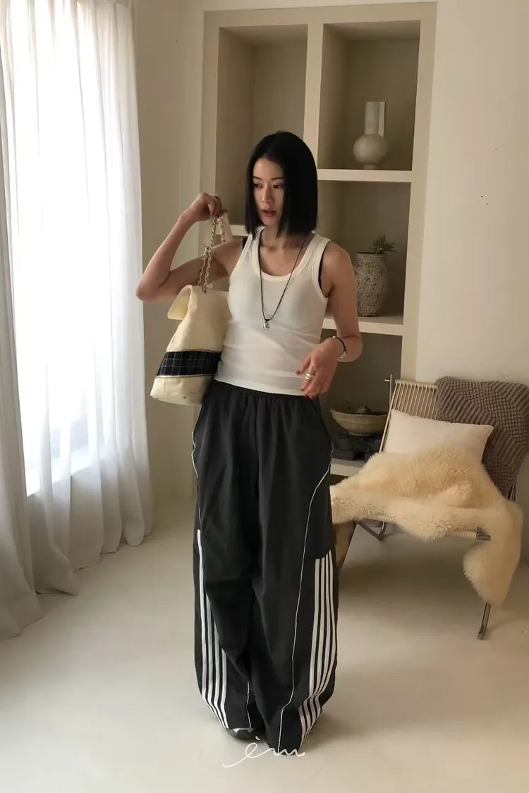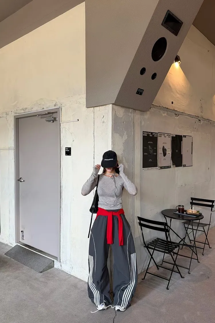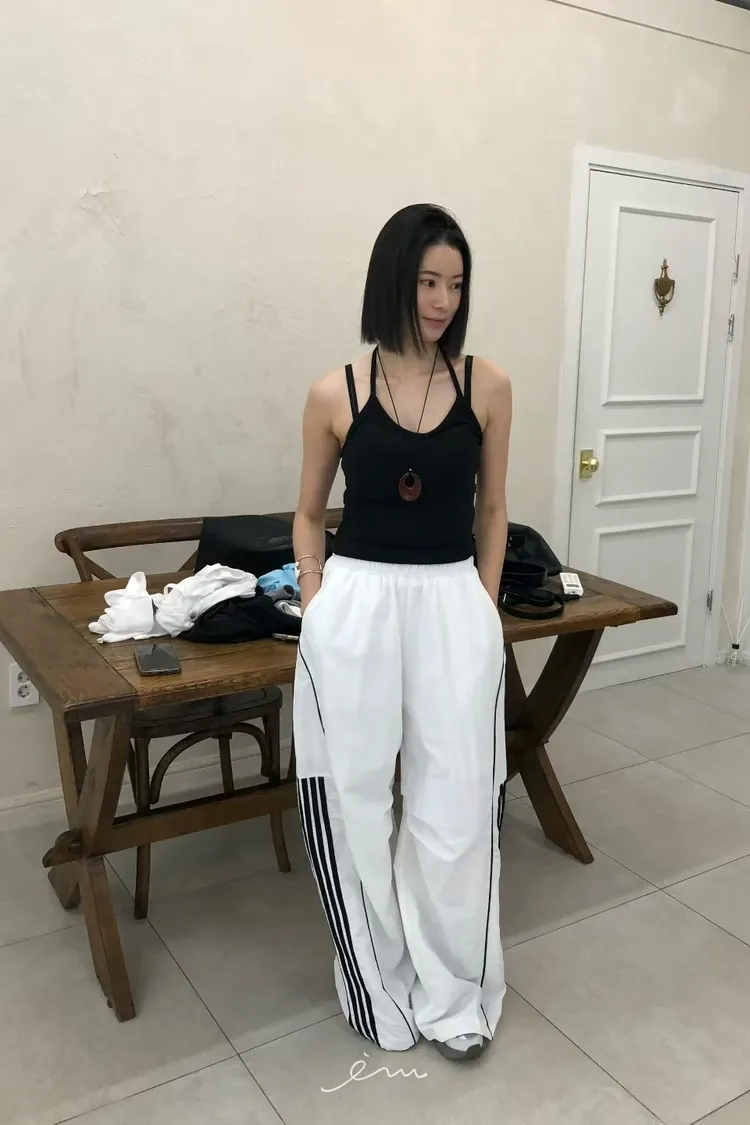 RO半截線條弧形鬆緊長褲