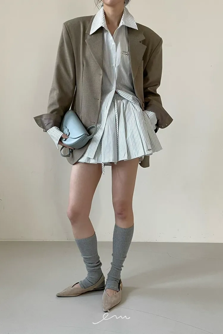 Tomgirl抽繩百褶直條褲裙