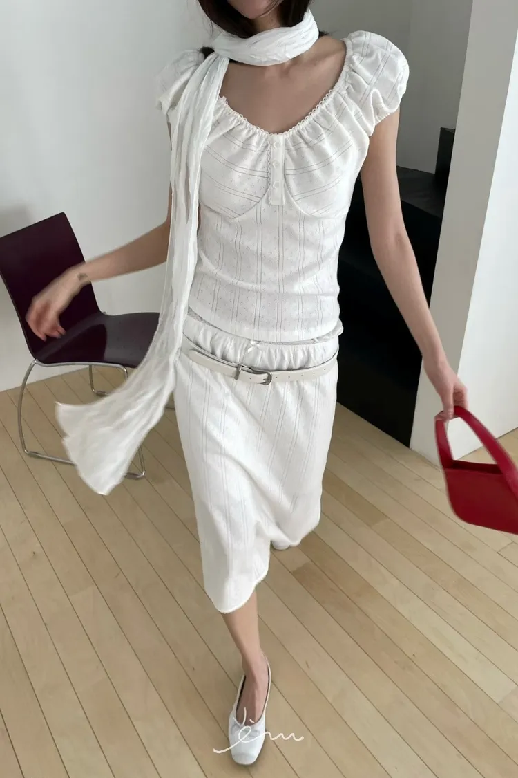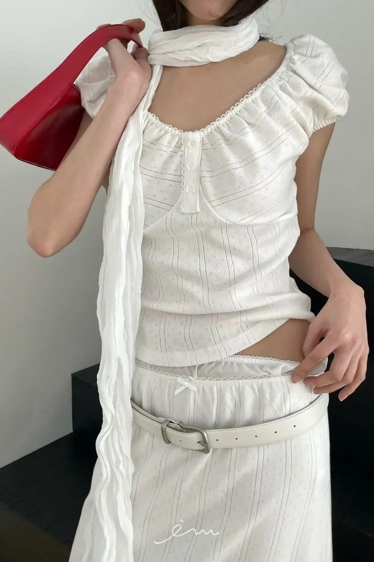Tomgirl花釦紋路澎袖衣