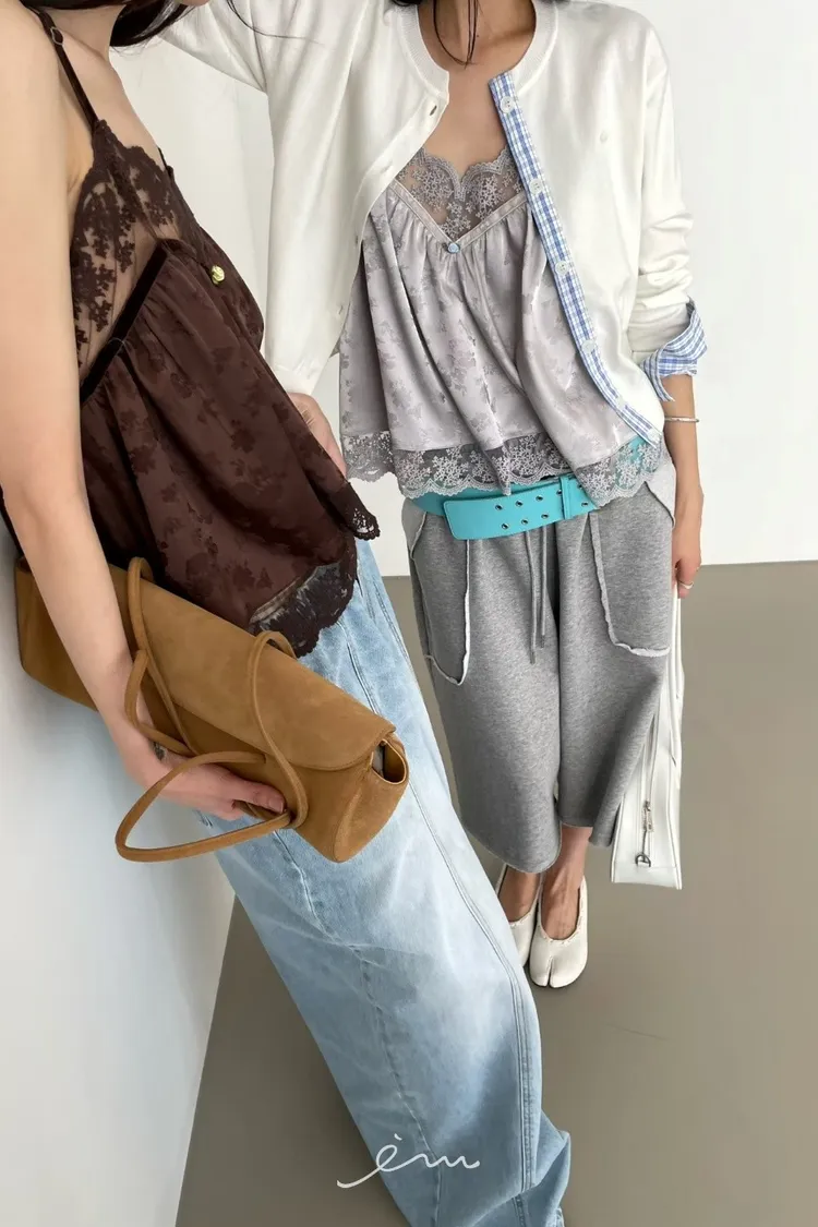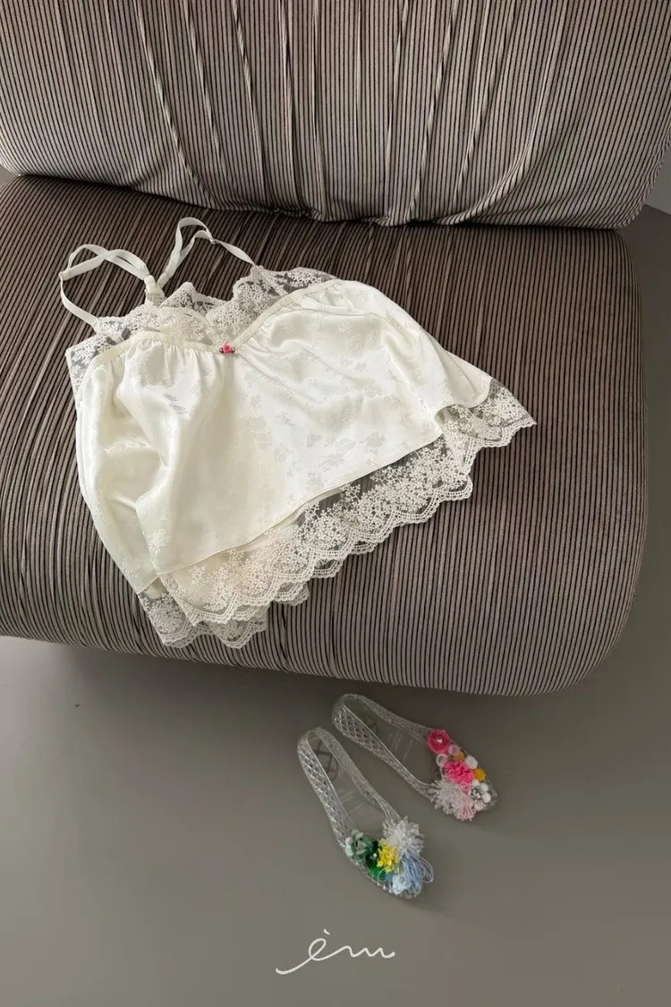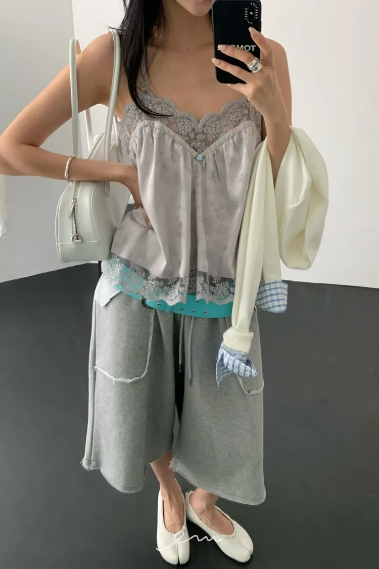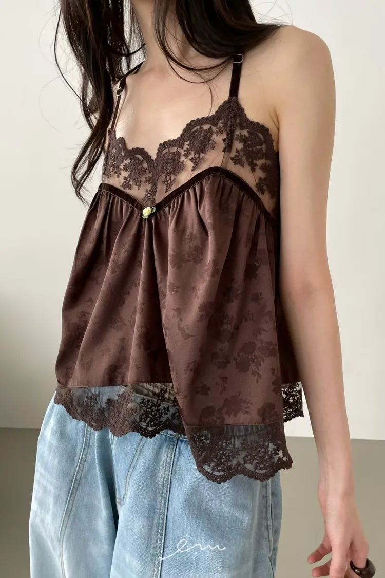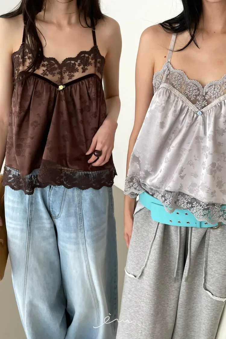 Tomgirl小玫瑰花拼蕾絲細肩背心
