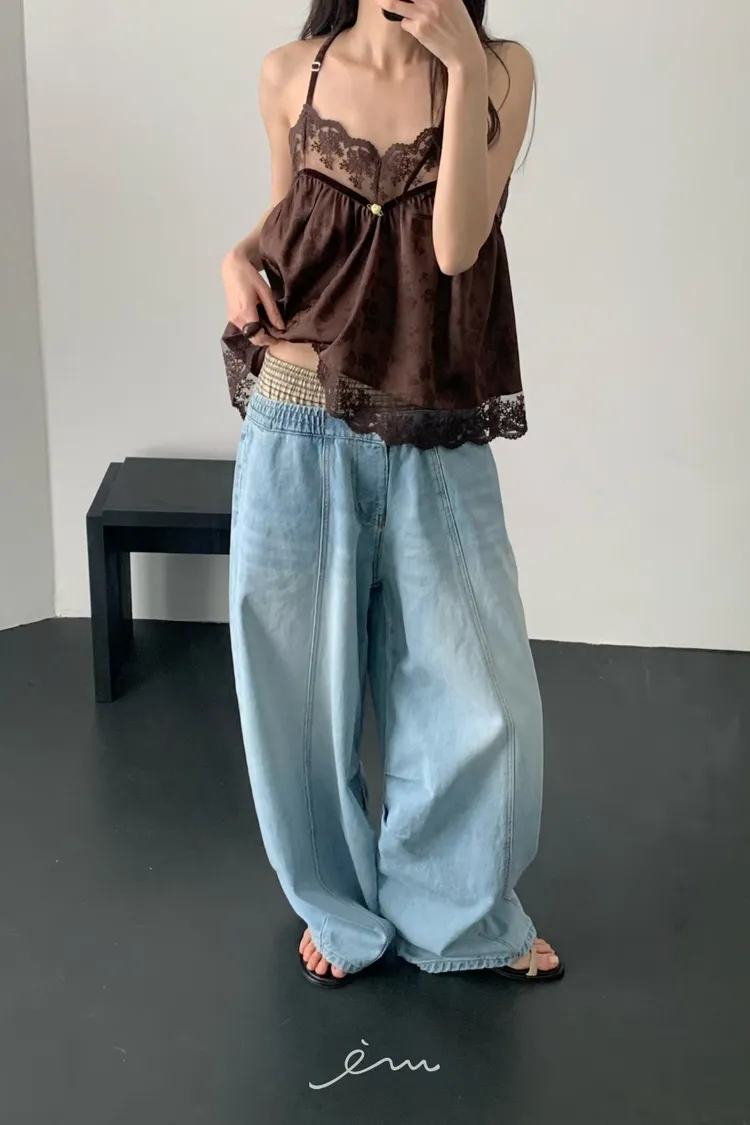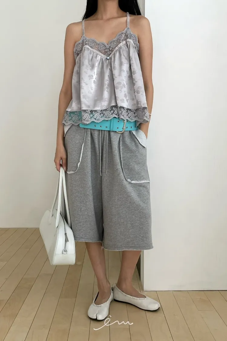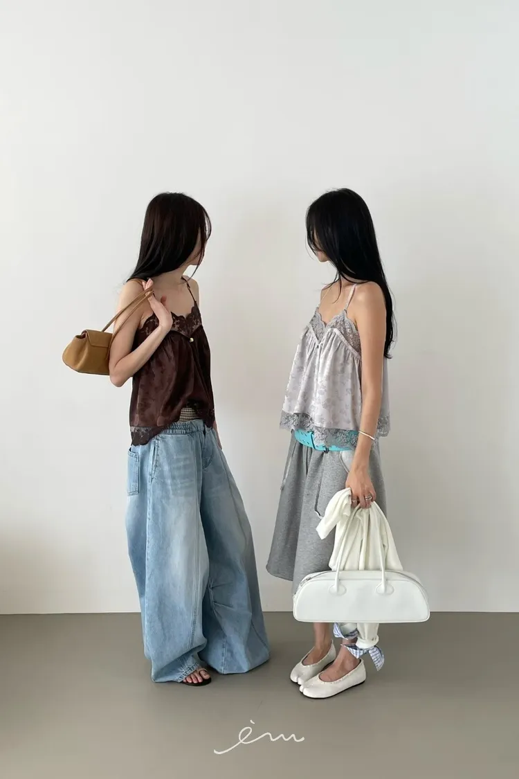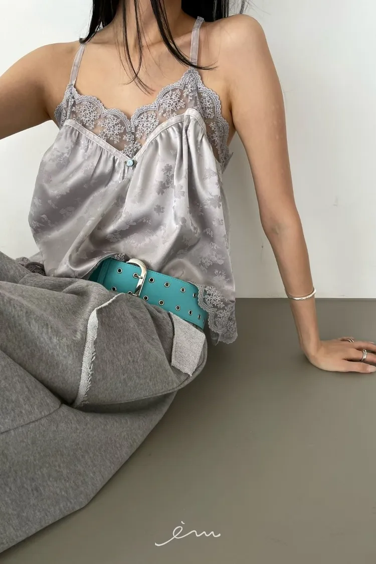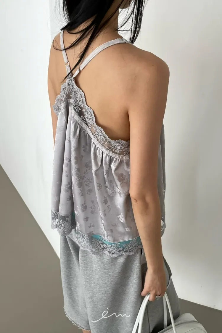 Tomgirl小玫瑰花拼蕾絲細肩背心