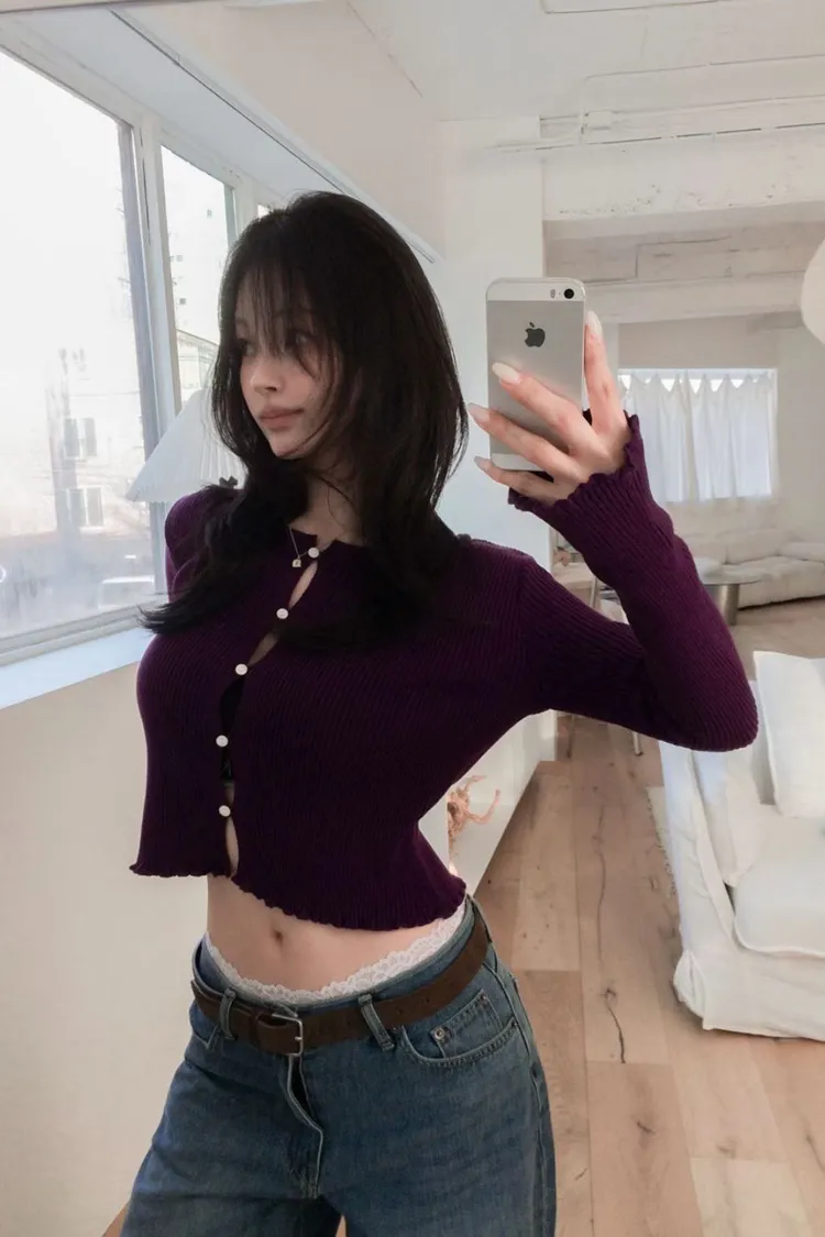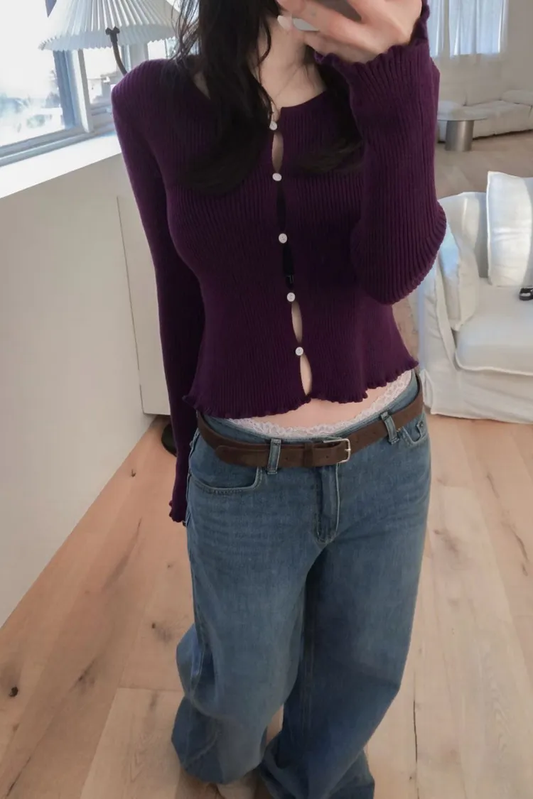 下捲邊鈕釦坑條外套