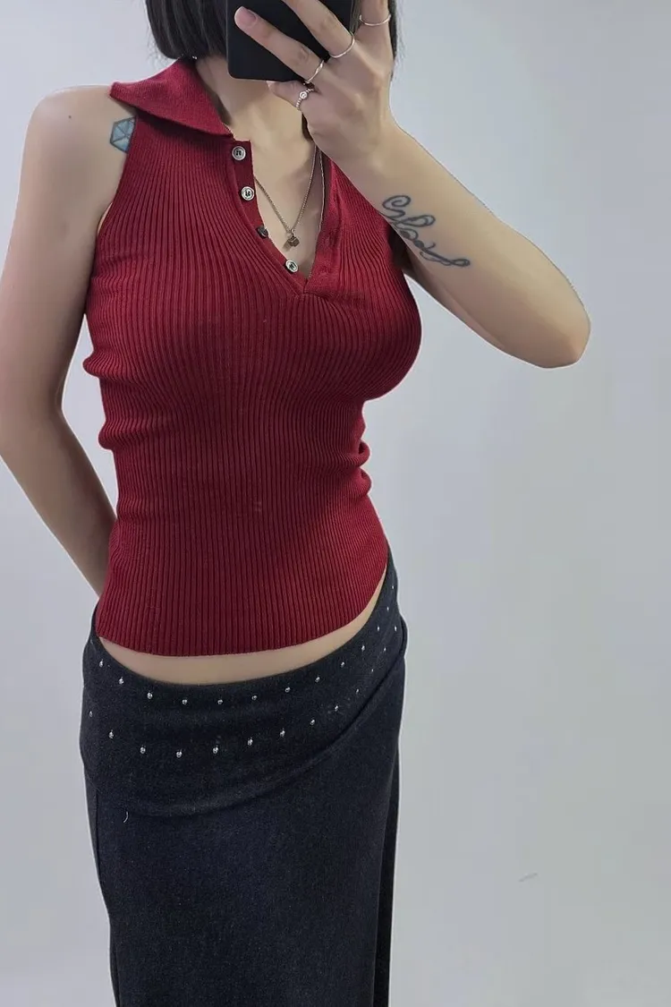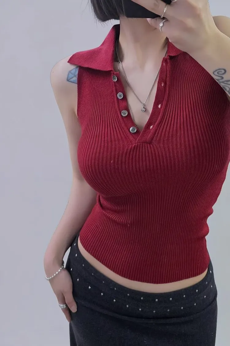 鈕釦翻領背心