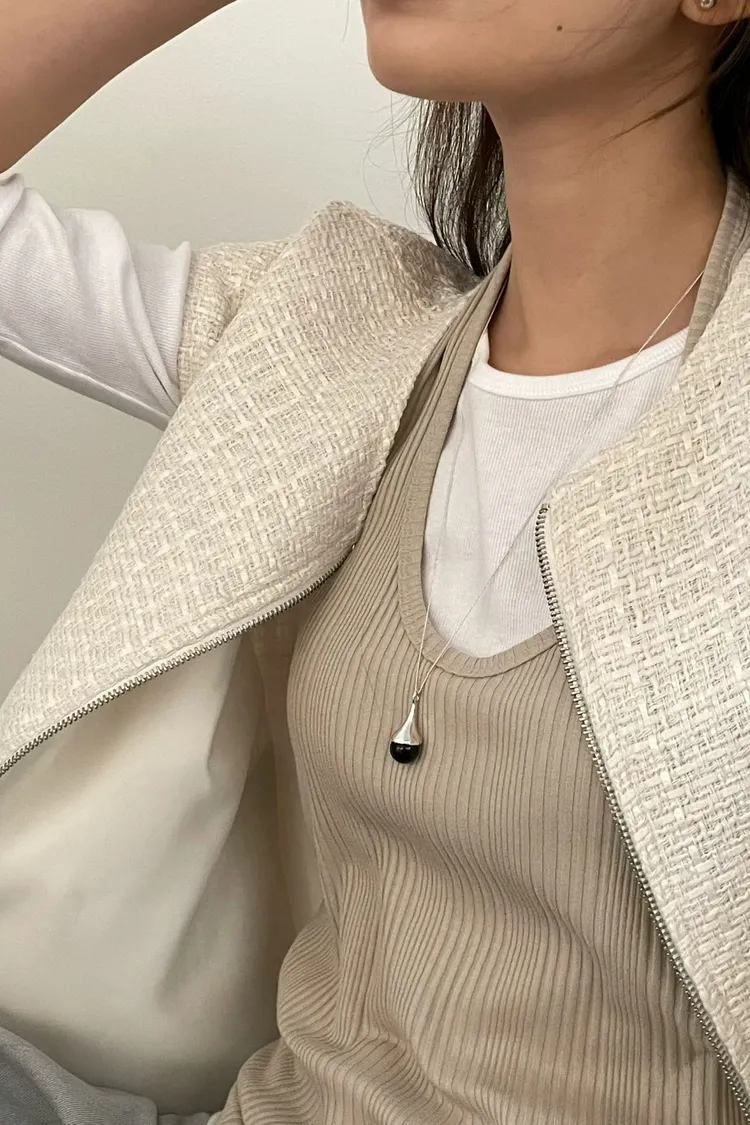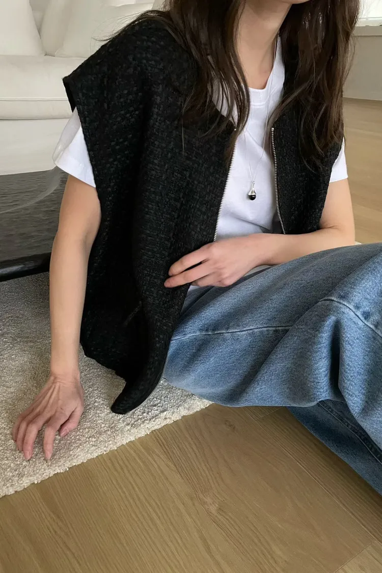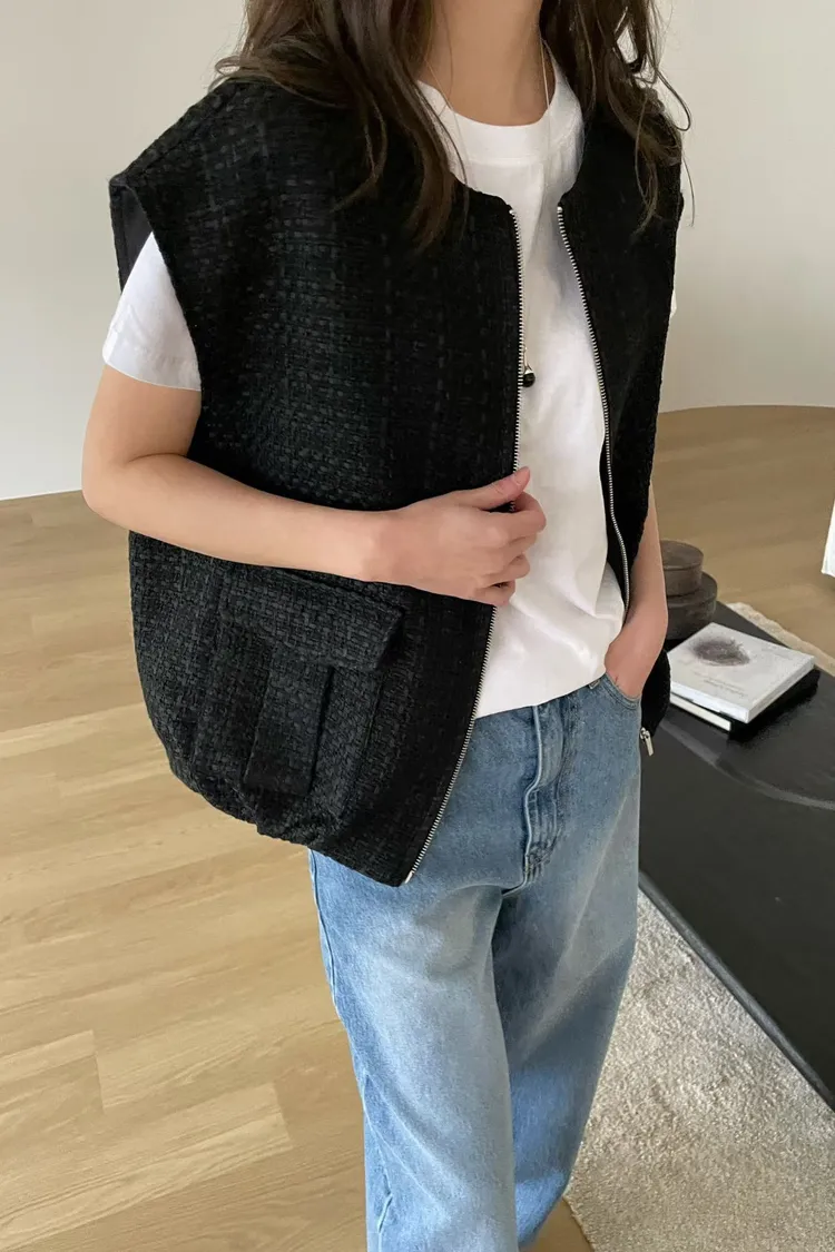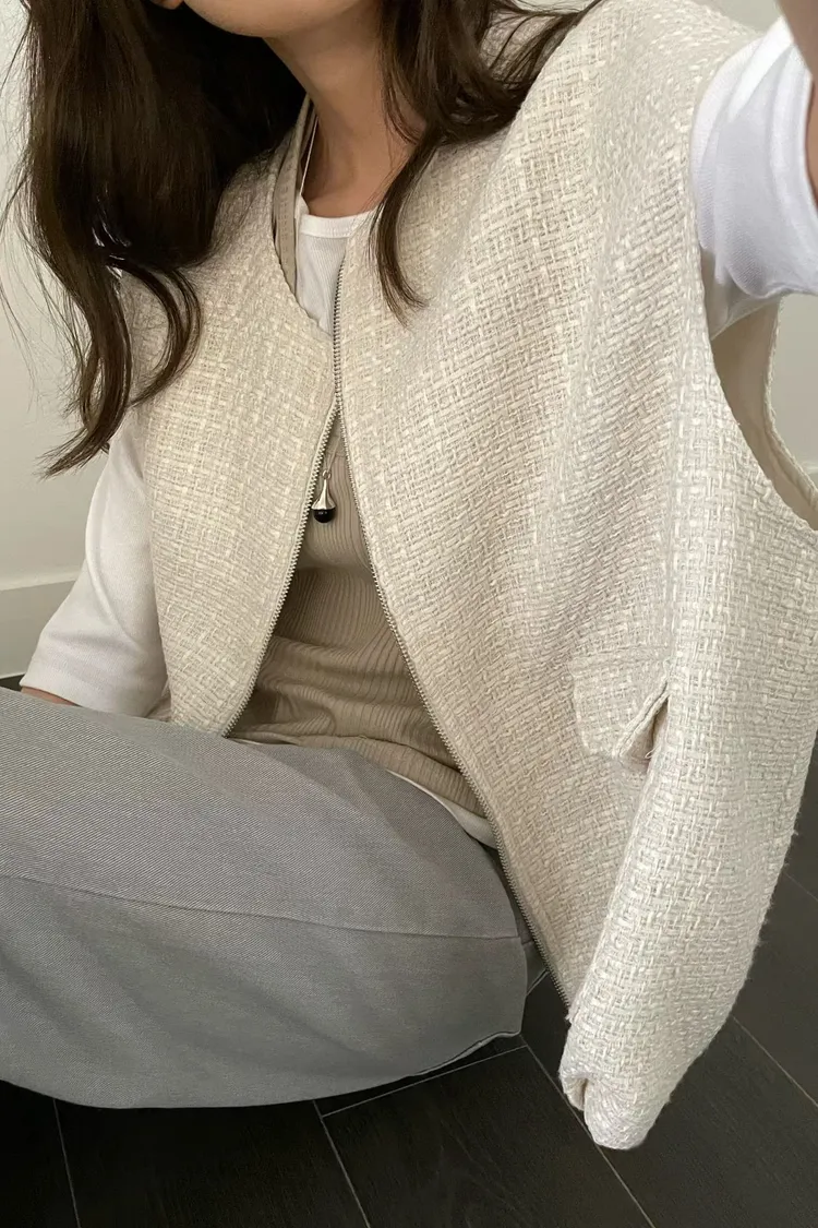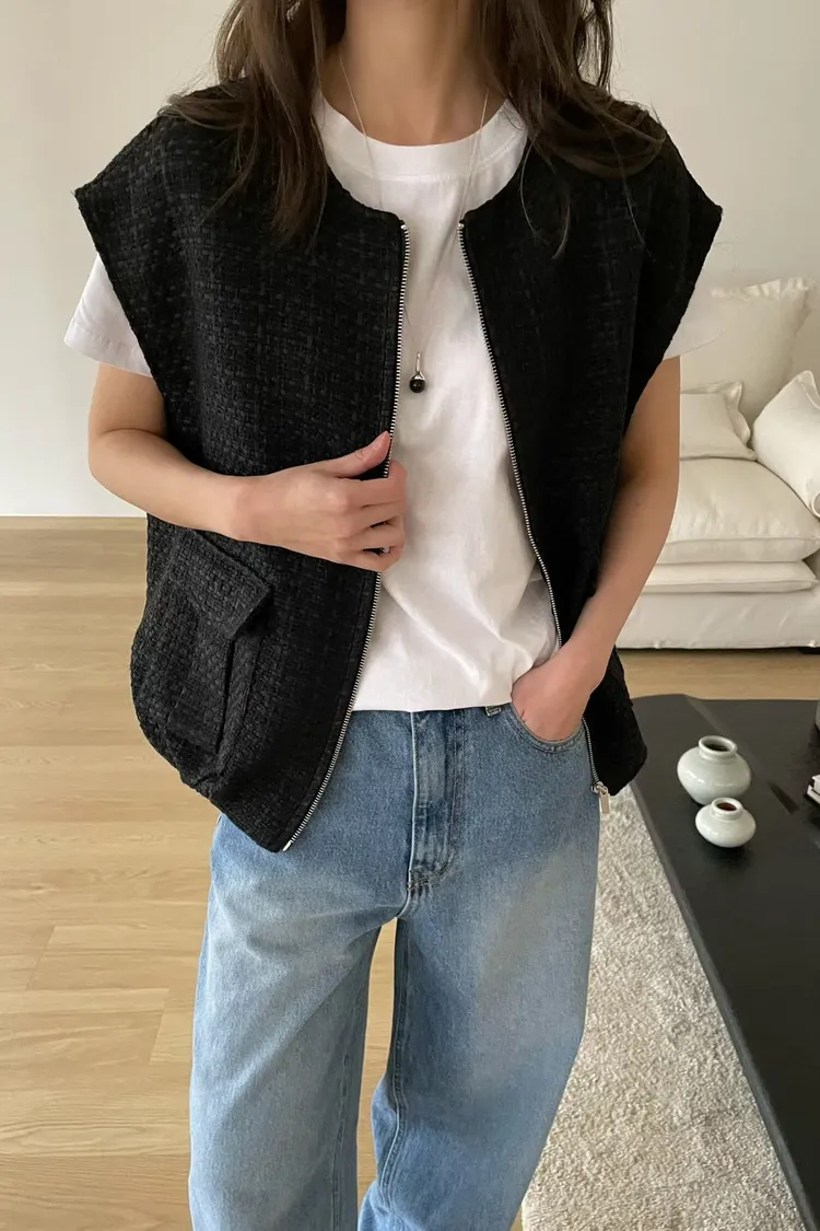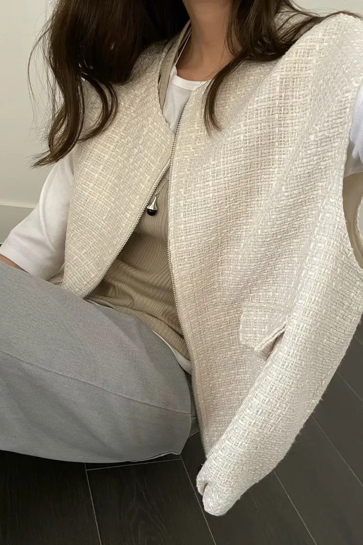 質感小香風蓋袖感拉鍊背心