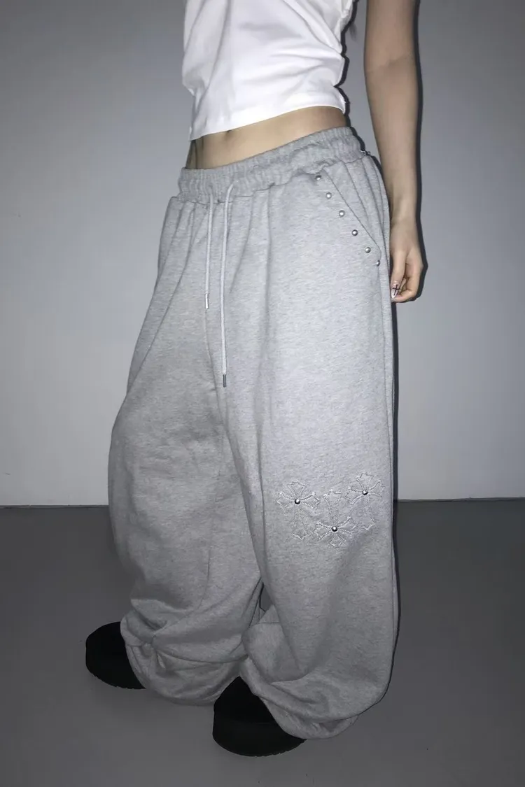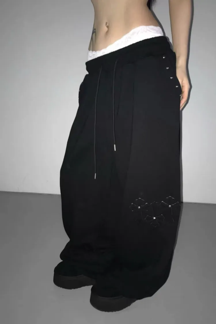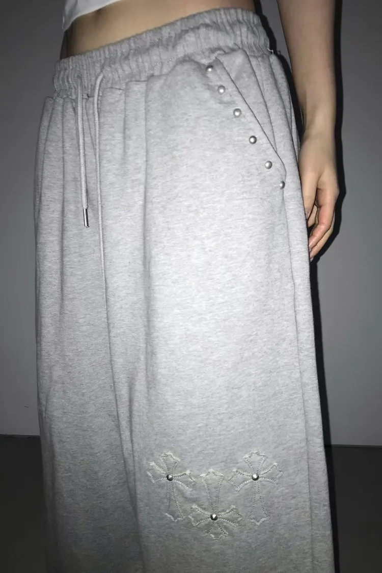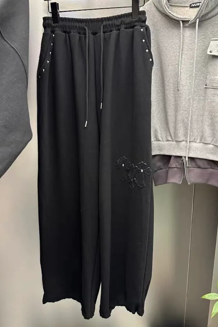 口袋釘珠十字造型長褲