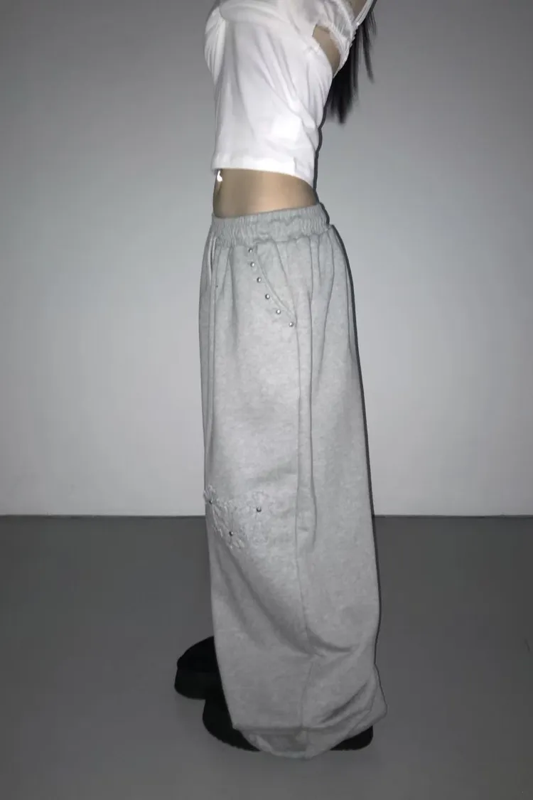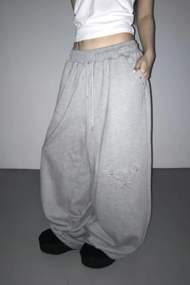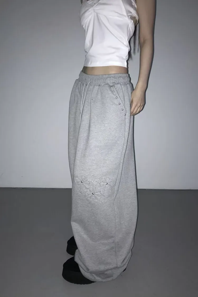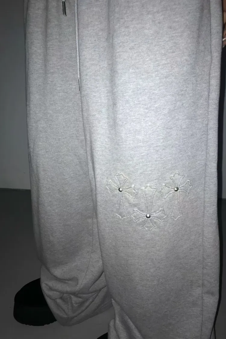 口袋釘珠十字造型長褲