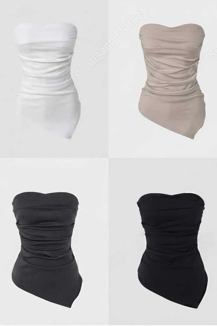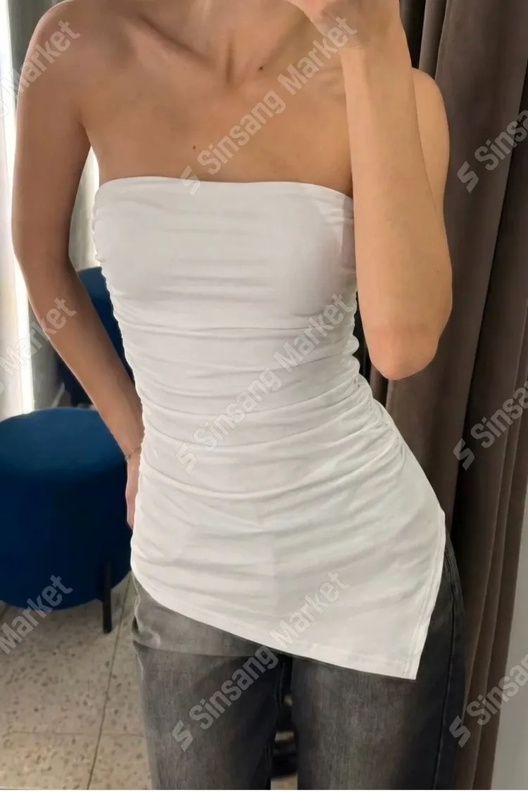 平口抓皺下斜V上衣