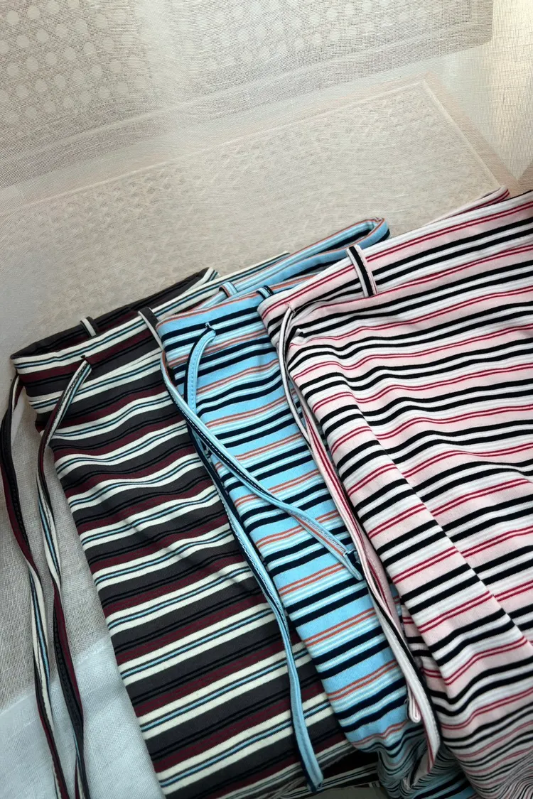 腰帶環條紋抽繩長裙