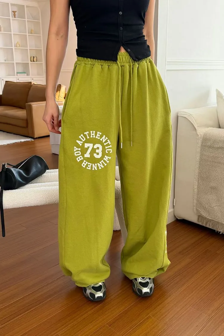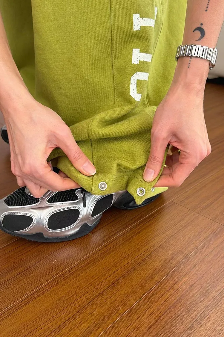 下壓釦造型73抽繩長褲