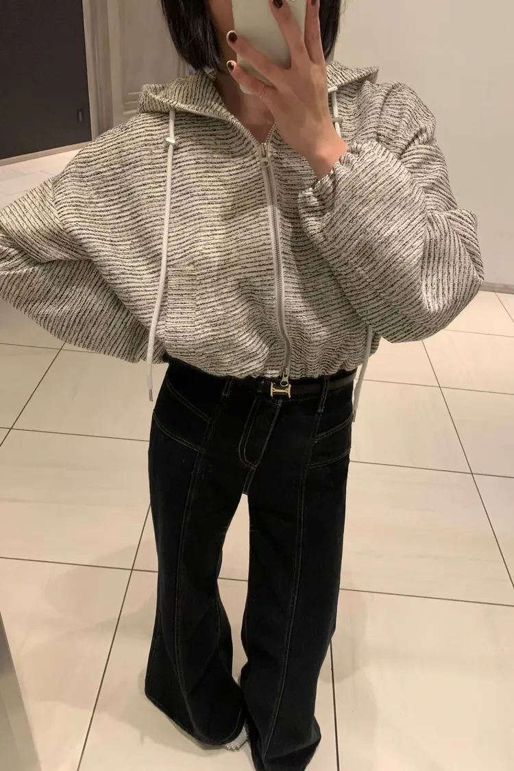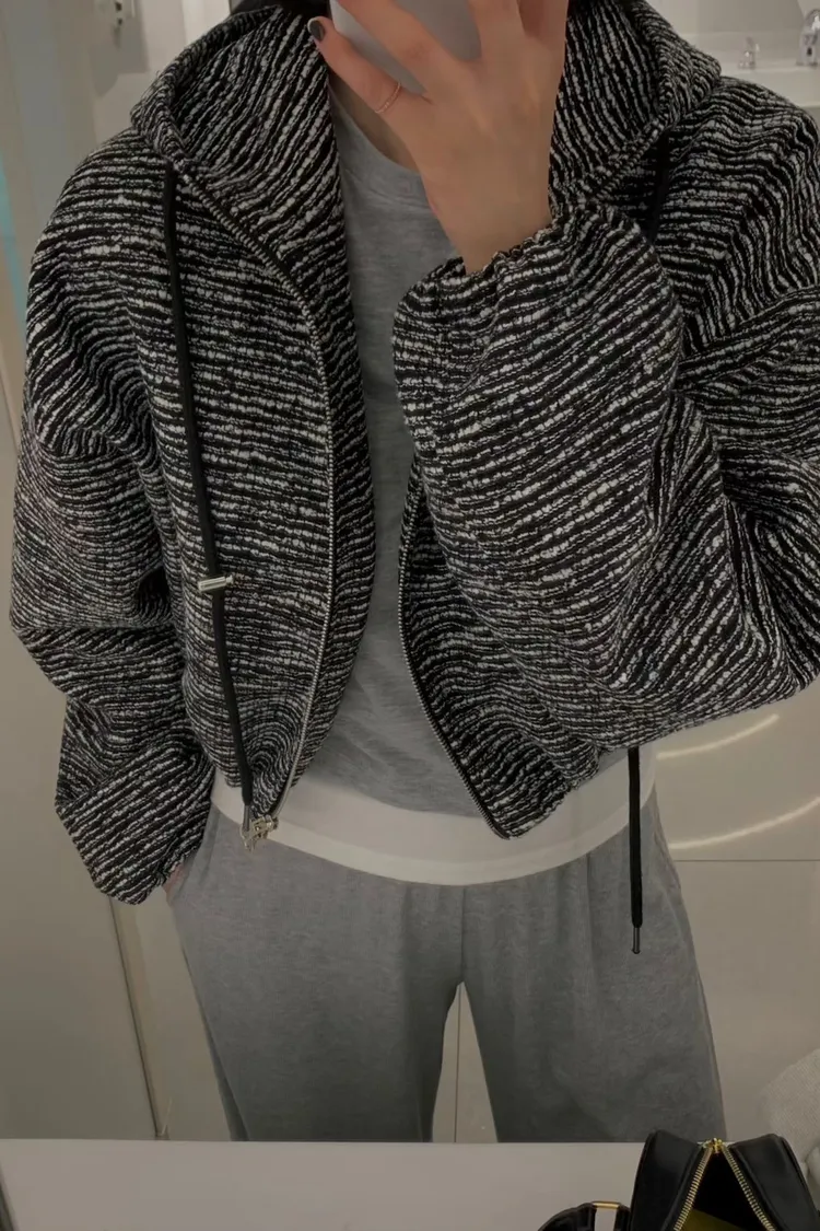 貴婦下午茶休閒小香感連帽雙拉鍊外套