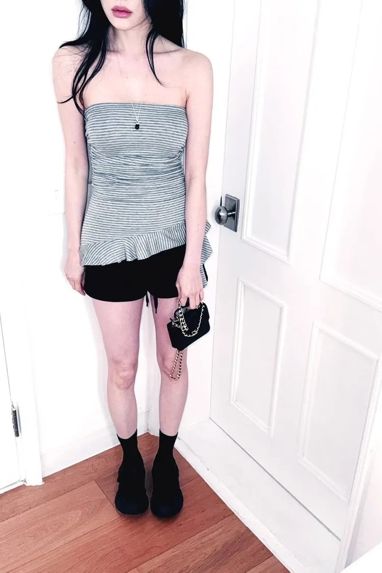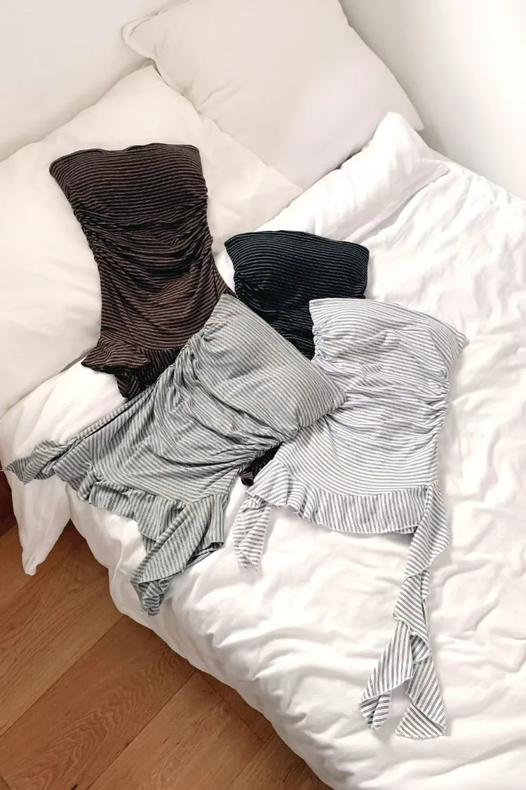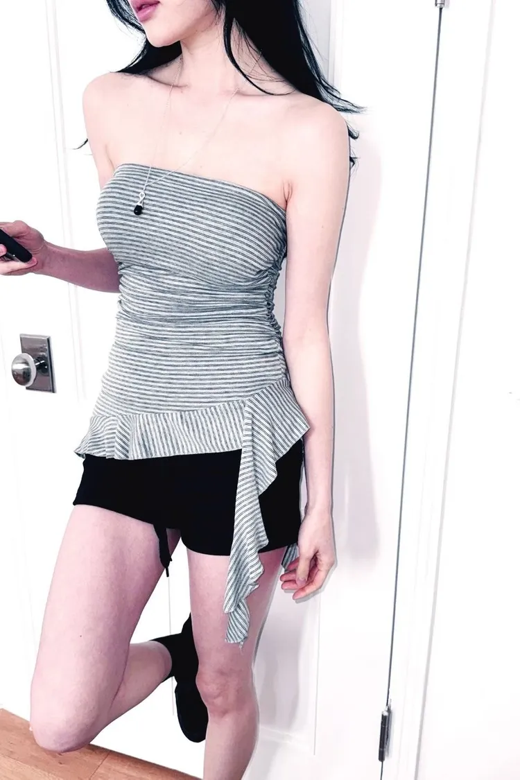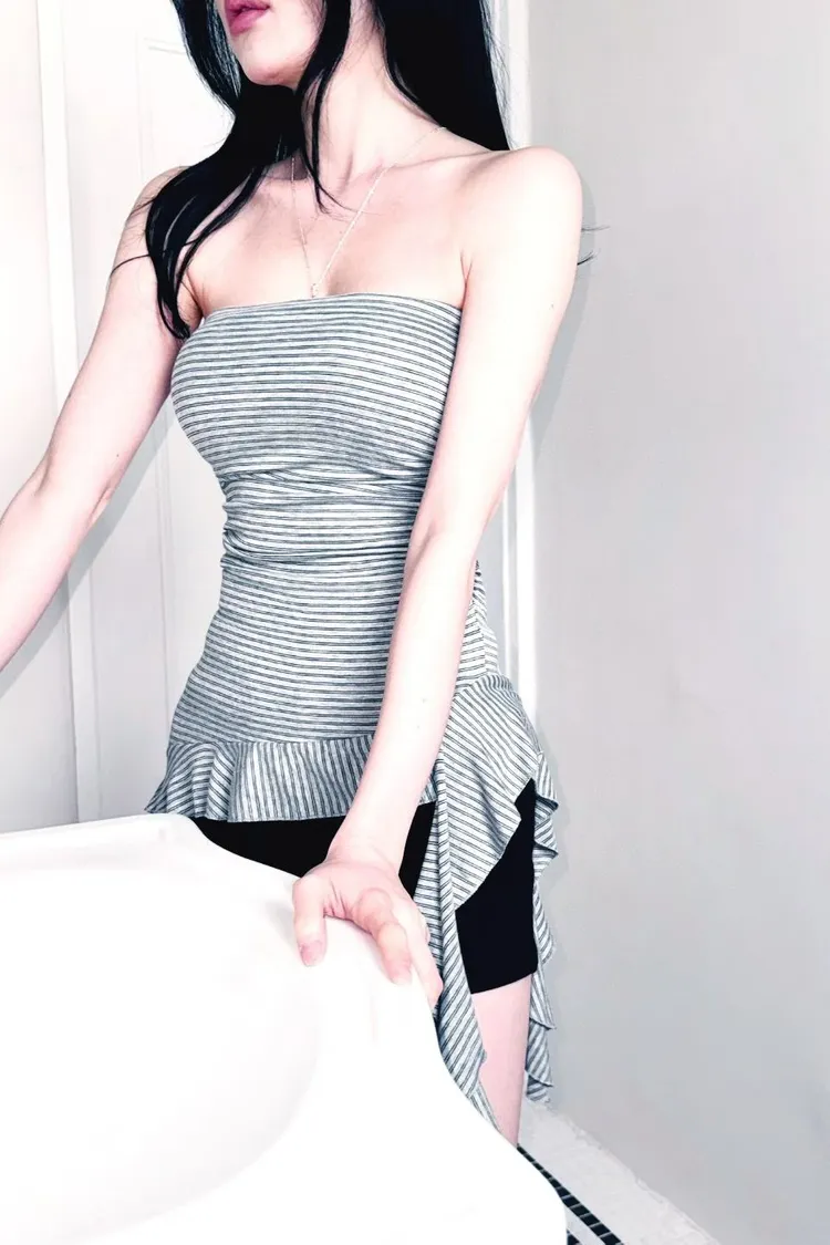 罩杯平口條紋不規則下擺上衣(罩杯不可拆)